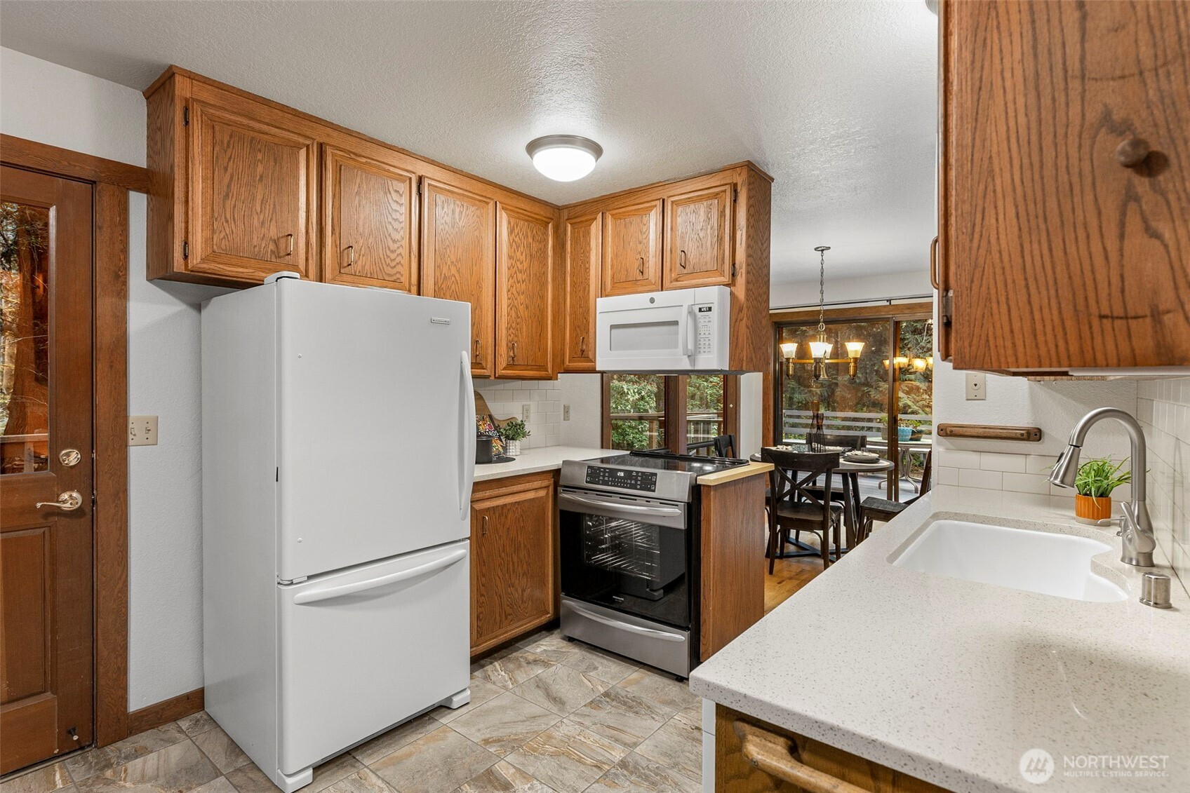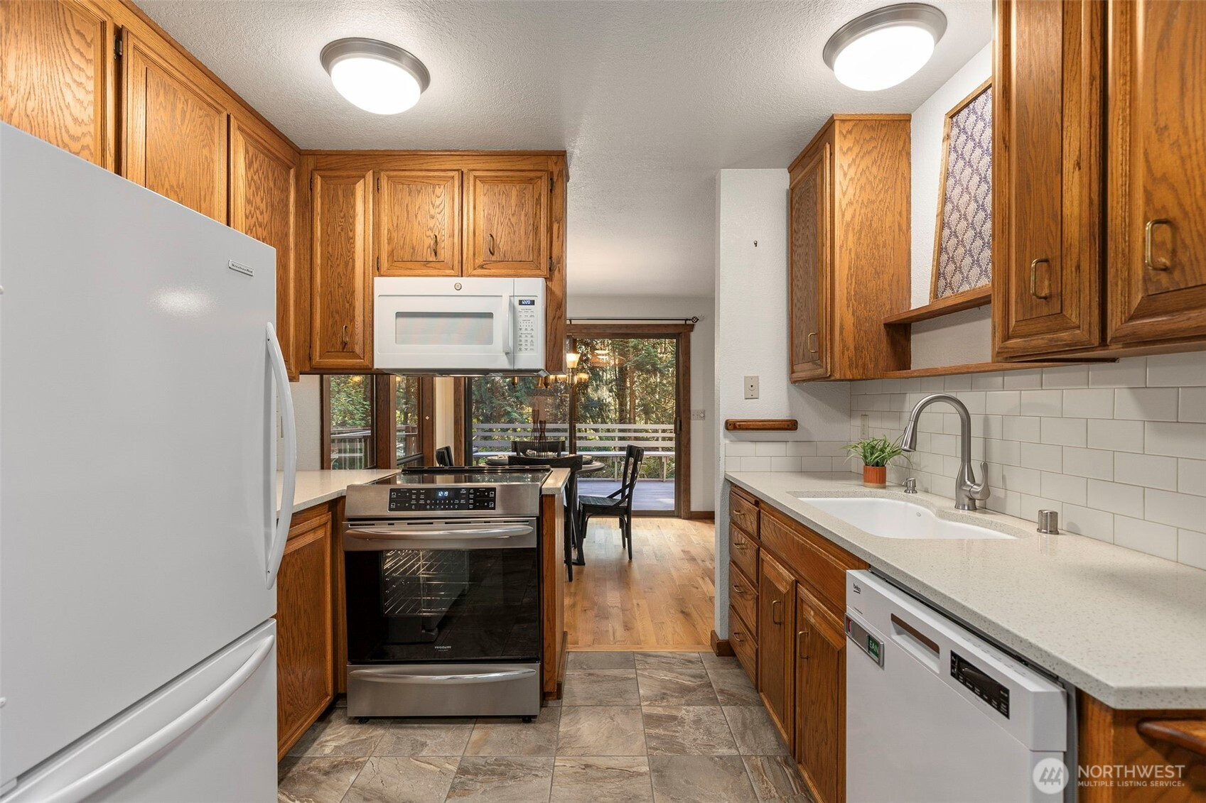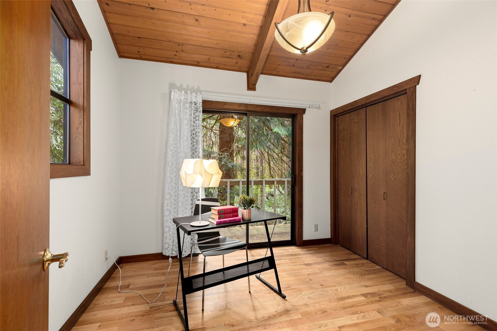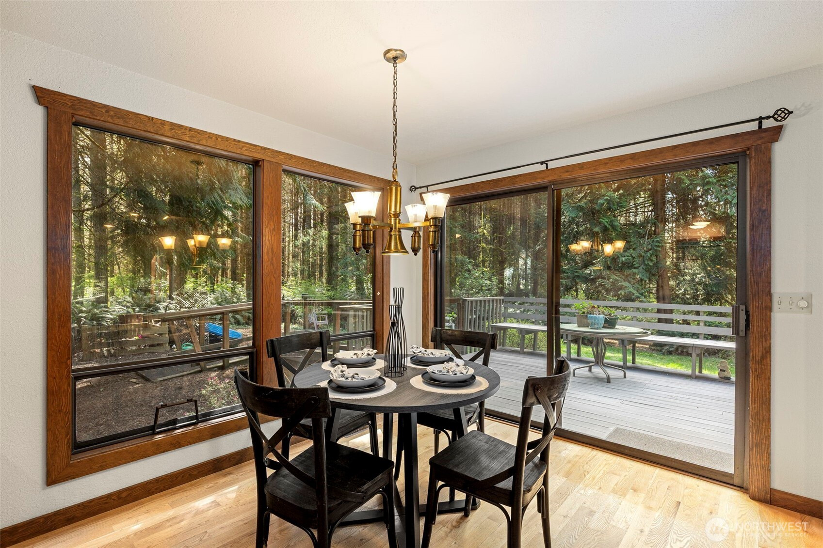 Looking to live in a cherished community along the Hood Canal? This lovingly maintained 3-bedroom, 1.75-bath home spans 2,057 sq ft in the Shore Woods community of Hansville. Built in 1981 and cared for by its original owners, this home showcases natural charm with cedar vaulted ceilings, exposed Doug Fir beams, and original hardwood flooring. The kitchen has been updated with quartz counters, subway tile backsplash, and ceramic tile flooring. A sunken portion of the living room features a Meridian Ceramic tile wood stove, creating a cozy and artsy space to enjoy conversation or get lost in a novel. Sliding doors open to the back deck and a peaceful wooded backdrop. Furnace, Heat Pump, and 30-year roof, just two years old. Enjoy the Hansville Greenway hiking trails in the area, trailheads are very close. Shore Woods amenities include a community pool, sports courts, a community center, and beach access, with impressive views of Hood Canal and the Olympic Mountains. The vacant lot next door is being sold as well, by the same owners. Purchase both to preserve more space, or build it out to fit your lifestyle. This Hansville home is a true gem.