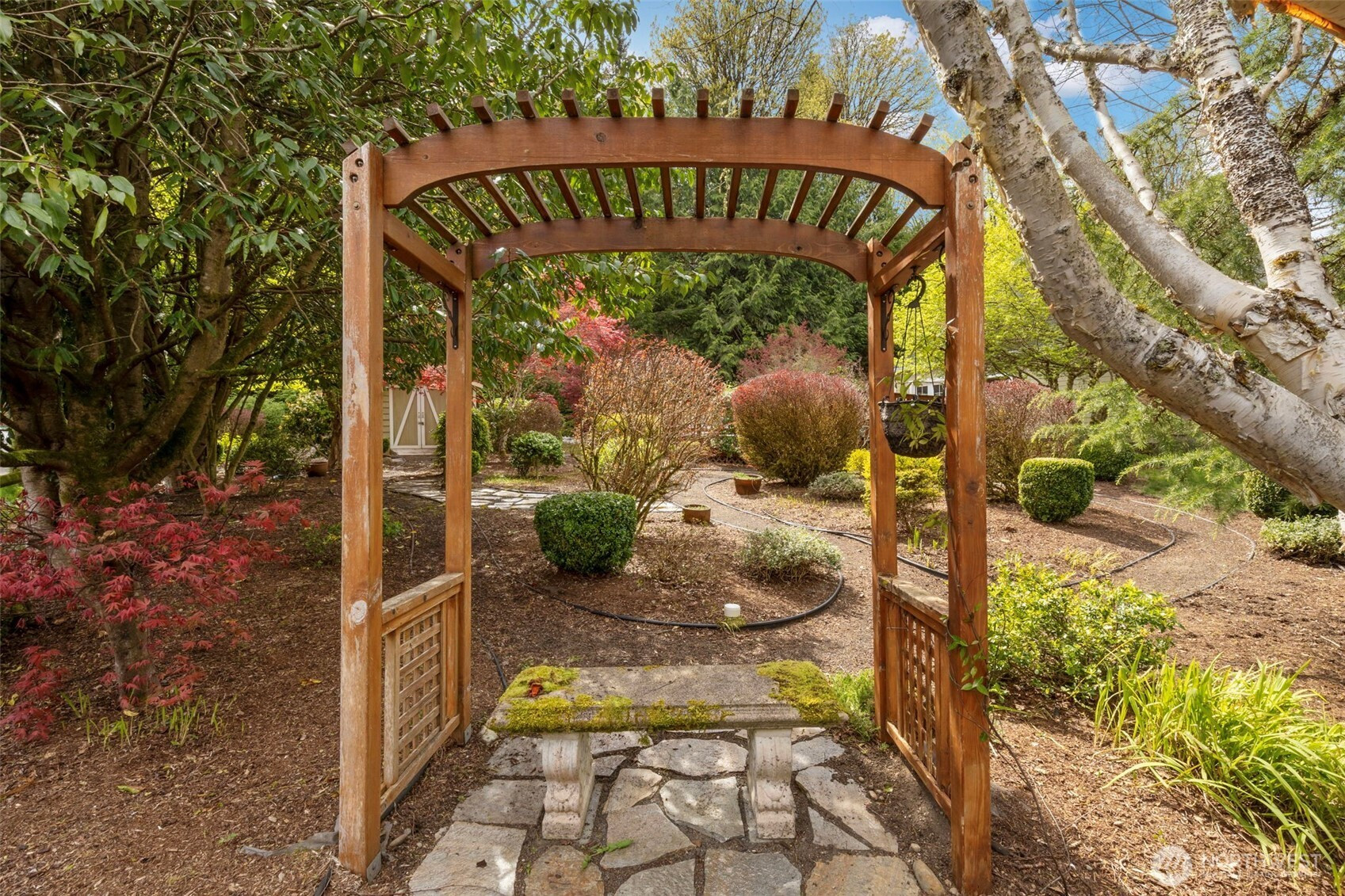 Located in the desirable Resource Ridge community, this well-appointed two-story home offers space, functionality, and a beautiful natural setting on nearly half an acre. The main level features a spacious primary suite with walk-in closet, a dedicated office, and a light-filled living room with vaulted ceilings, skylight, and a cozy propane fireplace. The large kitchen offers abundant storage, solid surface countertops, and a breakfast nook, flowing easily into the dining area with oak hardwood floors. Upstairs, you’ll find two additional bedrooms, a generous bonus room, and a conveniently located laundry area. Step outside to a massive deck overlooking established gardens with winding pathways creating a peaceful outdoor retreat. An attached 2-car garage completes this inviting home. Minutes to downtown Kingston, restaurants, beaches, trails and ferries, including the fast foot ferry to Seattle! No HOA! Seller procured inspection available.