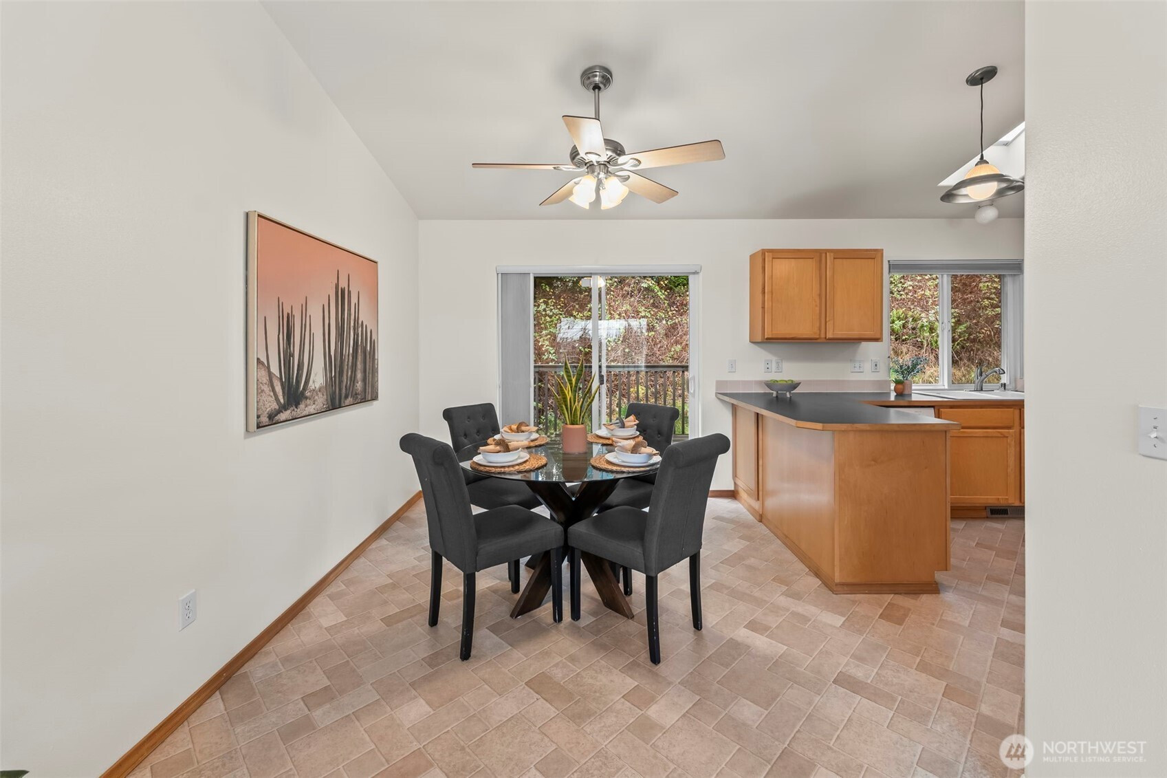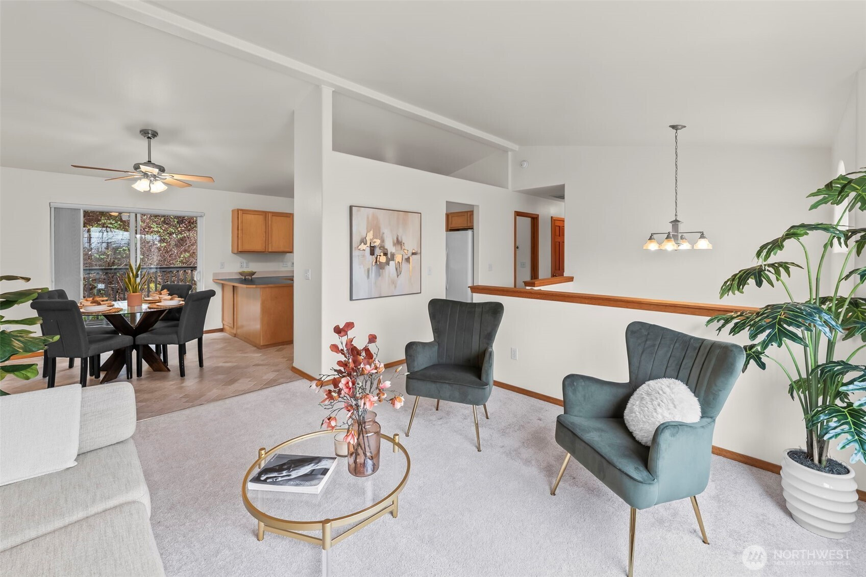 Pride of ownership shines throughout this turn key home in a great neighborhood! New exterior & interior paint, new roof in 2023 with transferable warranty & new water heater! Upstairs lives large with vaulted ceilings, natural light & a peek-a-boo view of the Cascade Mountains! Convenient floorplan includes kitchen, dining room, and 3 bedrooms upstairs with a full bathroom in the hallway and a 3/4 bathroom exclusive to the primary bedroom. You'll love the upgraded solid wood doors & trim. Downstairs is the perfectly sized family room with cozy gas fireplace. Washer and dryer are included with this home and the laundry room is spacious with a half bath as well. Two car garage, wired with openers. You may not need it now, but you'll be grateful for the AC in the summer! This home features a low maintenance yard with a greenbelt behind it for added privacy when you're enjoying the deck and back patio. Ideal location - close to parks, shopping, and perfect for commuting to work! Don't miss this gem!
