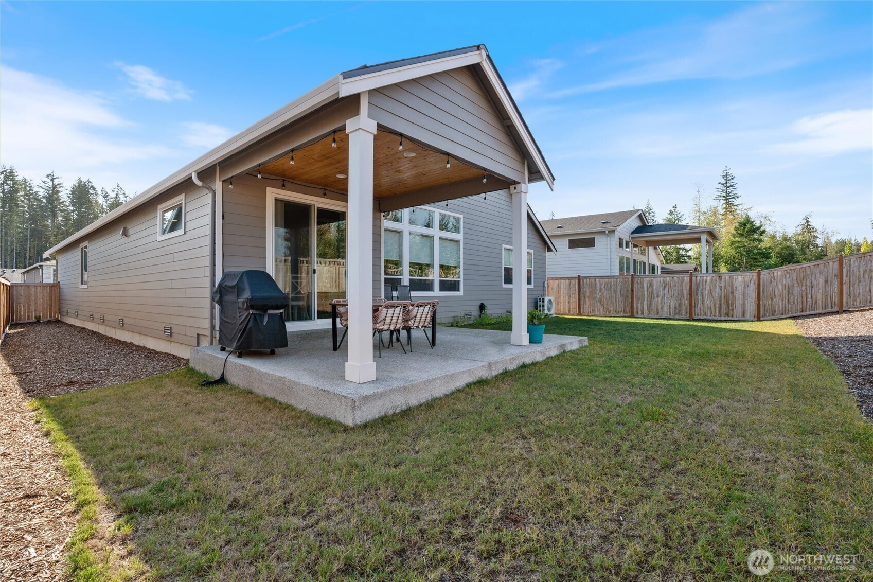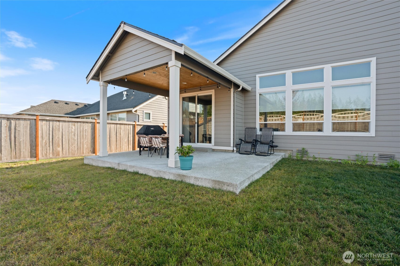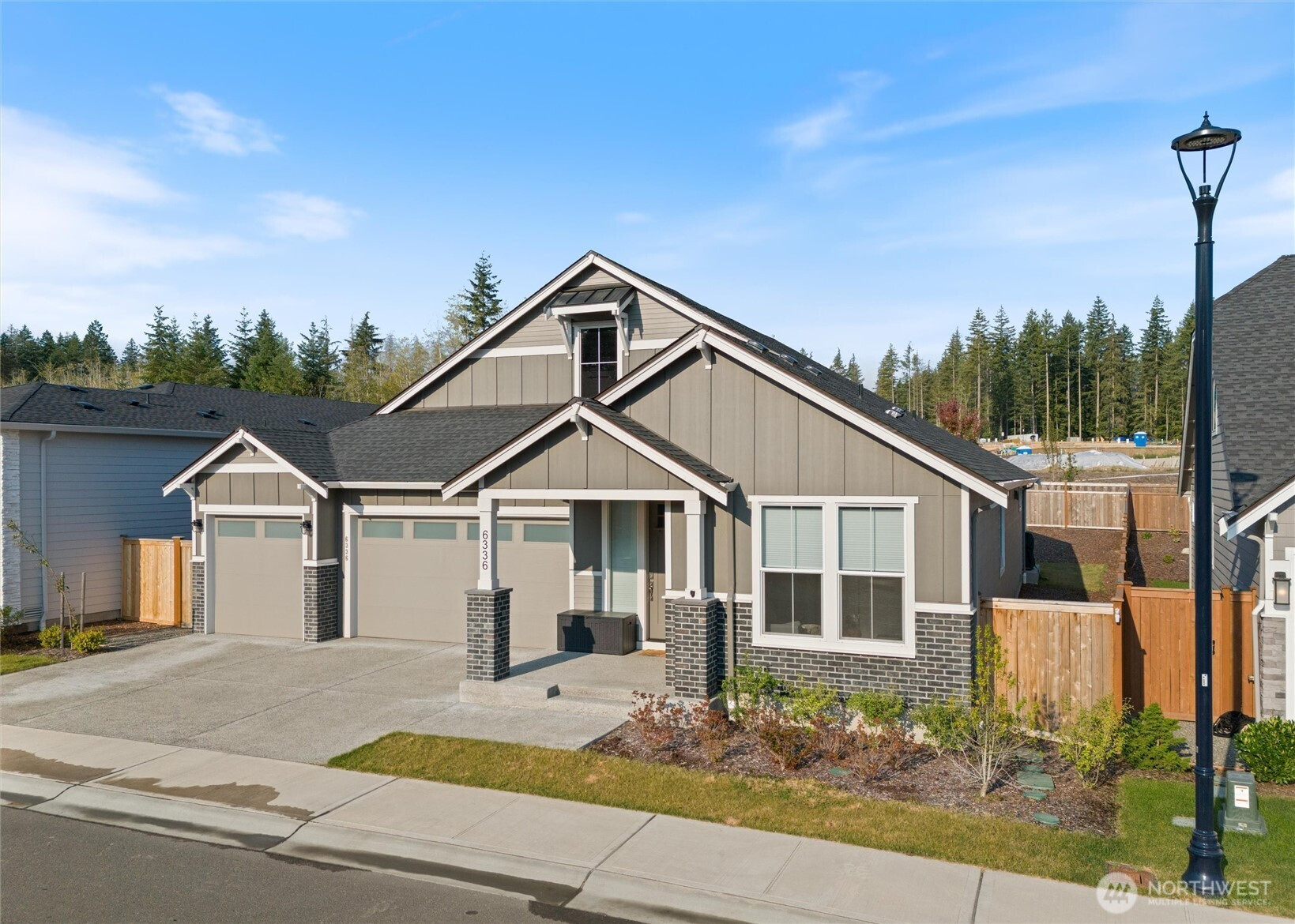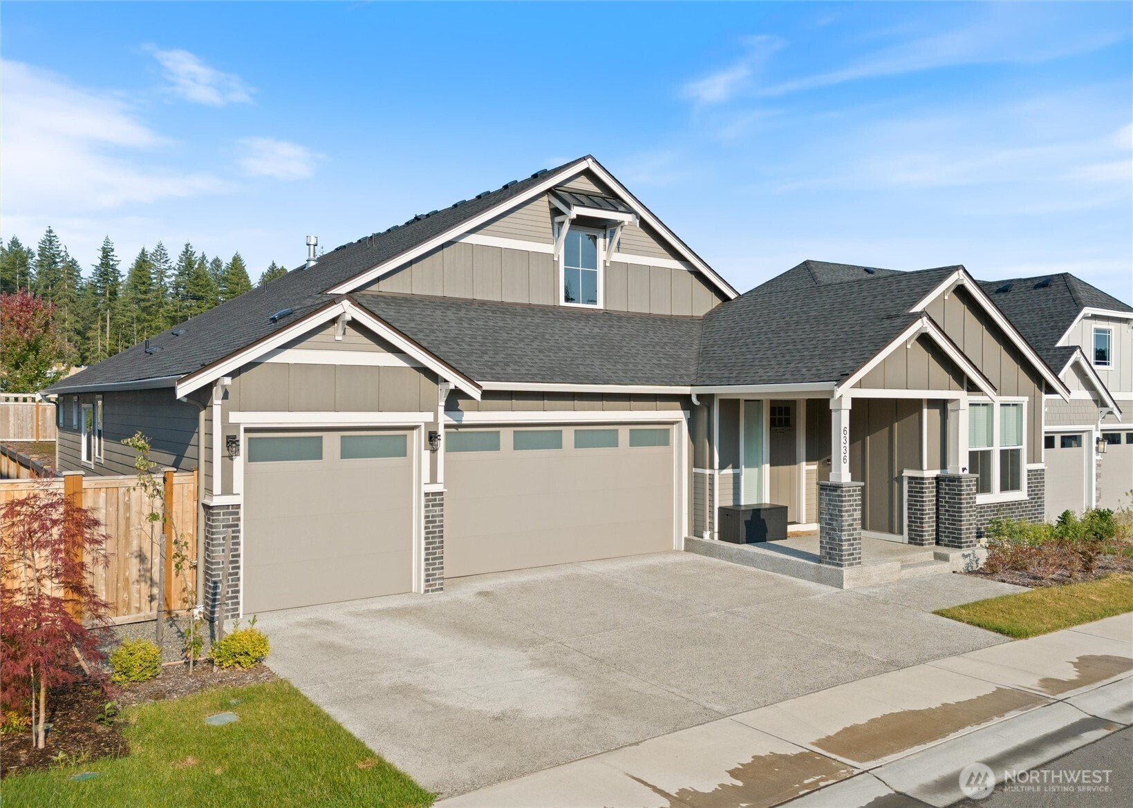 In McCormick Trails—where sleek contemporary design meets nature—this single-level stunner by Pacific Lifestyle Homes offers elegance in a tranquil neighborhood setting. Soaring 12' ceilings & walls of windows & transoms draw light into the heart of the home, where a chef’s kitchen with double ovens, quartz island, & walk-in pantry anchors the open-concept living space. The luxurious primary suite feels like a retreat, with spa-inspired free standing bath tub & beautiful tile shower & walk in closet awaits. Outside, enjoy a covered patio, fenced yard, & irrigation system—all set near trails, parks, golf, & freeway. The 3-car garage, smart wiring, A/C, & EV charger complete the package. This is the one that lives as beautifully as it shows.