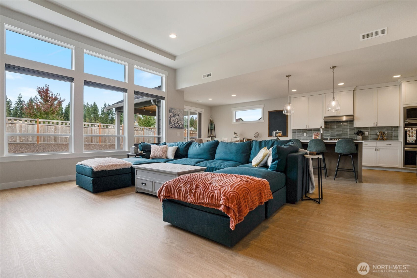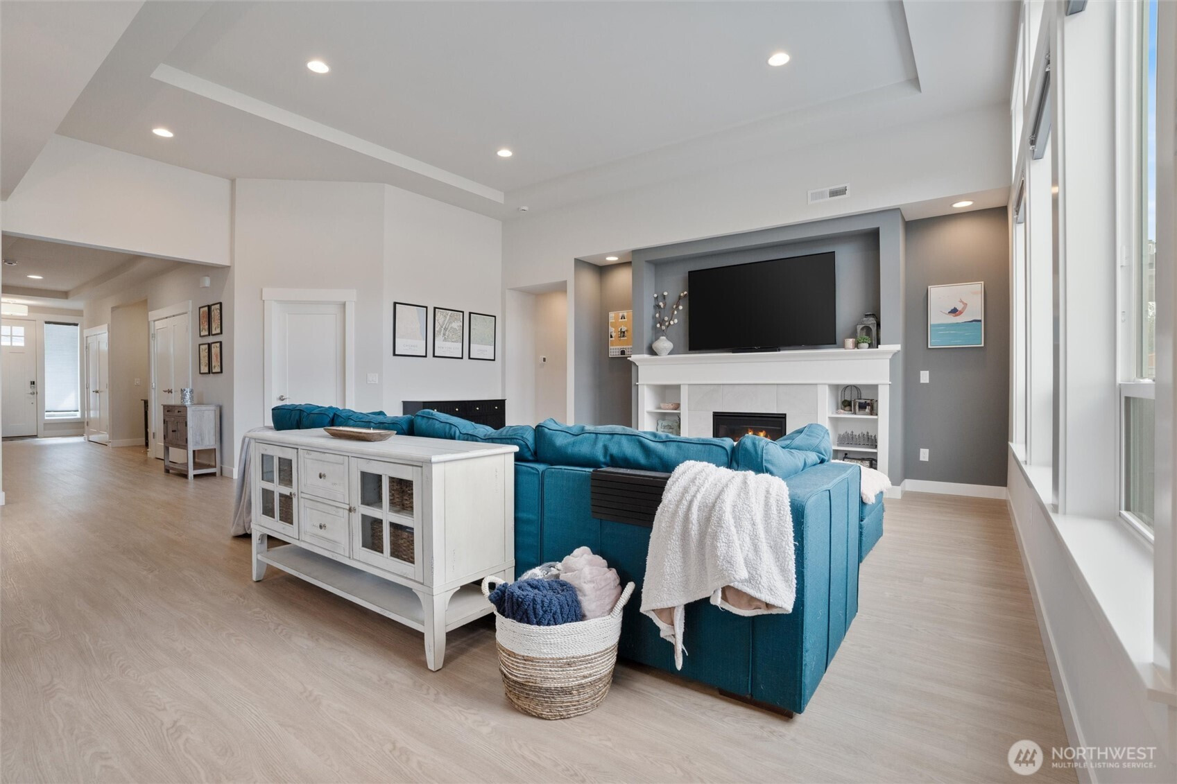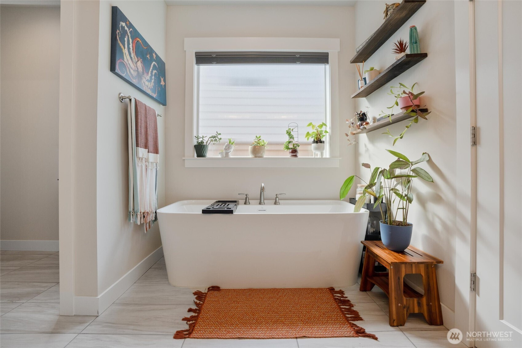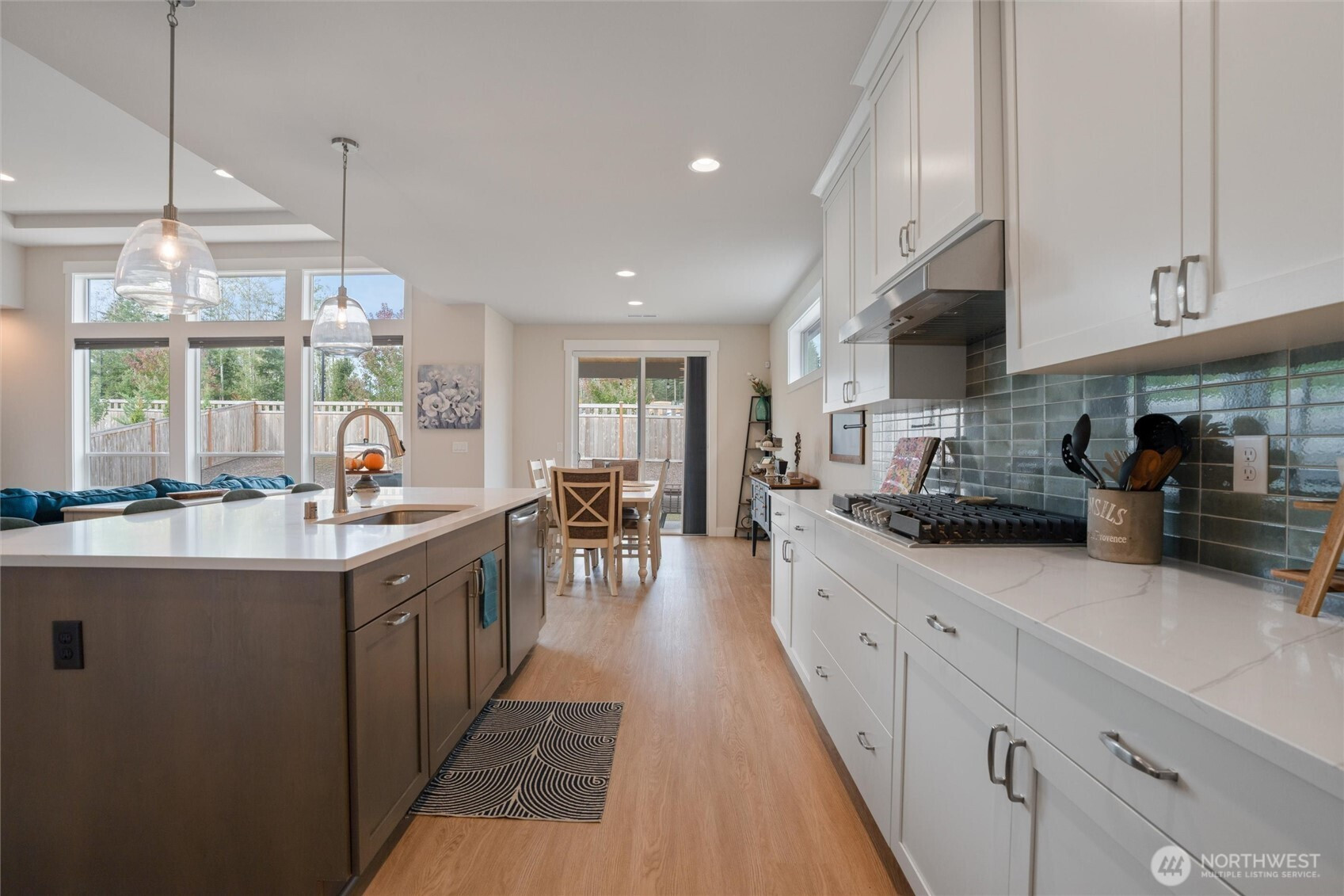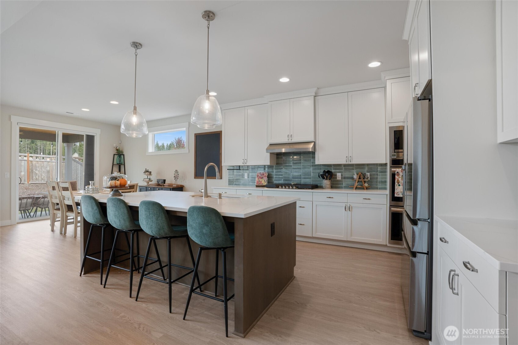 In McCormick Trails—where sleek contemporary design meets nature—this single-level stunner by Pacific Lifestyle Homes offers elegance in a tranquil neighborhood setting. Soaring 12' ceilings & walls of windows & transoms draw light into the heart of the home, where a chef’s kitchen with double ovens, quartz island, & walk-in pantry anchors the open-concept living space. The luxurious primary suite feels like a retreat, with spa-inspired free standing bath tub & beautiful tile shower & walk in closet awaits. Outside, enjoy a covered patio, fenced yard, & irrigation system—all set near trails, parks, golf, & freeway. The 3-car garage, smart wiring, A/C, & EV charger complete the package. This is the one that lives as beautifully as it shows.