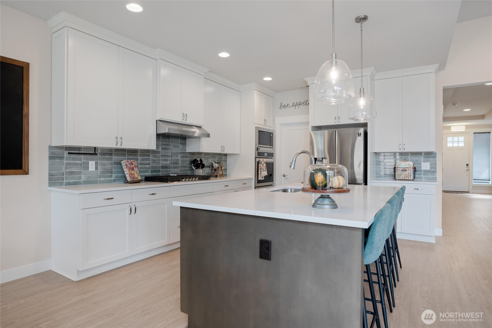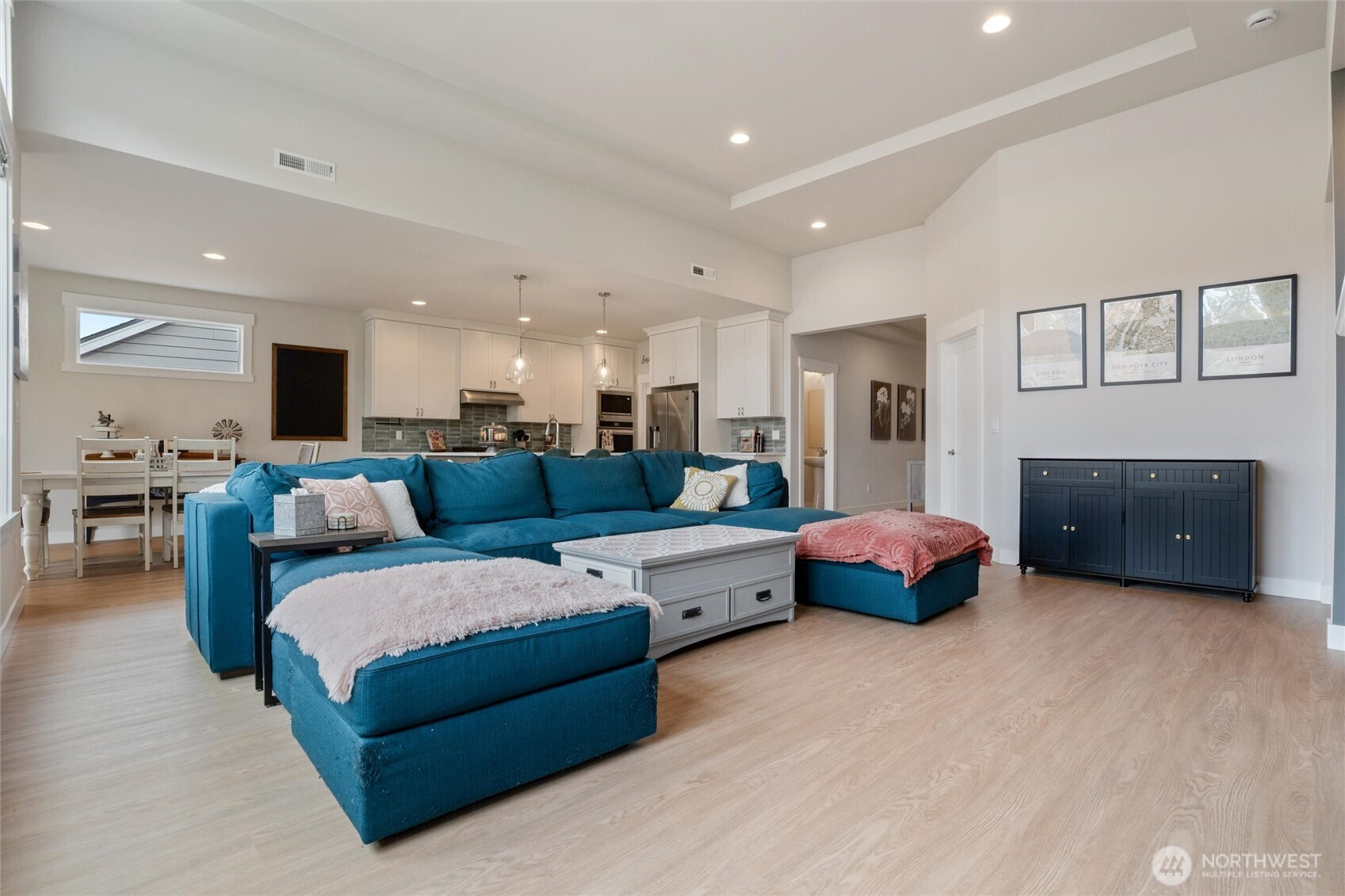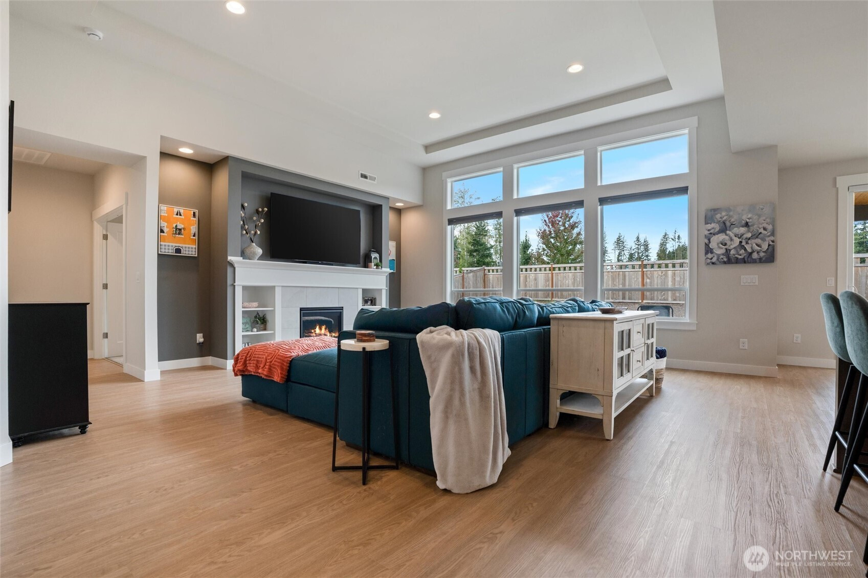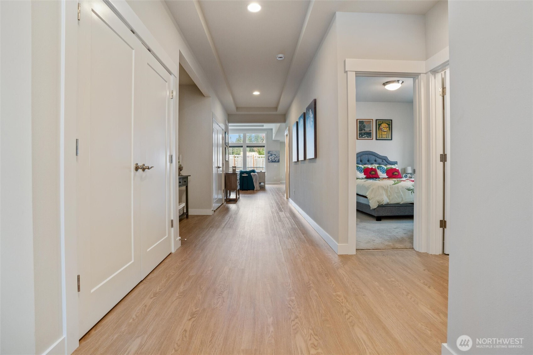 In McCormick Trails—where sleek contemporary design meets nature—this single-level stunner by Pacific Lifestyle Homes offers elegance in a tranquil neighborhood setting. Soaring 12' ceilings & walls of windows & transoms draw light into the heart of the home, where a chef’s kitchen with double ovens, quartz island, & walk-in pantry anchors the open-concept living space. The luxurious primary suite feels like a retreat, with spa-inspired free standing bath tub & beautiful tile shower & walk in closet awaits. Outside, enjoy a covered patio, fenced yard, & irrigation system—all set near trails, parks, golf, & freeway. The 3-car garage, smart wiring, A/C, & EV charger complete the package. This is the one that lives as beautifully as it shows.