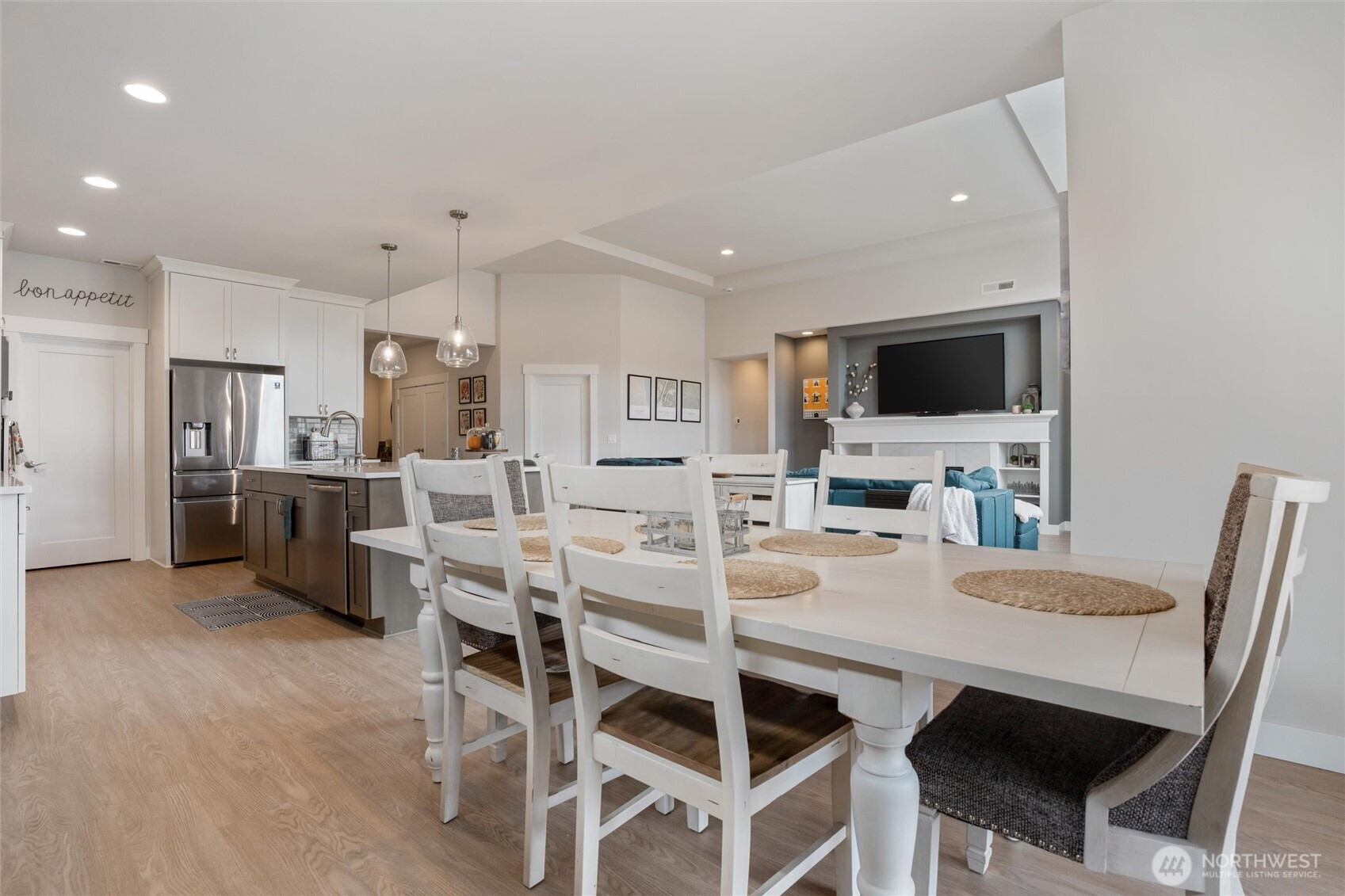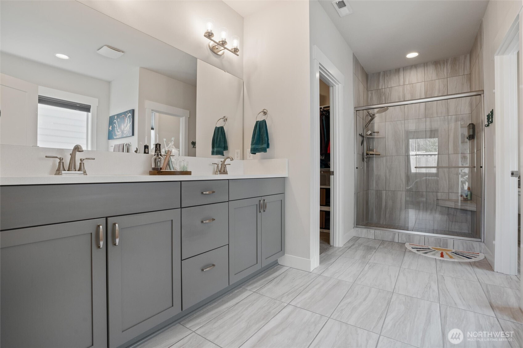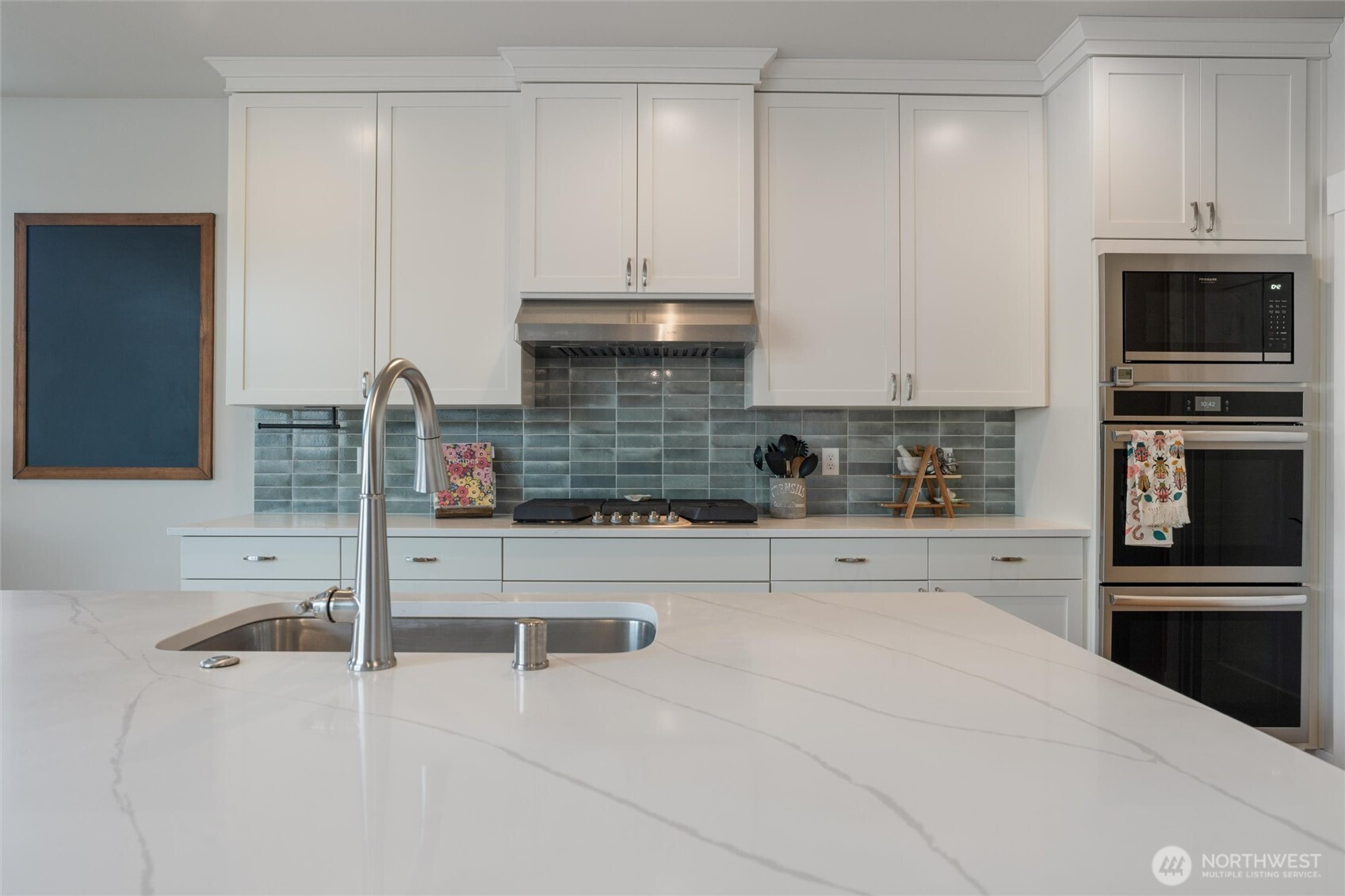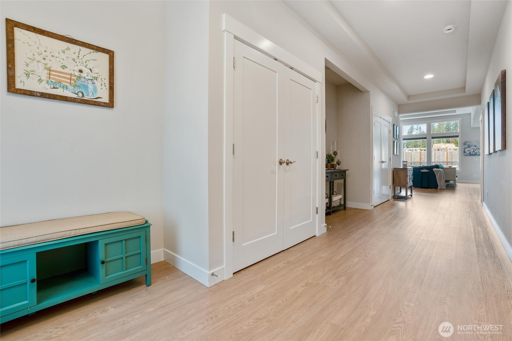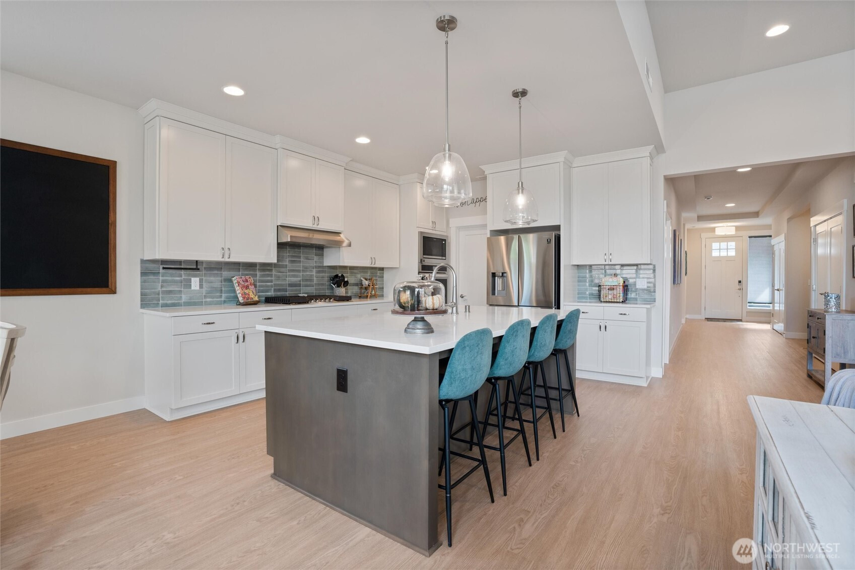 In McCormick Trails—where sleek contemporary design meets nature—this single-level stunner by Pacific Lifestyle Homes offers elegance in a tranquil neighborhood setting. Soaring 12' ceilings & walls of windows & transoms draw light into the heart of the home, where a chef’s kitchen with double ovens, quartz island, & walk-in pantry anchors the open-concept living space. The luxurious primary suite feels like a retreat, with spa-inspired free standing bath tub & beautiful tile shower & walk in closet awaits. Outside, enjoy a covered patio, fenced yard, & irrigation system—all set near trails, parks, golf, & freeway. The 3-car garage, smart wiring, A/C, & EV charger complete the package. This is the one that lives as beautifully as it shows.