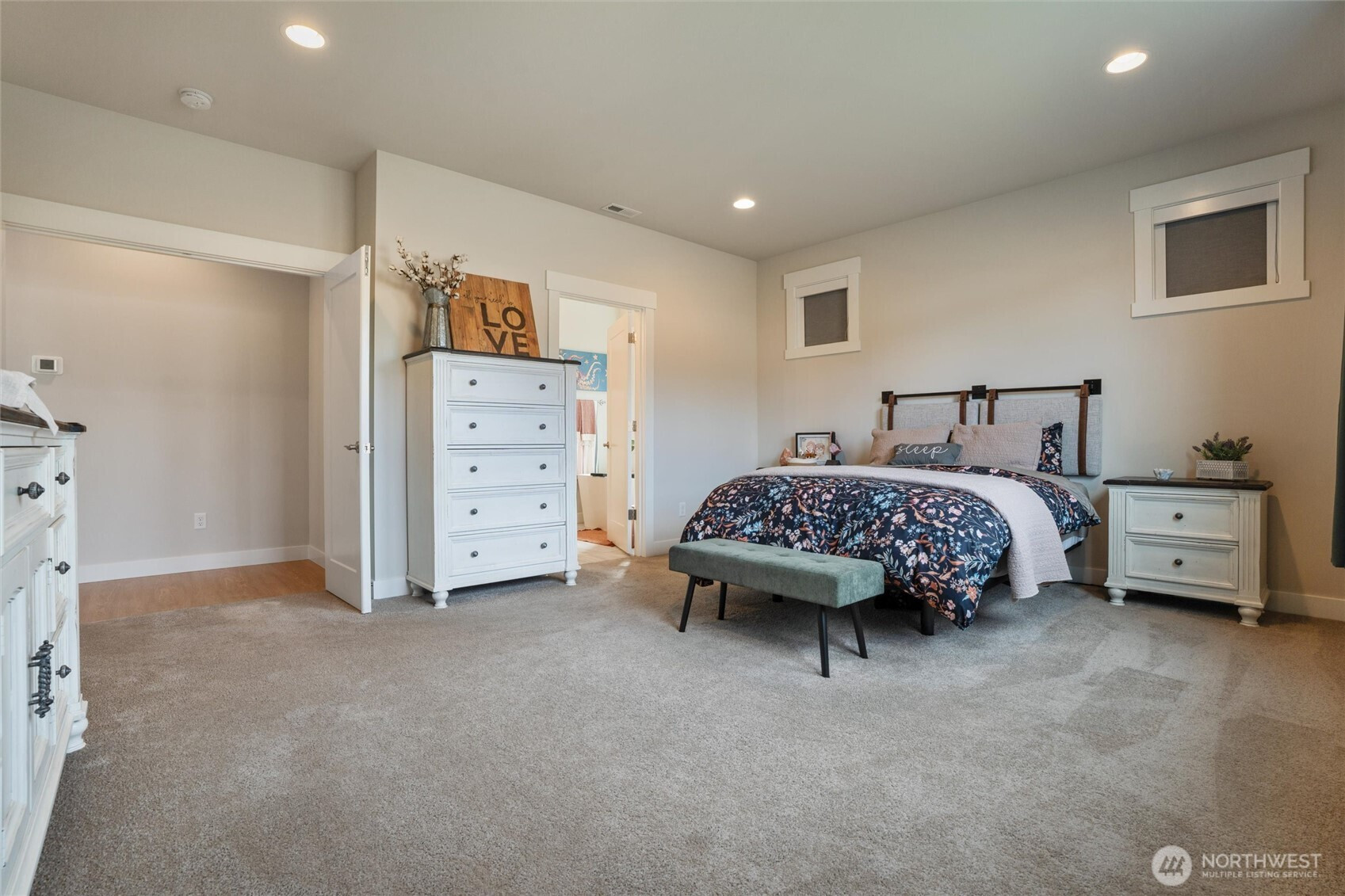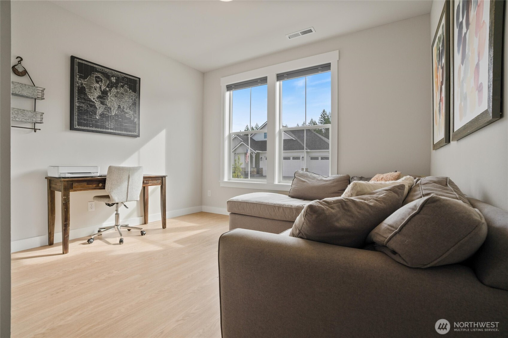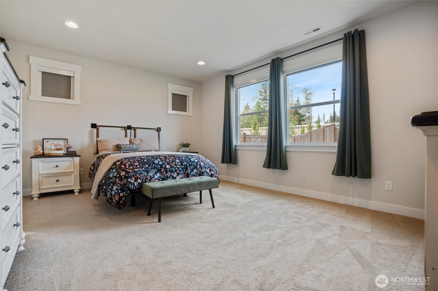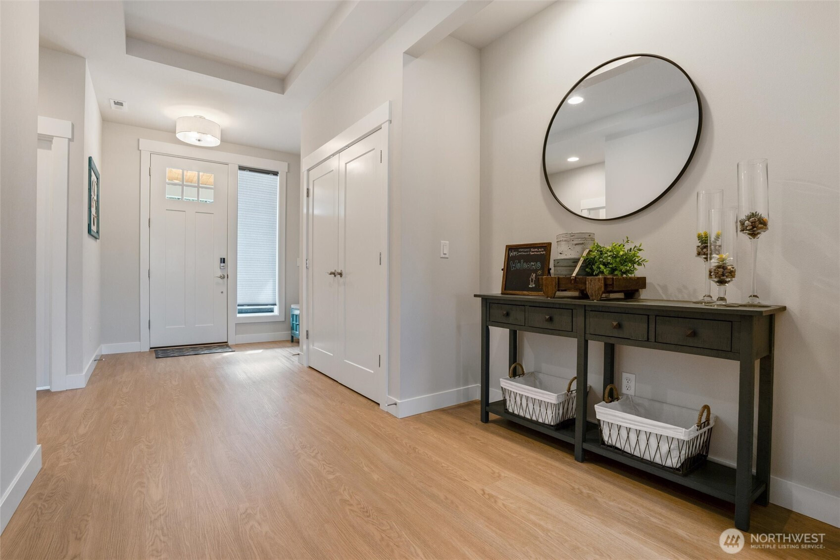 In McCormick Trails—where sleek contemporary design meets nature—this single-level stunner by Pacific Lifestyle Homes offers elegance in a tranquil neighborhood setting. Soaring 12' ceilings & walls of windows & transoms draw light into the heart of the home, where a chef’s kitchen with double ovens, quartz island, & walk-in pantry anchors the open-concept living space. The luxurious primary suite feels like a retreat, with spa-inspired free standing bath tub & beautiful tile shower & walk in closet awaits. Outside, enjoy a covered patio, fenced yard, & irrigation system—all set near trails, parks, golf, & freeway. The 3-car garage, smart wiring, A/C, & EV charger complete the package. This is the one that lives as beautifully as it shows.