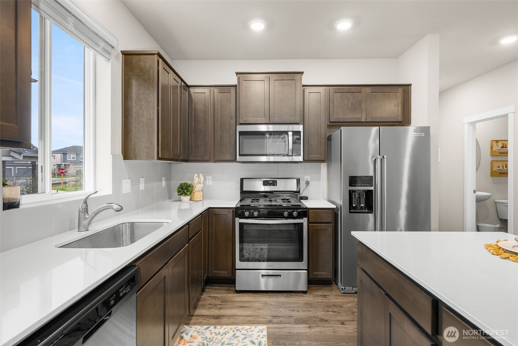 Almost new home in Illahee Springs in the award-winning Central Kitsap School District! Offering almost 1800 square feet, this well-planned, open layout is designed to maximize the easy flow and natural light in the spacious living room, dining room and kitchen, with SS appliances (gas stove), warm, rich wood cabinetry and a center island. Three bedrooms upstairs, including the functional and modern Primary Suite, with an attached bath and walk-in closet. Move-in ready, amazing location, two car garage, and A/C make this home convenient, practical and stylish. Adorable, easy maintenance backyard offers the ideal entertaining space. Super sweet neighborhood, complete with walking paths, park, dog park, and abundant guest parking.