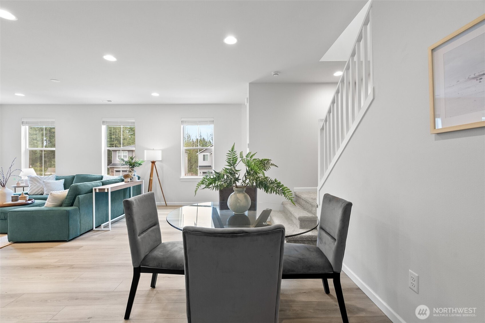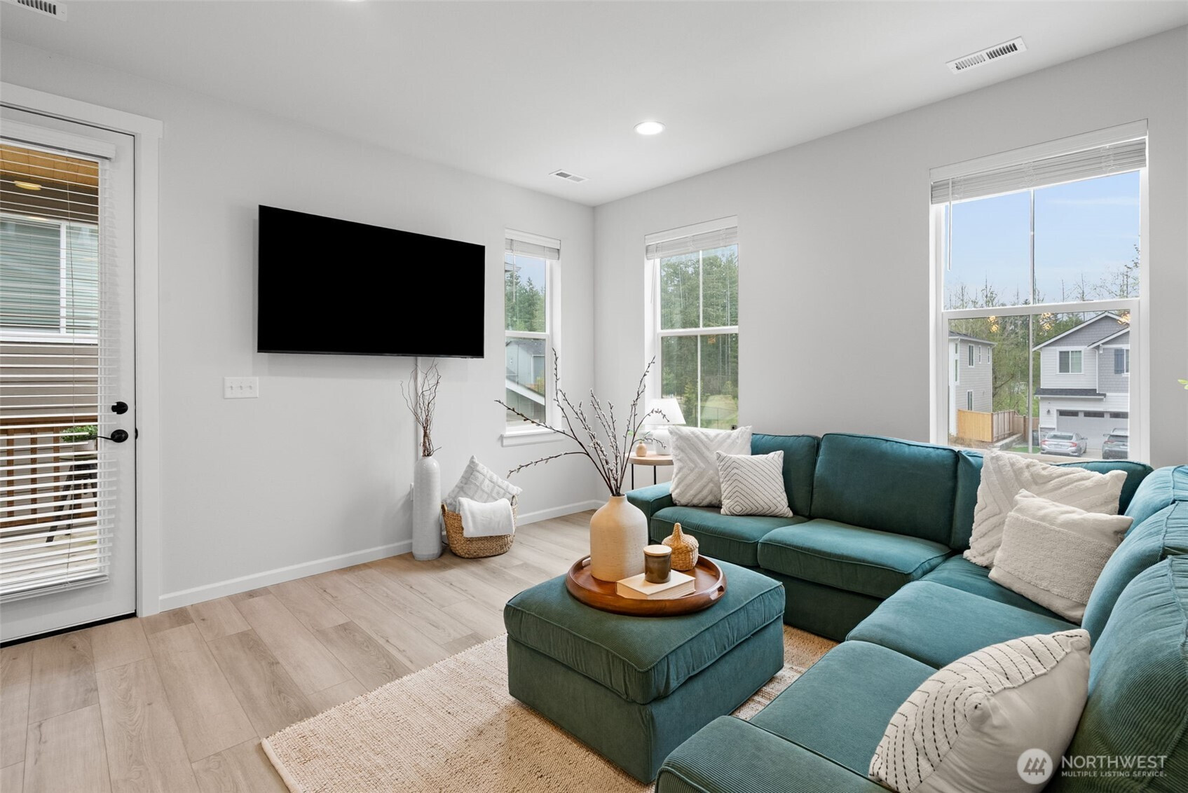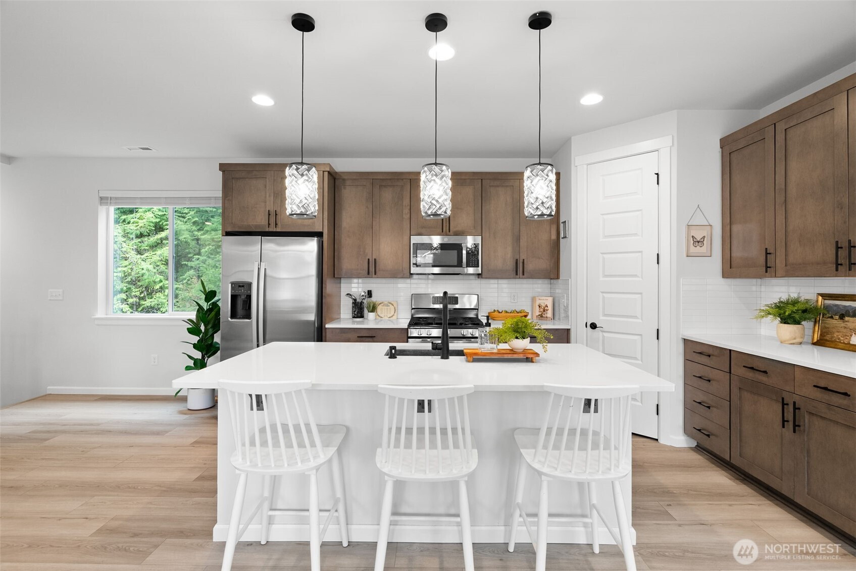 This like new 2-bedroom, 2.5 bath home in Emelia Landing offers modern comfort and convenient community access to shopping, schools, and ferries for your commuting! This is the popular Lachlan Model build by Richmond American Homes in 2024! Three story home offers ample simple living and entertaining space, including an inviting great room, open dining room and a corner kitchen with a center island and spacious walk-in pantry on the main floor. Upstairs you will find a central laundry space with a primary suite with lavish bath and generous walk-in closet, 2nd bedroom and secondary guest bathroom. Two car garage with exterior door access and extra windows for light, and all this situated on a quiet cul de sac with only 11 homes!