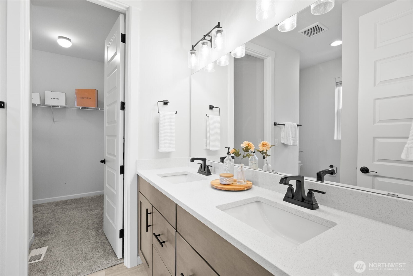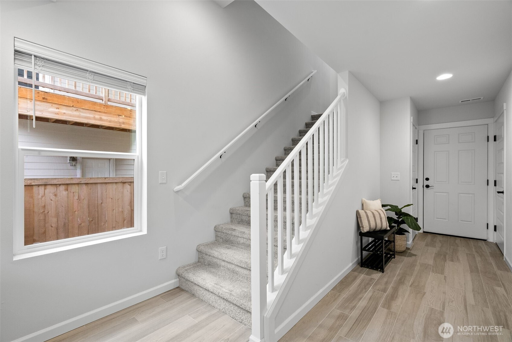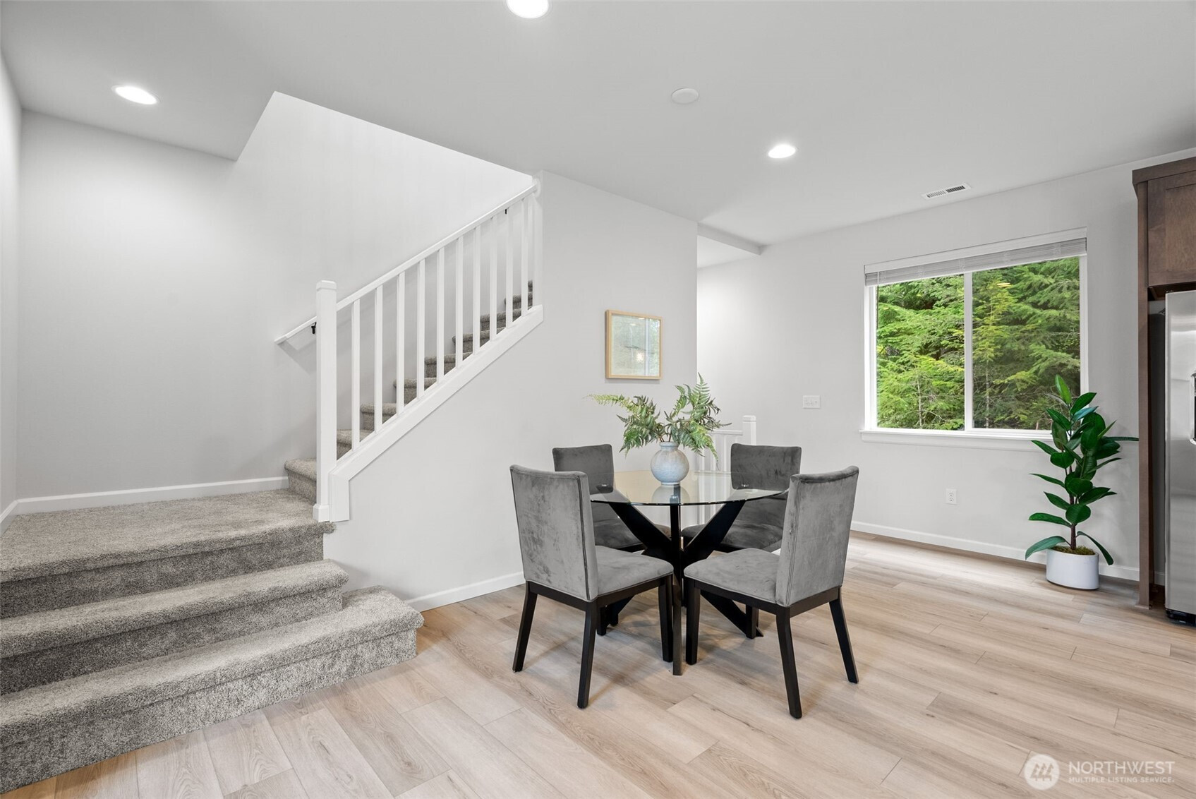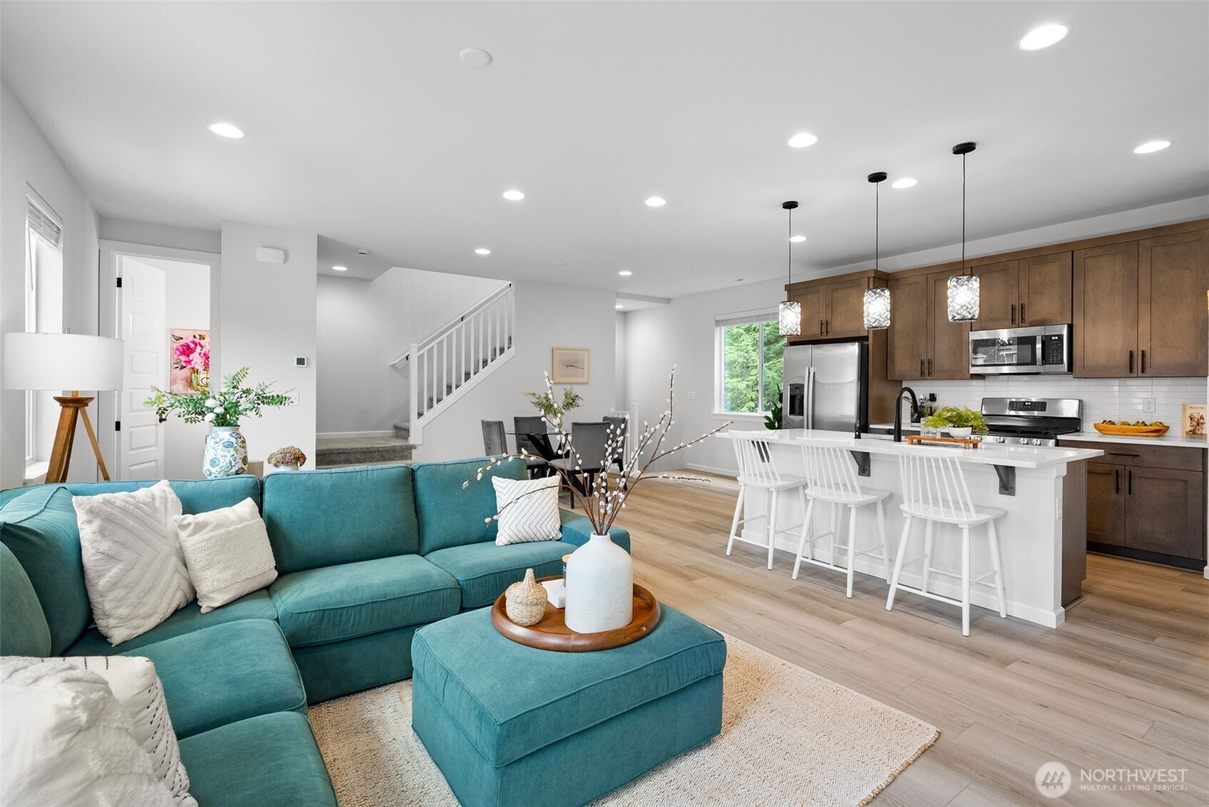 This like new 2-bedroom, 2.5 bath home in Emelia Landing offers modern comfort and convenient community access to shopping, schools, and ferries for your commuting! This is the popular Lachlan Model build by Richmond American Homes in 2024! Three story home offers ample simple living and entertaining space, including an inviting great room, open dining room and a corner kitchen with a center island and spacious walk-in pantry on the main floor. Upstairs you will find a central laundry space with a primary suite with lavish bath and generous walk-in closet, 2nd bedroom and secondary guest bathroom. Two car garage with exterior door access and extra windows for light, and all this situated on a quiet cul de sac with only 11 homes!