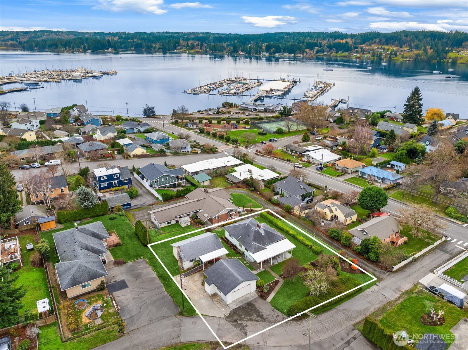 The perfect package...2 houses, water views, large sunny lot and walkable to town! Enjoy stunning Liberty Bay water and Olympic Mountain views from this original 1940’s charming 3 Bedroom/2 Bathroom home located in the heart of Poulsbo. The main home features two light-filled upper bedrooms and a private lower-level bedroom and den, complemented by an open living area that captures all day sunlight and sunsets. A large front deck looks out onto an oversized yard perfect for entertaining. 2nd house on property offers lots of potential; multigenerational living, guest space or rental income. Spacious 2-car garage provides lots of storage. Walkable to the waterfront, parks, downtown Poulsbo and local amenities. This property is beyond special!