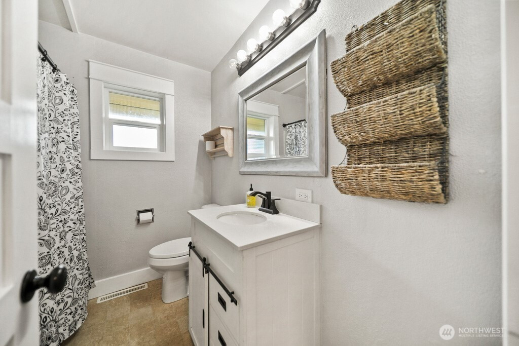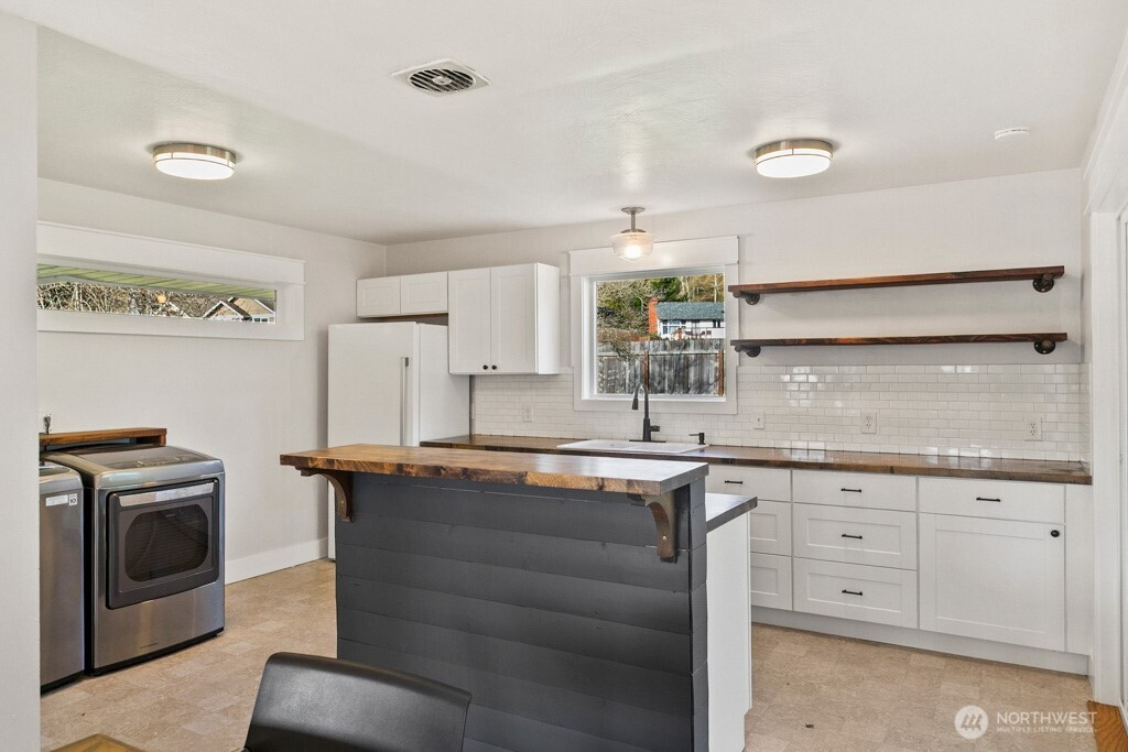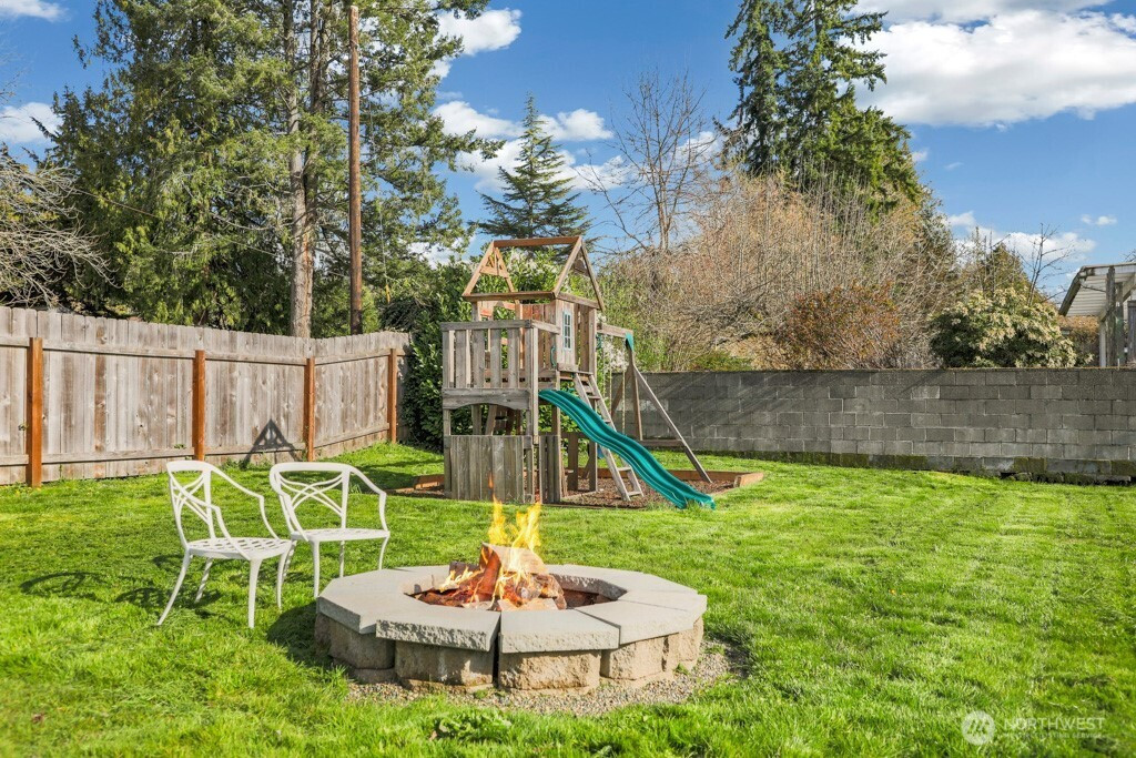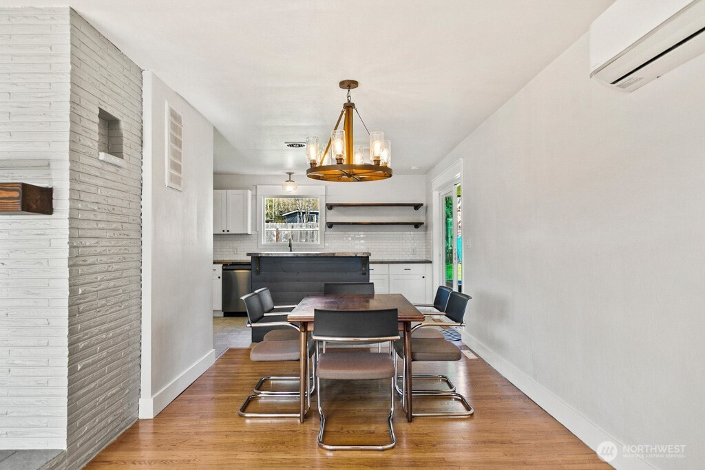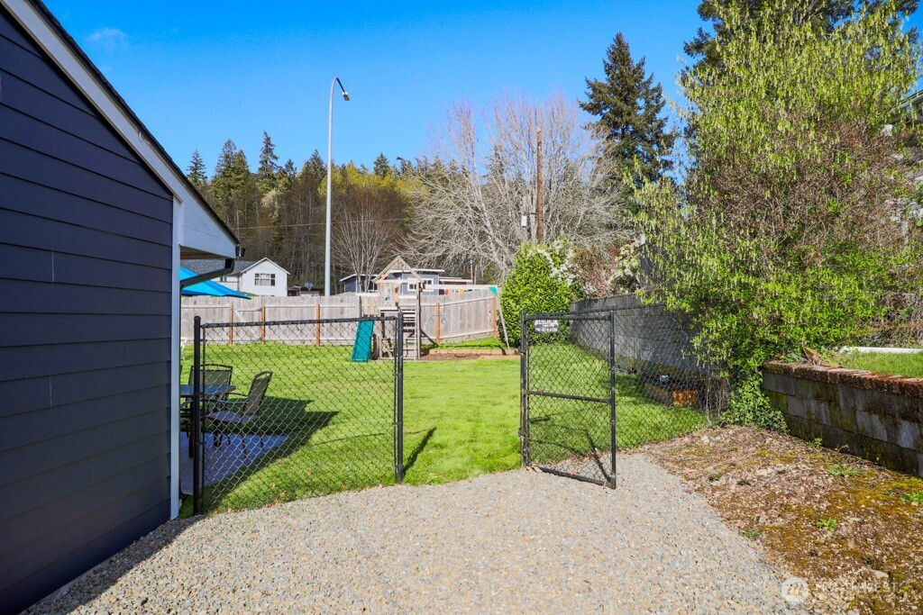 Discover the charm of one-level living in the delightful Kitsap Lake neighborhood, where your beautifully updated rambler awaits. This move-in ready, 3-bedroom, 1-bath home boasts numerous recent enhancements. The fresh exterior features new cement siding, vibrant paint, vinyl windows, and a brand-new roof. The welcoming entrance showcases new doors, elegant casings, and wainscoting, all with a fresh coat of paint. Inside, a spacious living room offers bright picture windows and original hardwood floors. Unwind by the cozy fireplace while enjoying stunning mountain and lake views. The kitchen, equipped with new stainless-steel appliances, a breakfast island, and a walk-in pantry, features a large window overlooking the fully fenced backyard, complete with a swing set and fire pit. The patio off the kitchen is ideal for year-round entertainment. A mini-split system ensures comfortable heat and AC, while a 240-volt outlet in the garage adds convenience. Ample parking is available for your RV or boat. Connected to the City sewer, this property also has expansion potential for add-ons, a shop, a garage, or even an accessory dwelling unit (ADU). Conveniently located near all amenities, a neighborhood grocery store, restaurants, a public lake park and boat launch, and situated between Silverdale and Bremerton, it’s just a short distance from Naval bases and the Seattle ferry. Don’t miss the chance to own this exquisite home!