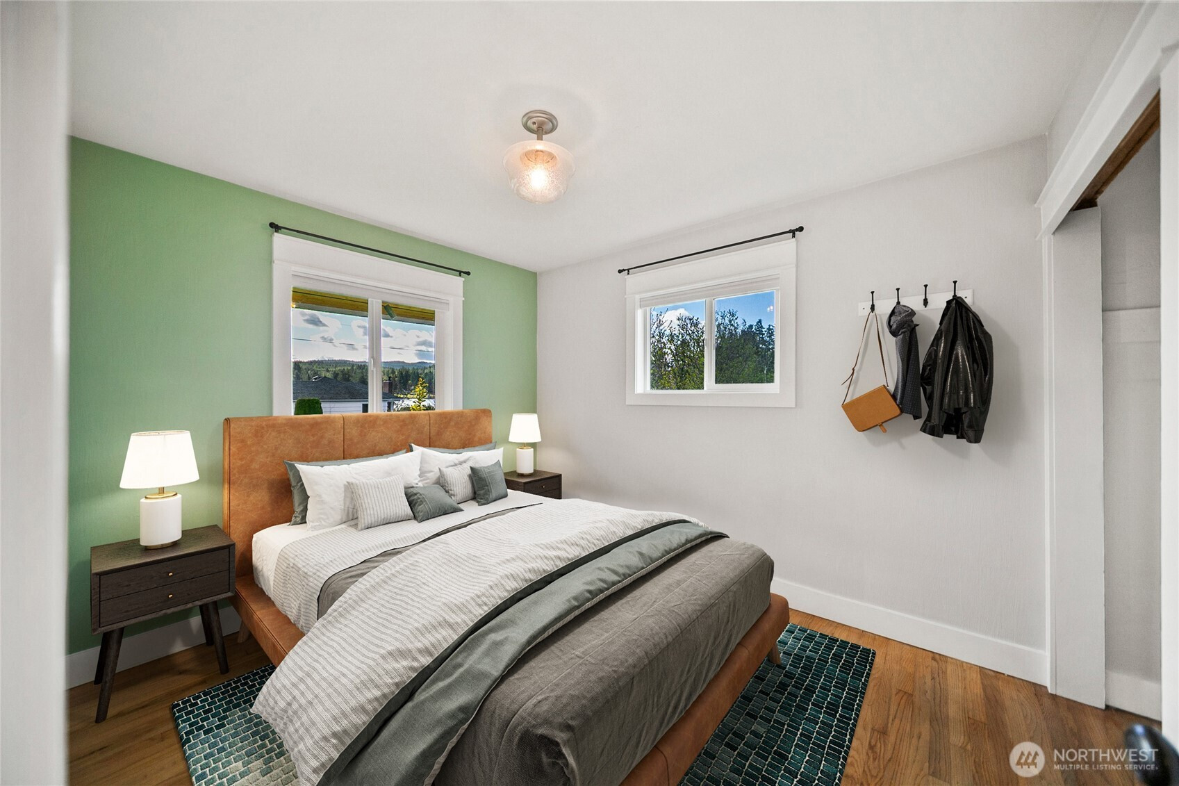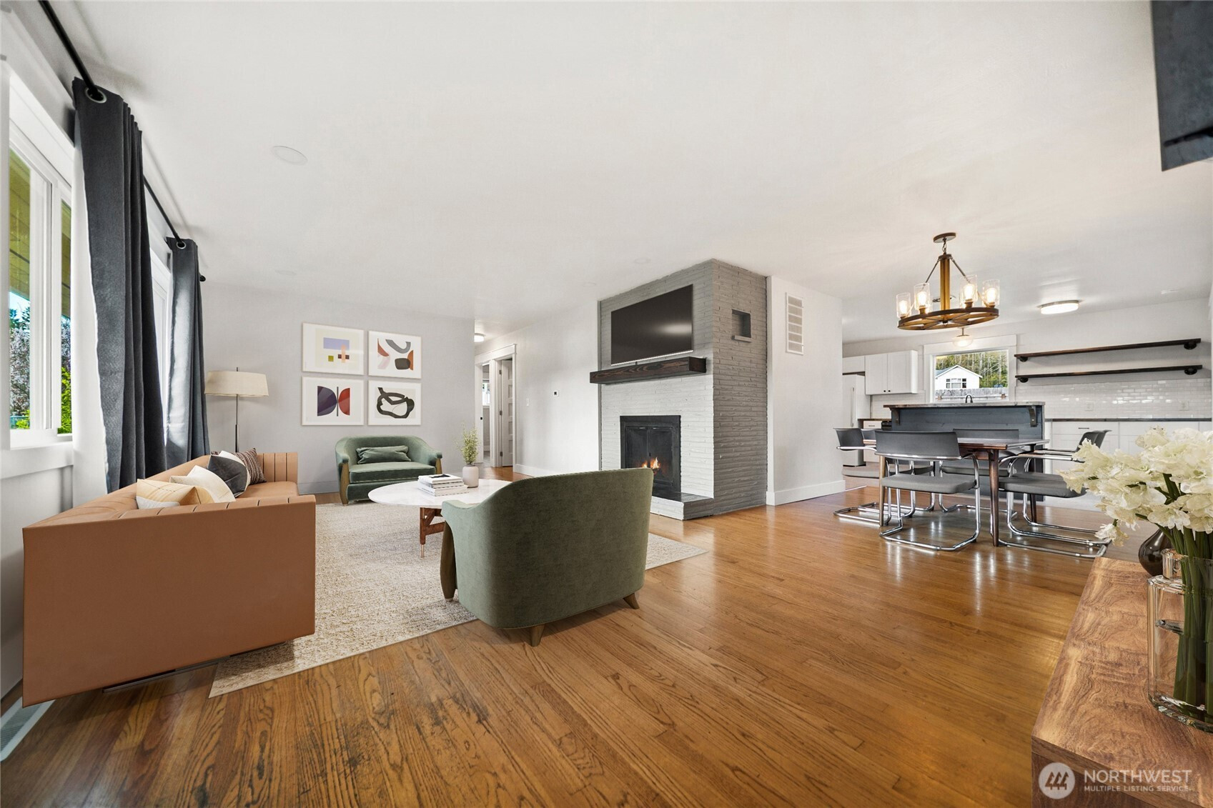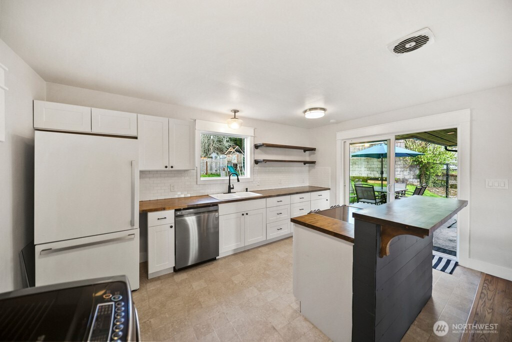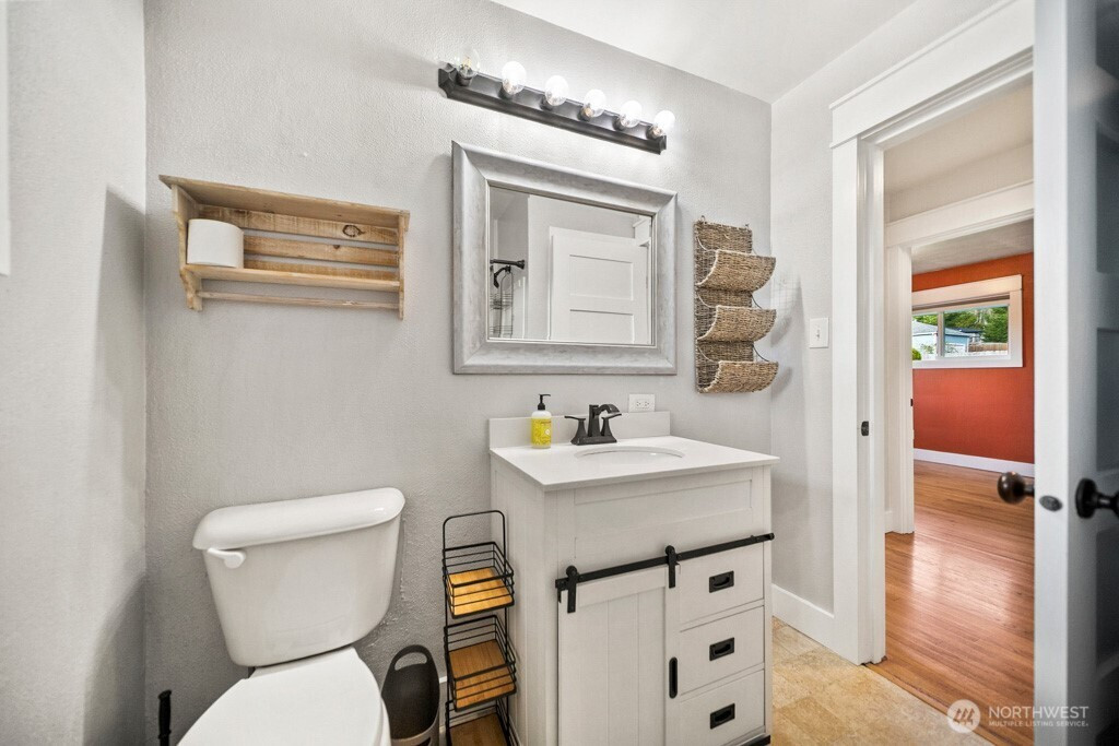 Discover the charm of one-level living in the delightful Kitsap Lake neighborhood, where your beautifully updated rambler awaits. This move-in ready, 3-bedroom, 1-bath home boasts numerous recent enhancements. The fresh exterior features new cement siding, vibrant paint, vinyl windows, and a brand-new roof. The welcoming entrance showcases new doors, elegant casings, and wainscoting, all with a fresh coat of paint. Inside, a spacious living room offers bright picture windows and original hardwood floors. Unwind by the cozy fireplace while enjoying stunning mountain and lake views. The kitchen, equipped with new stainless-steel appliances, a breakfast island, and a walk-in pantry, features a large window overlooking the fully fenced backyard, complete with a swing set and fire pit. The patio off the kitchen is ideal for year-round entertainment. A mini-split system ensures comfortable heat and AC, while a 240-volt outlet in the garage adds convenience. Ample parking is available for your RV or boat. Connected to the City sewer, this property also has expansion potential for add-ons, a shop, a garage, or even an accessory dwelling unit (ADU). Conveniently located near all amenities, a neighborhood grocery store, restaurants, a public lake park and boat launch, and situated between Silverdale and Bremerton, it’s just a short distance from Naval bases and the Seattle ferry. Don’t miss the chance to own this exquisite home!
