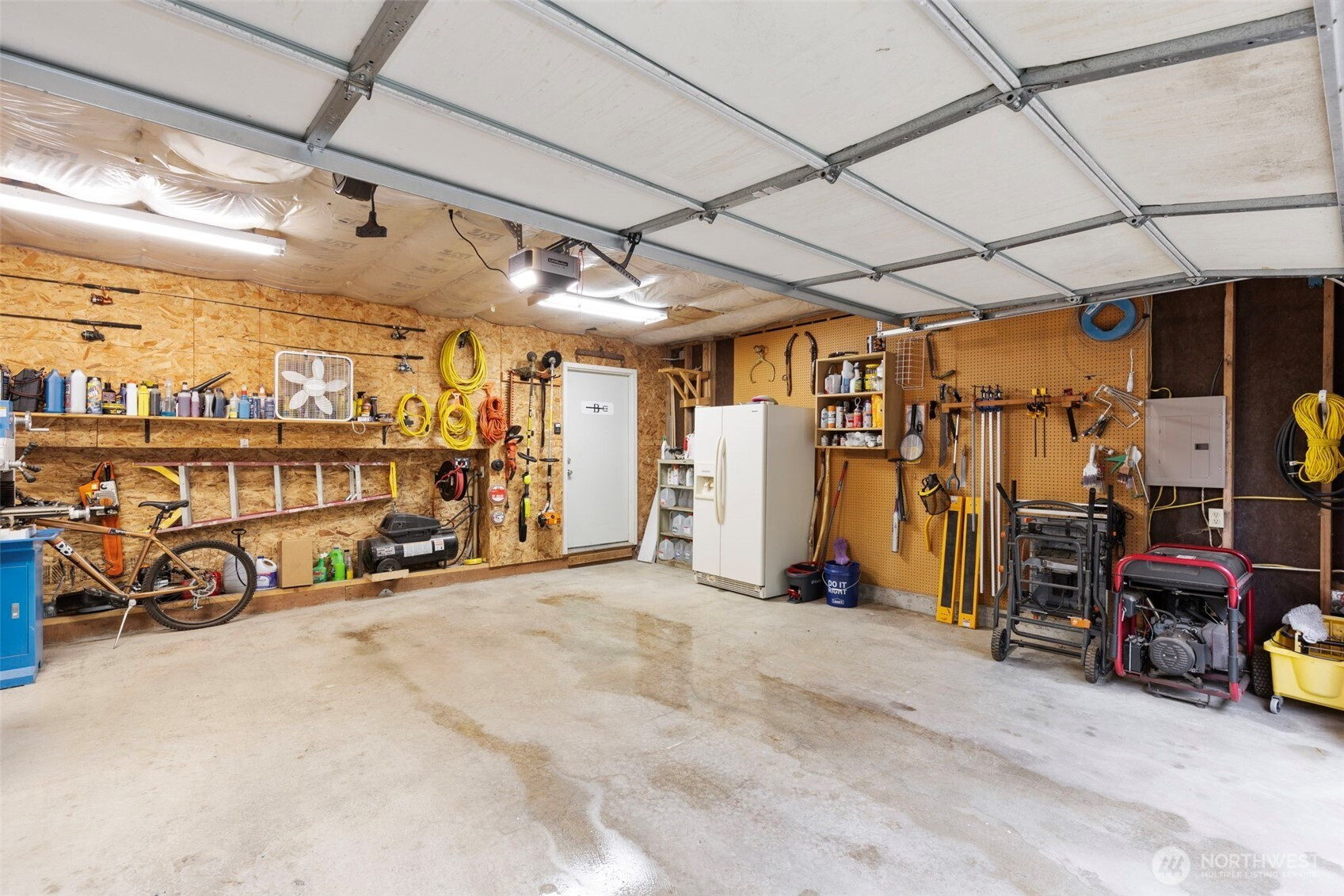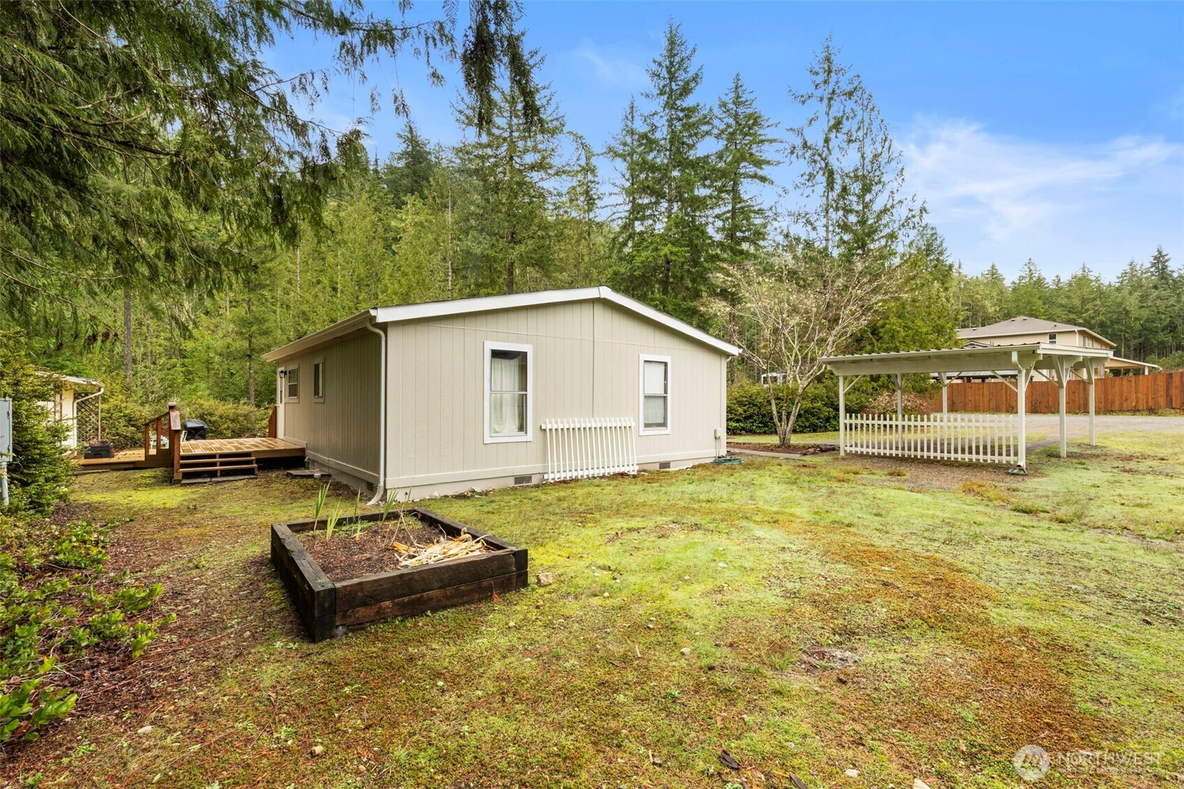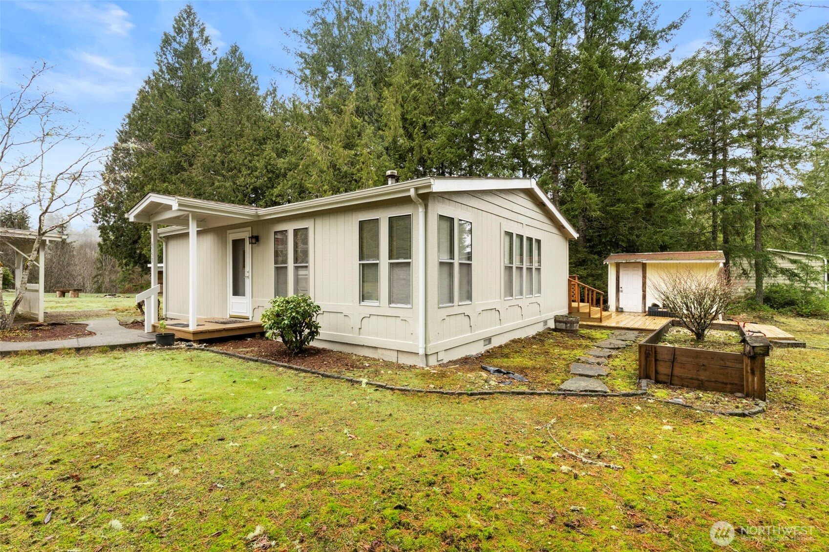 Private 5.41-acre gated property in Seabeck featuring a well-maintained manufactured home in immaculate condition inside and out. Partial mountain views and extensive clearing create open, usable space while preserving privacy. Multiple outbuildings, sheds, and shops provide excellent storage and workspace. A large two-car garage includes a workshop and bonus room above. Two septic systems on the property will add flexibility and future potential. Ample storage areas and fresh-cut wood convey. Fiber-optic high-speed internet is installed, ideal for remote work setting. A seasonal salmon creek runs through the lower portion of the property, enhancing this peaceful rural setting with room to grow, garden, or expand. So much to explore!