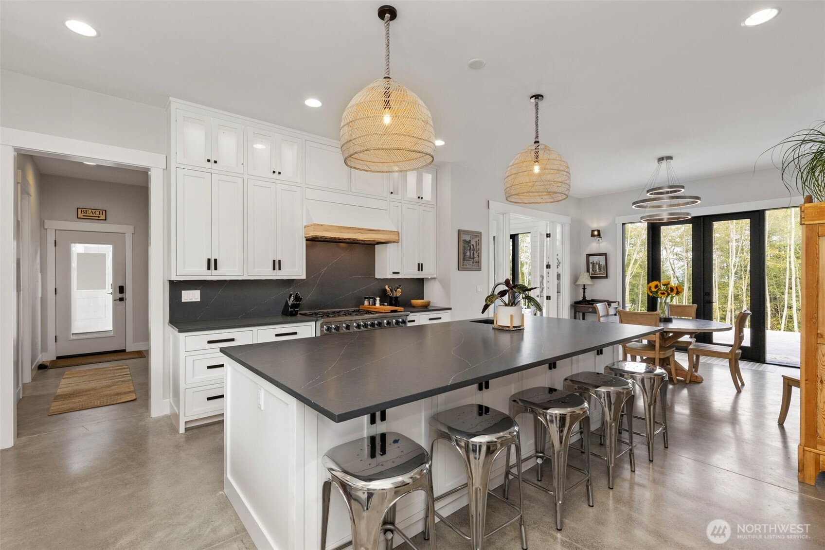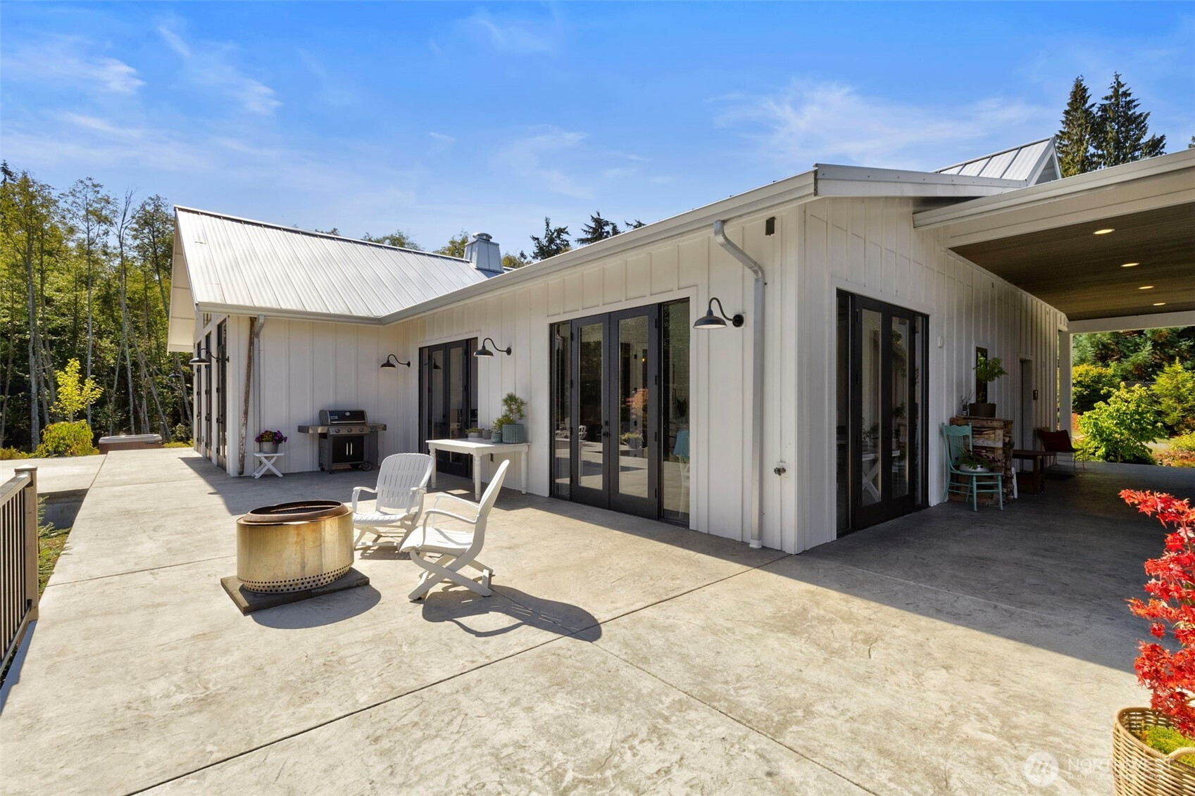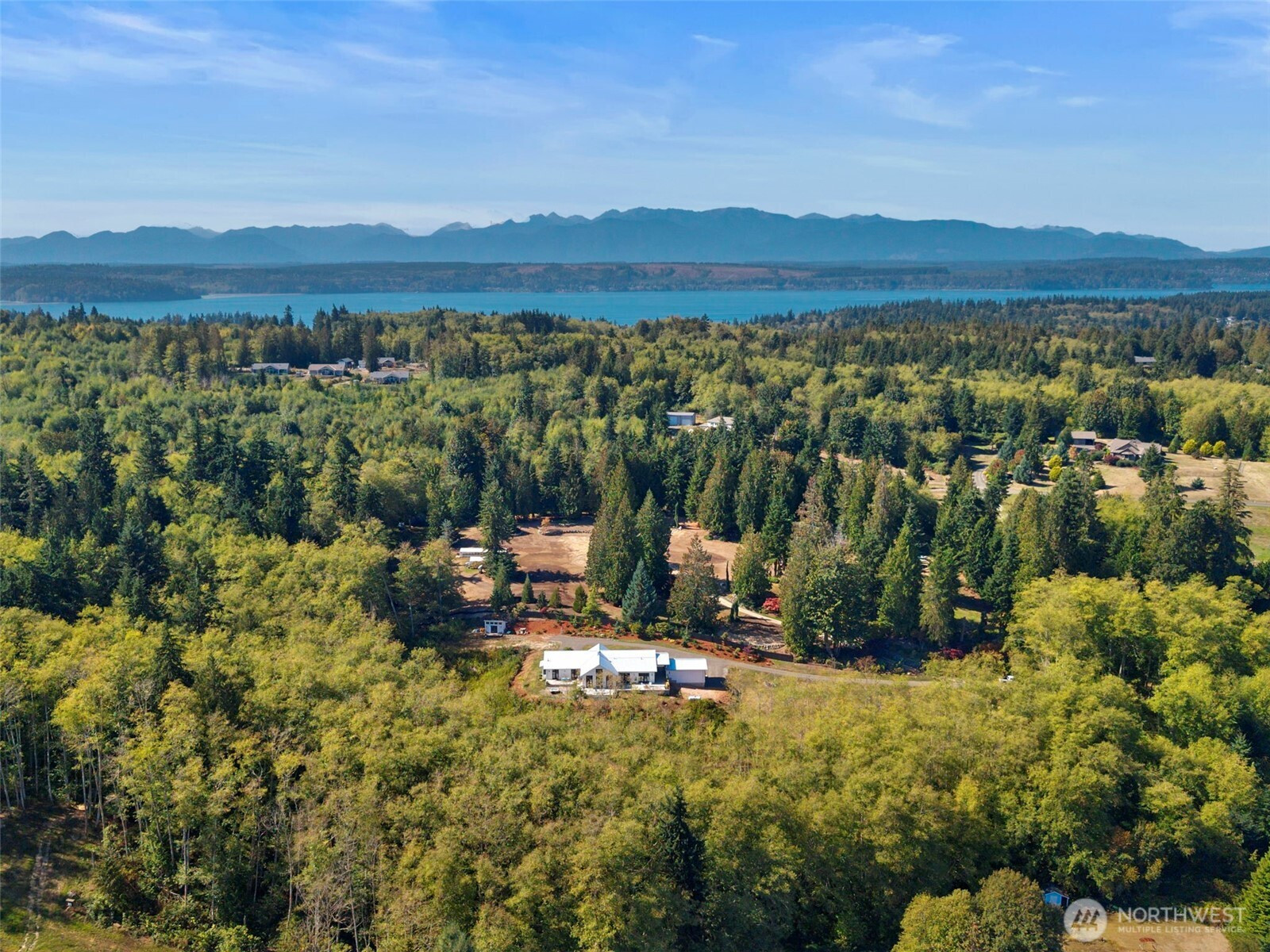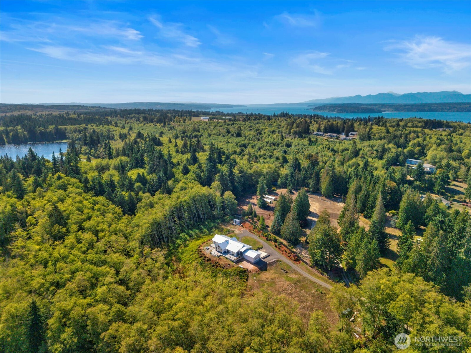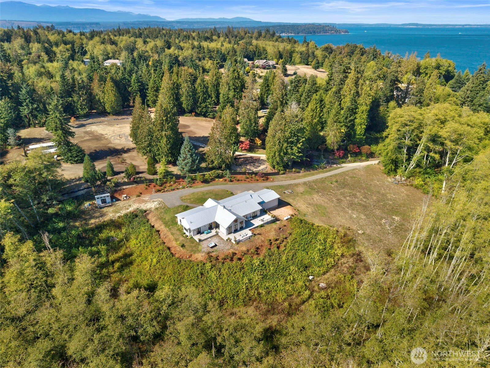 Experience modern farmhouse luxury on 4.73 private acres with breathtaking sunrises & sunsets. Stylish 3,168 sq ft custom home features board & batten siding, metal roof, Anderson windows, soaring 10’ ceilings, & concrete floors with radiant heat. Chef’s kitchen boasts Viking, Bosch, & Thermador appliances with large butler’s pantry. Retreat to the primary suite with deck access & spa-inspired 5 piece bath. Entertain on the 2,600 sq ft concrete deck with sweeping territorial & filtered water views. Family room, flexible office or bedroom, & oversized laundry enhance functionality. Detached garage, RV pad, & ADU-ready site complete this serene Hansville oasis near scenic beaches & trails, & Buck Lake. Under half an hour to town & ferries!