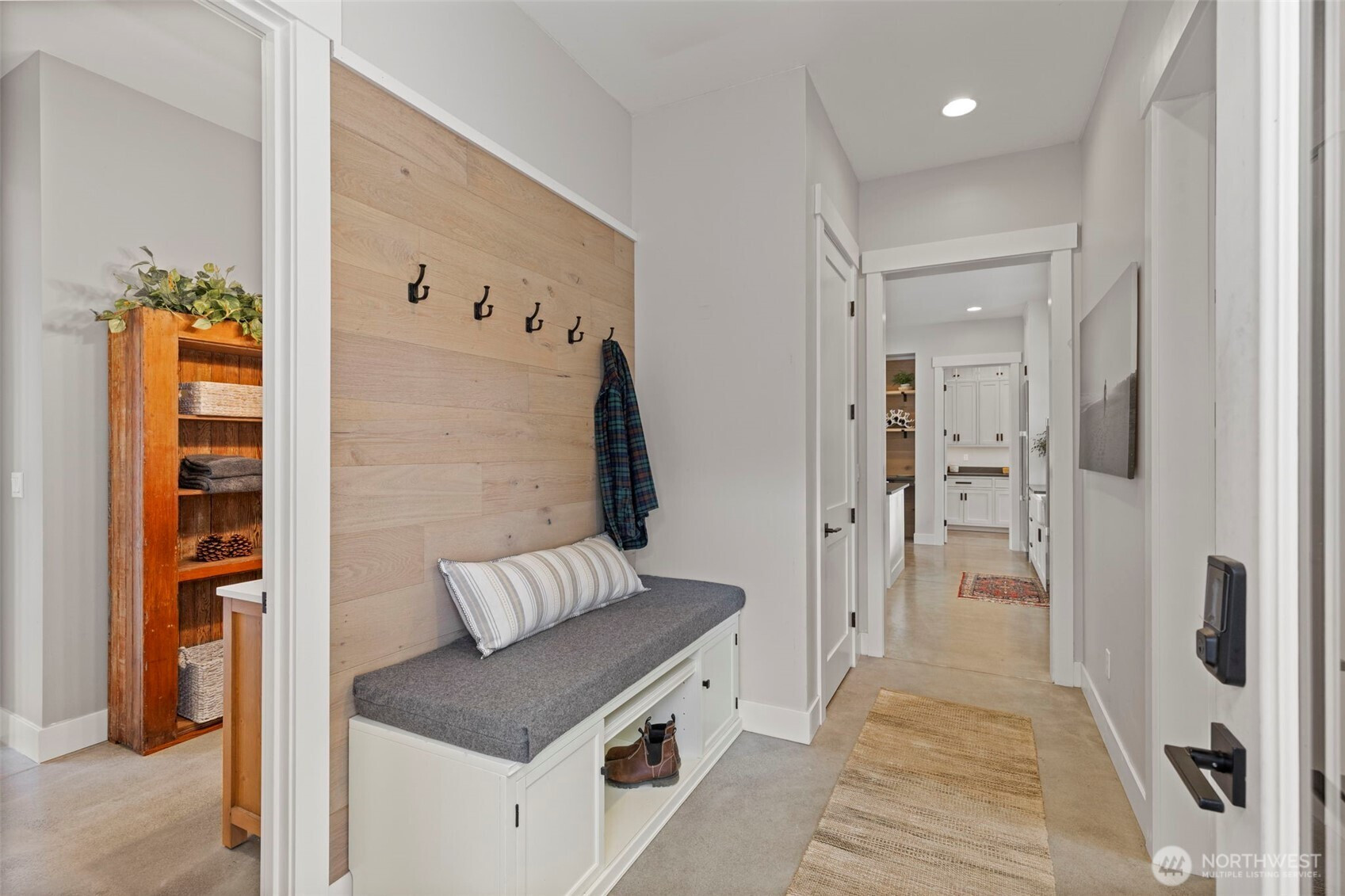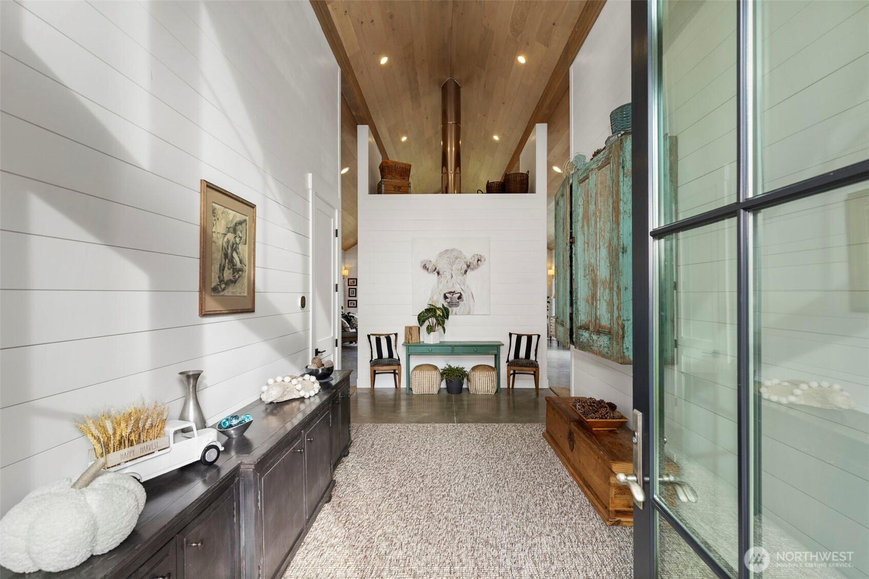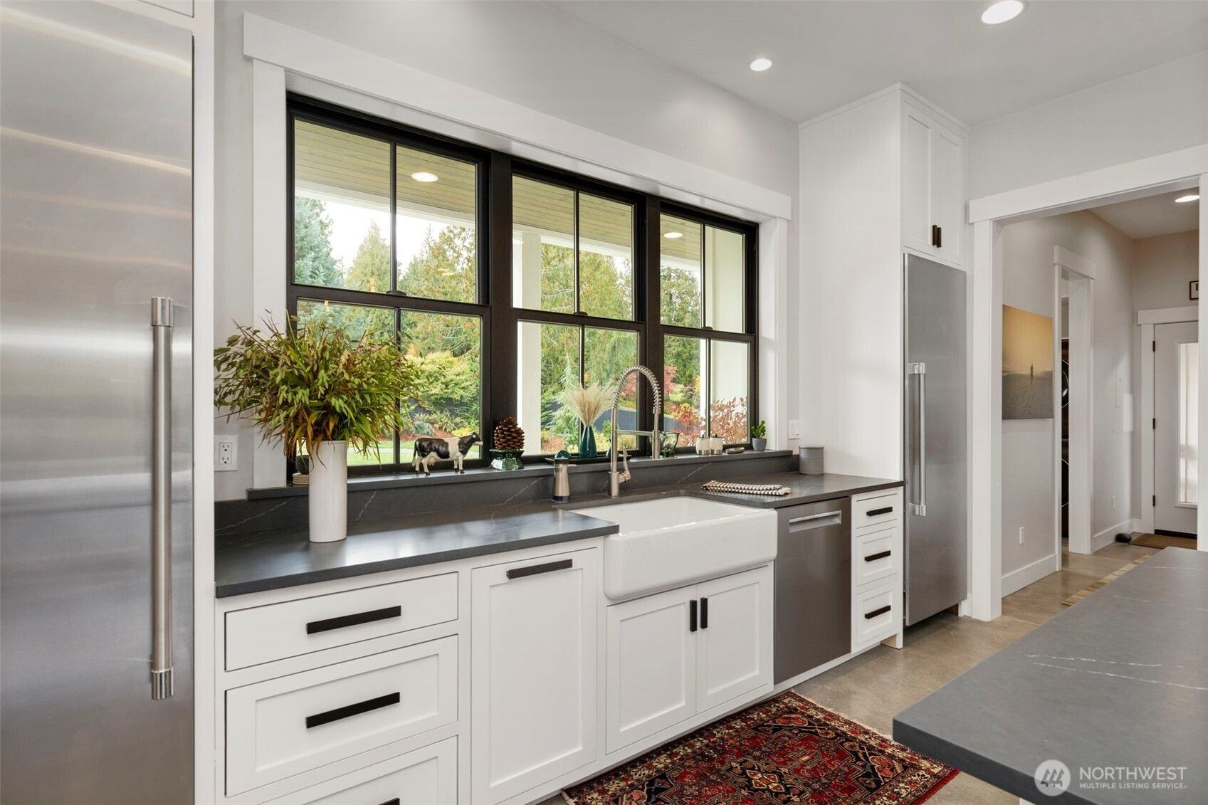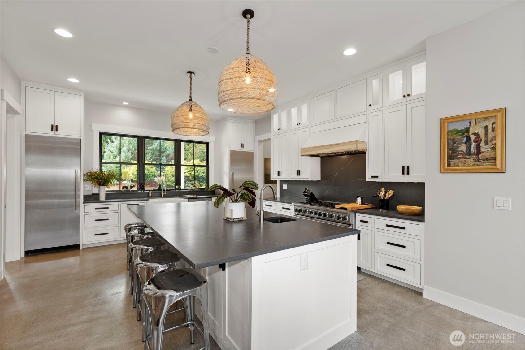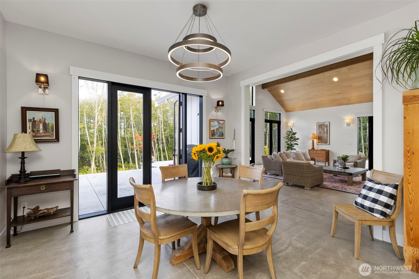 Experience modern farmhouse luxury on 4.73 private acres with breathtaking sunrises & sunsets. Stylish 3,168 sq ft custom home features board & batten siding, metal roof, Anderson windows, soaring 10’ ceilings, & concrete floors with radiant heat. Chef’s kitchen boasts Viking, Bosch, & Thermador appliances with large butler’s pantry. Retreat to the primary suite with deck access & spa-inspired 5 piece bath. Entertain on the 2,600 sq ft concrete deck with sweeping territorial & filtered water views. Family room, flexible office or bedroom, & oversized laundry enhance functionality. Detached garage, RV pad, & ADU-ready site complete this serene Hansville oasis near scenic beaches & trails, & Buck Lake. Under half an hour to town & ferries!