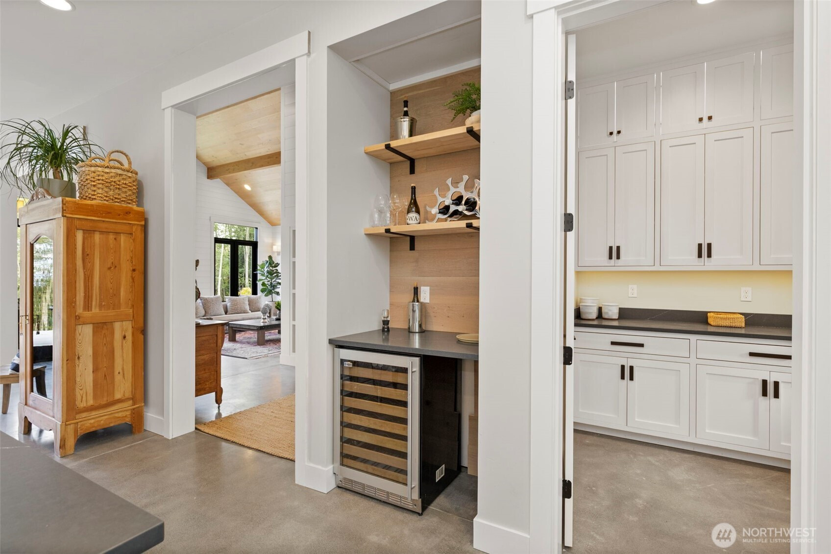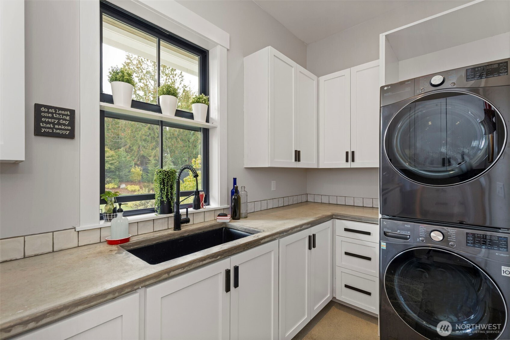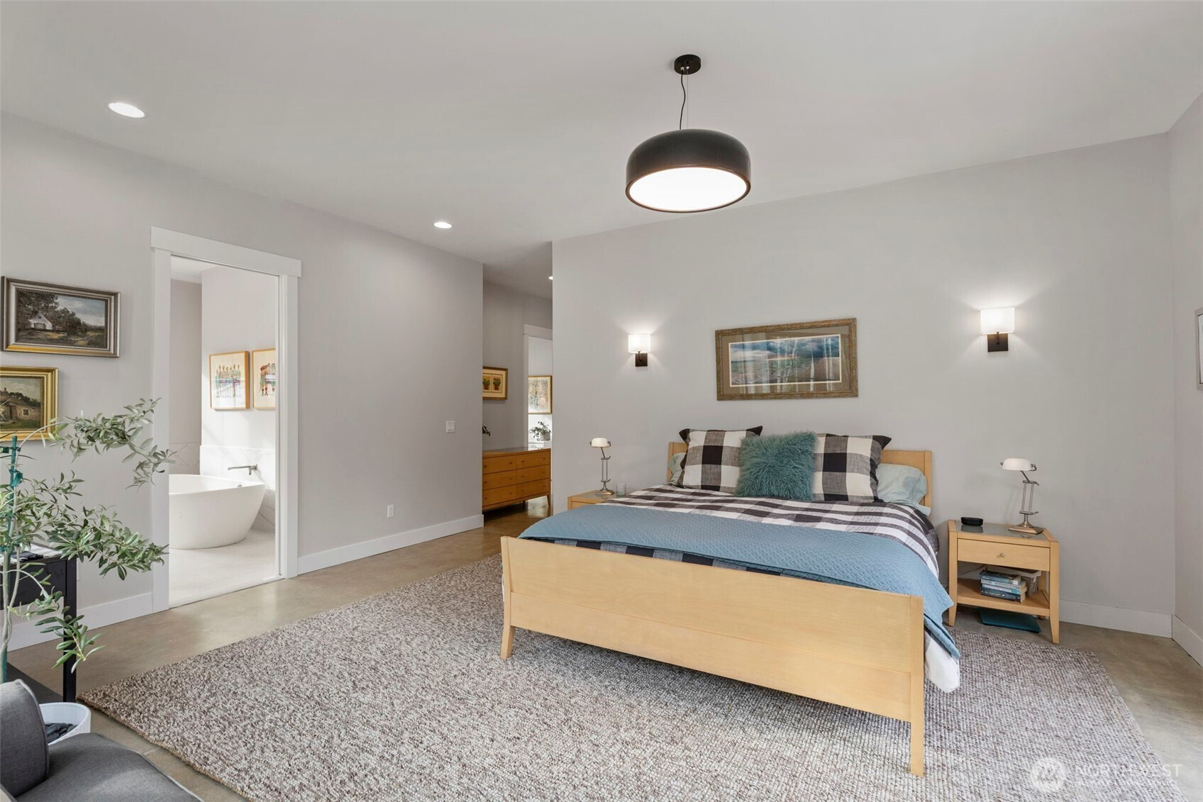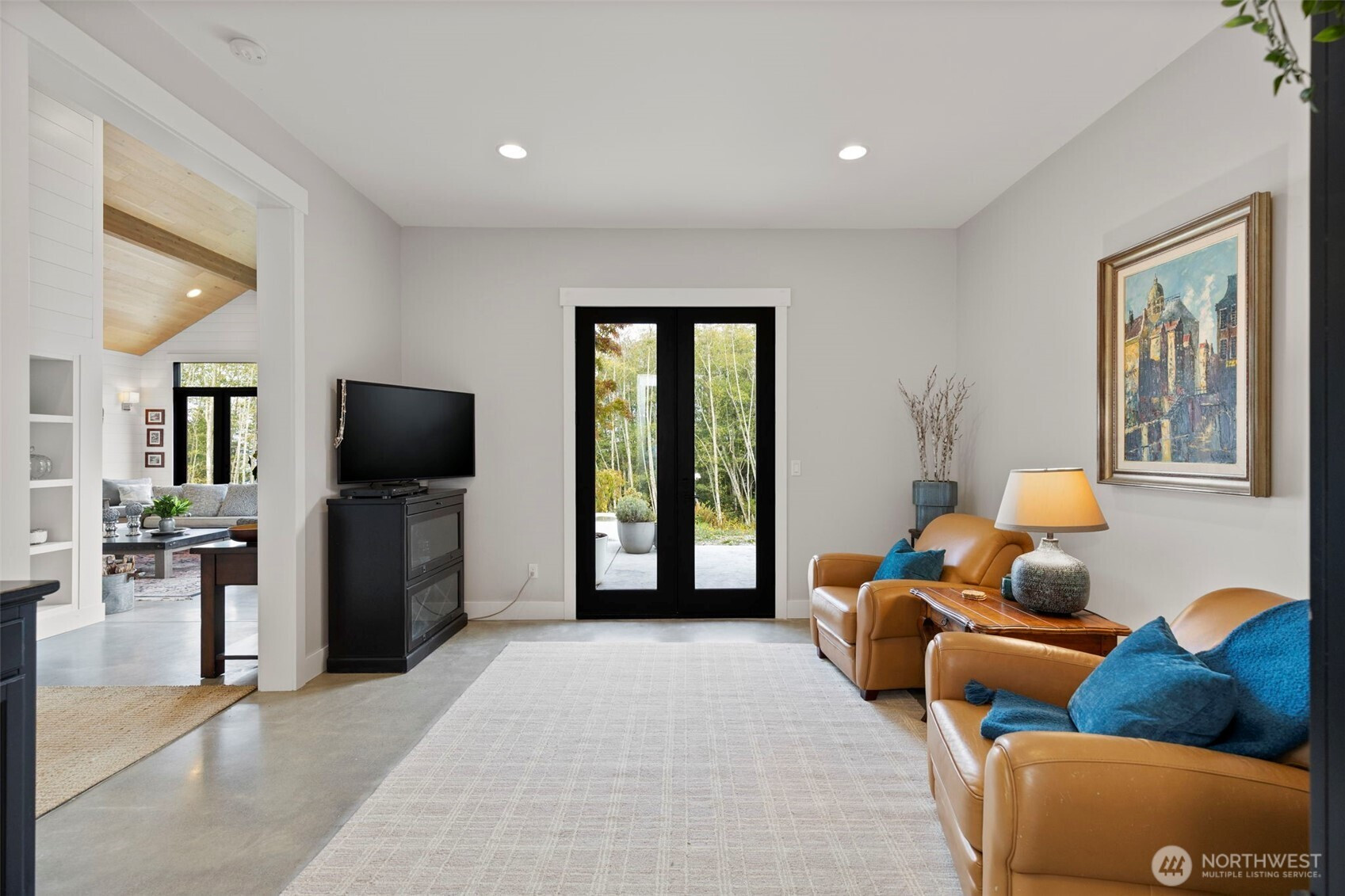 Experience modern farmhouse luxury on 4.73 private acres with breathtaking sunrises & sunsets. Stylish 3,168 sq ft custom home features board & batten siding, metal roof, Anderson windows, soaring 10’ ceilings, & concrete floors with radiant heat. Chef’s kitchen boasts Viking, Bosch, & Thermador appliances with large butler’s pantry. Retreat to the primary suite with deck access & spa-inspired 5 piece bath. Entertain on the 2,600 sq ft concrete deck with sweeping territorial & filtered water views. Family room, flexible office or bedroom, & oversized laundry enhance functionality. Detached garage, RV pad, & ADU-ready site complete this serene Hansville oasis near scenic beaches & trails, & Buck Lake. Under half an hour to town & ferries!