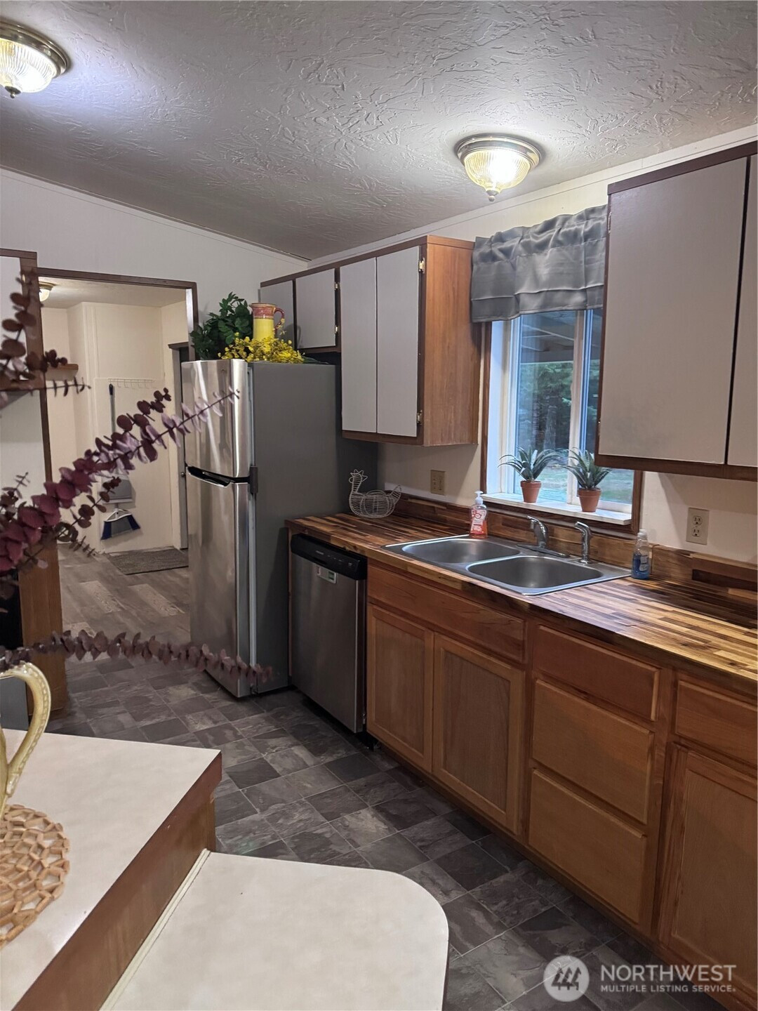 Well maintained 1990 double-wide manufactured home on 2.64 acres with 3 bedrooms and 2 full baths. The home features an open layout with a large living room a wood burning stove and dining area. The kitchen offers lots of counter and storage space. Off the kitchen is an oversized utility room suitable for laundry and pantry use. The primary bedroom includes a full bth, private water closet, and walk-in closet. Two additional bedrooms and a second full bath provide added living options. Exterior acreage offers space for a variety of uses, including garden, campfire site, and even a babbling creek with a 1986 detached general-purpose building with a 2-car garage and an upper area suitable with some fixen for lots of storage or future shop use