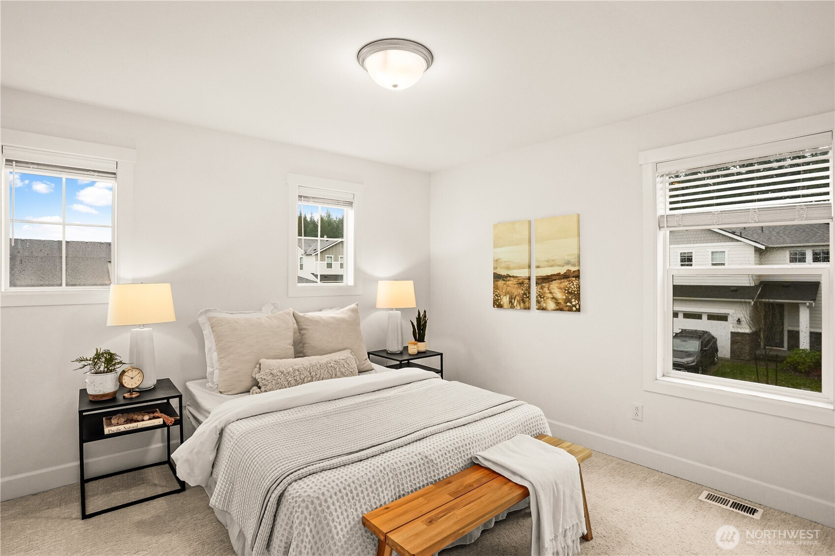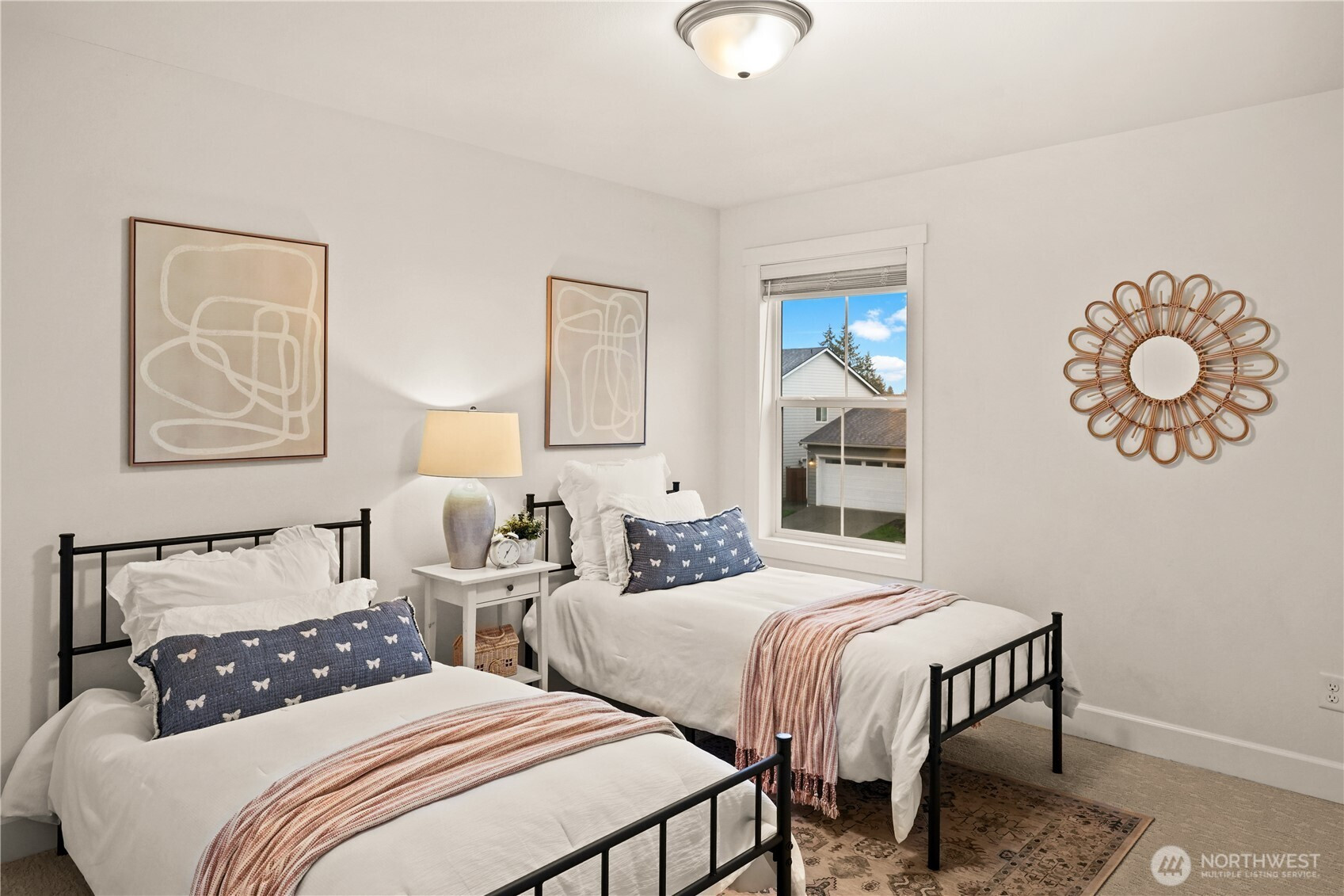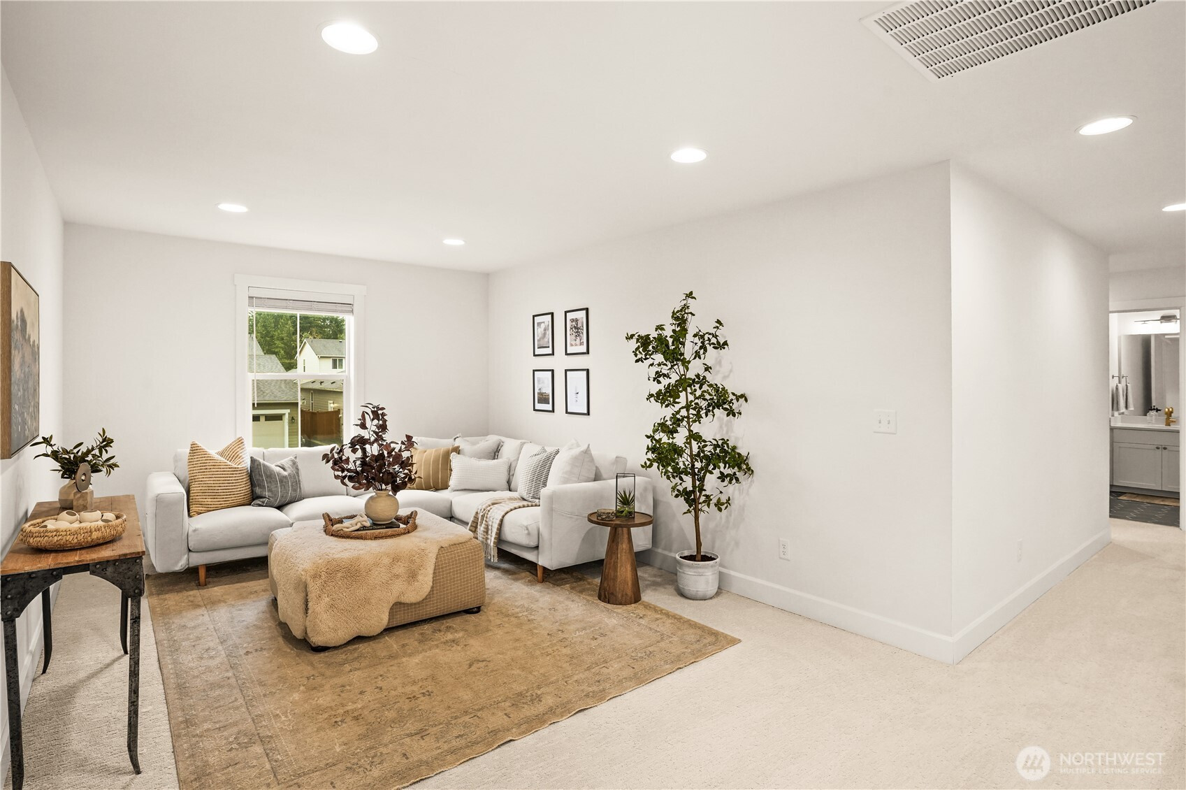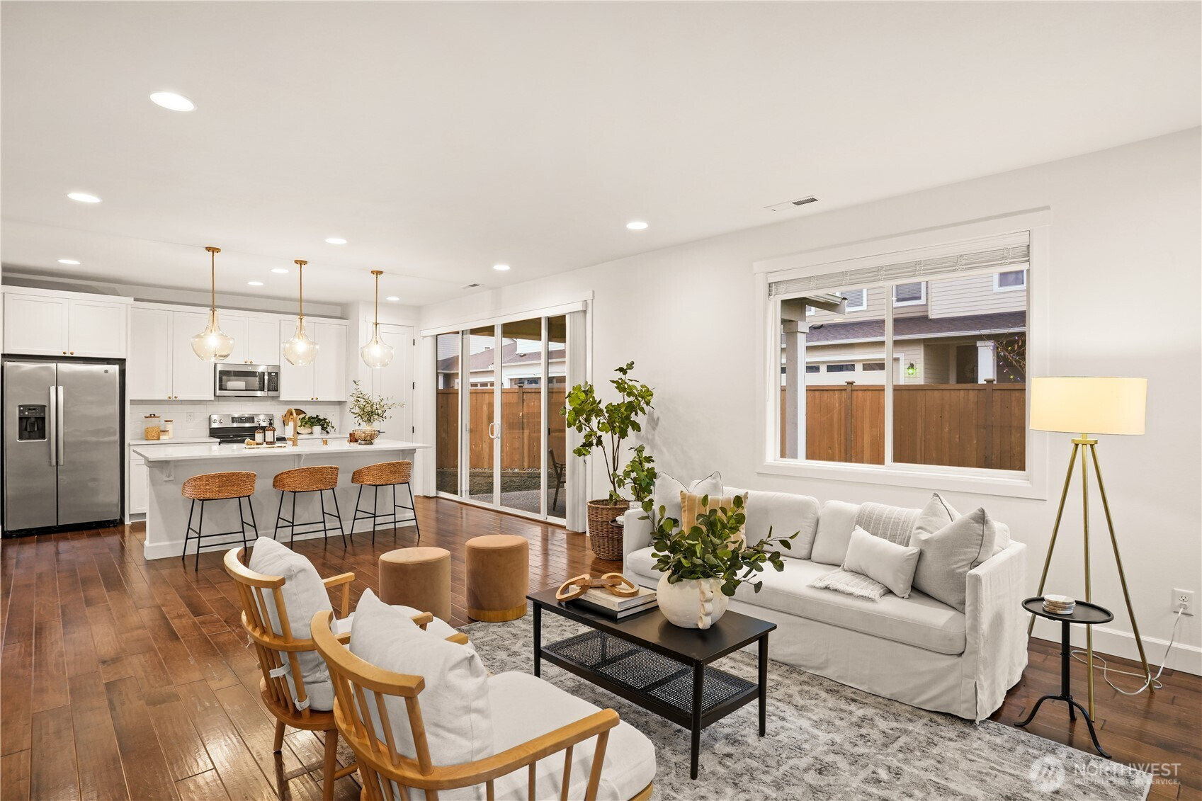 This masterfully built, nearly new home on an oversized corner lot is sure to impress. Enjoy spacious living with modern design and high-end finishes. The main floor offers a versatile bedroom for guests or office use, a full bath with a walk-in shower, and a well-appointed kitchen with SS appliances, quartz countertops, a large island, and double sliders to the covered patio. The open layout seamlessly connects the dining area, kitchen, and living room—ideal for entertaining. Upstairs features two additional bedrooms with a shared bath, a primary suite with luxe ensuite and large walk-in closet, a spacious tiled laundry room, and a generous family room or flex space. Don’t miss the 3-car garage with ample space for vehicles and storage.