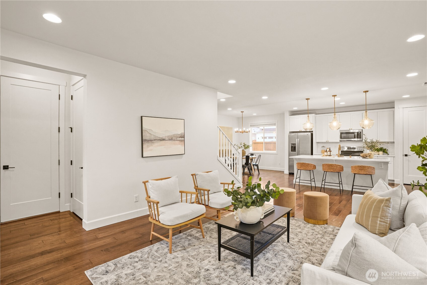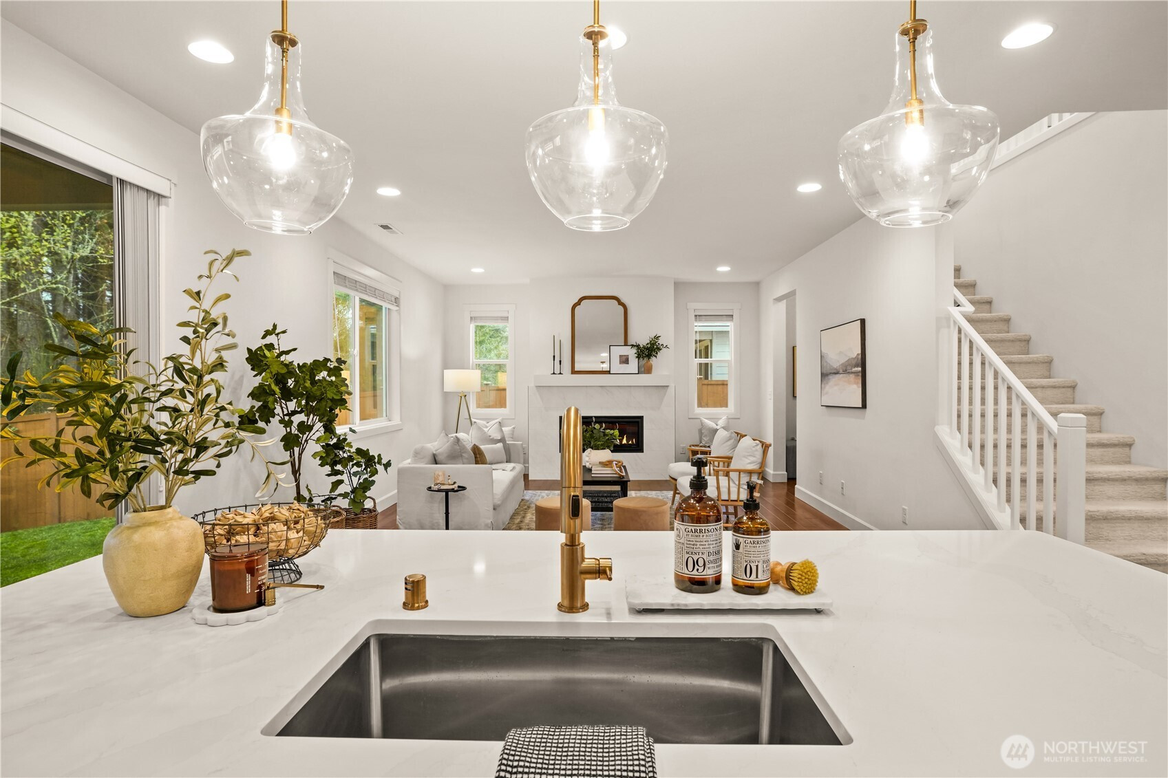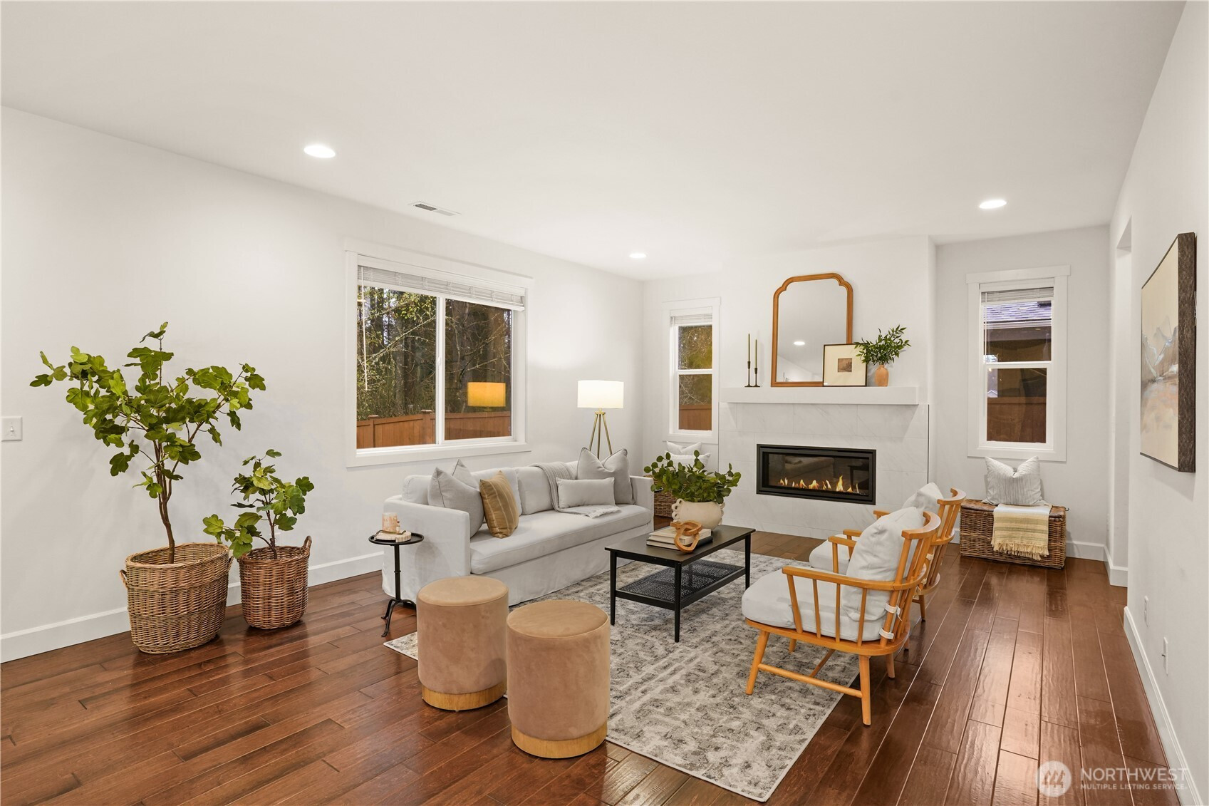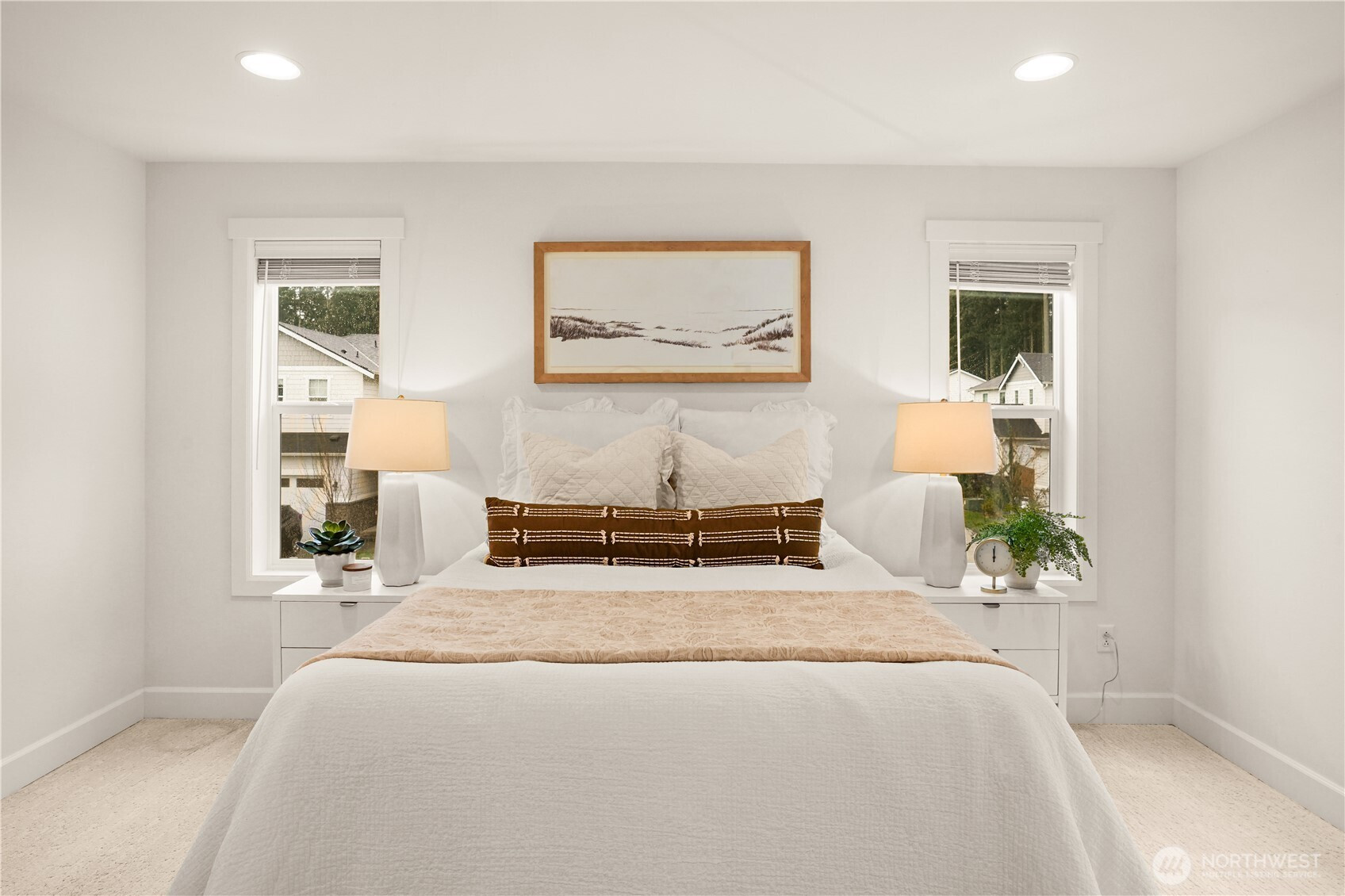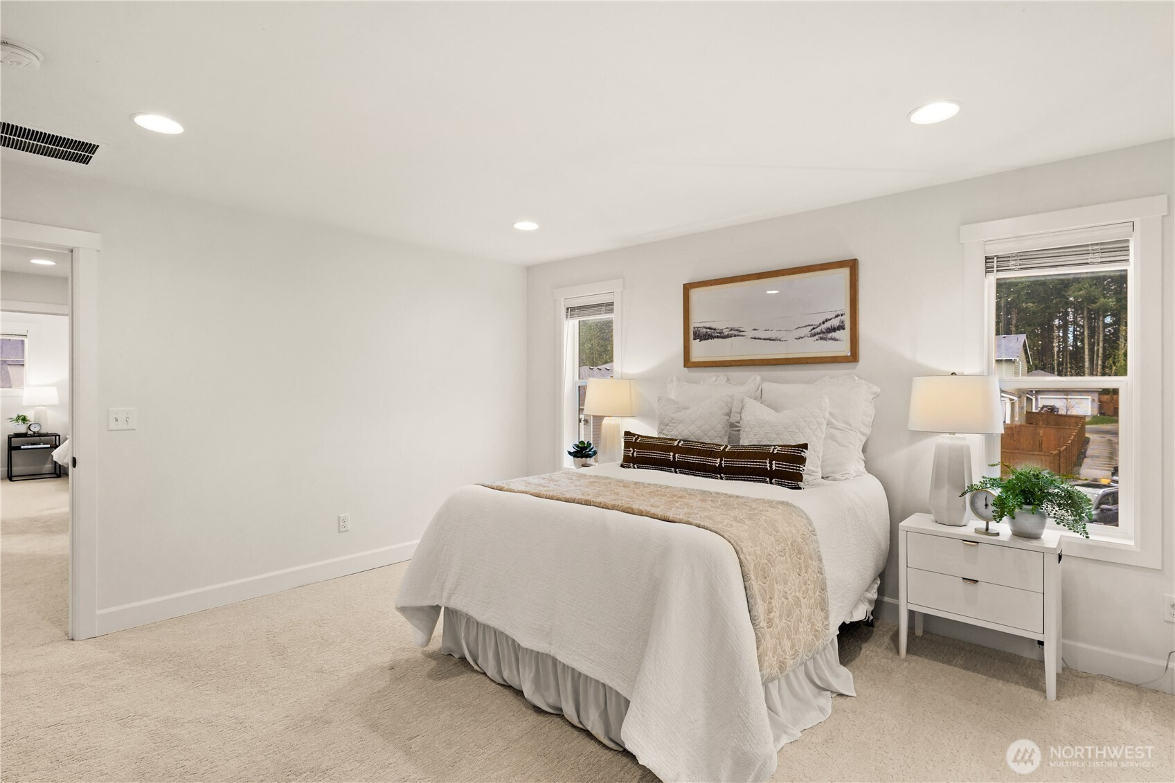 This masterfully built, nearly new home on an oversized corner lot is sure to impress. Enjoy spacious living with modern design and high-end finishes. The main floor offers a versatile bedroom for guests or office use, a full bath with a walk-in shower, and a well-appointed kitchen with SS appliances, quartz countertops, a large island, and double sliders to the covered patio. The open layout seamlessly connects the dining area, kitchen, and living room—ideal for entertaining. Upstairs features two additional bedrooms with a shared bath, a primary suite with luxe ensuite and large walk-in closet, a spacious tiled laundry room, and a generous family room or flex space. Don’t miss the 3-car garage with ample space for vehicles and storage.