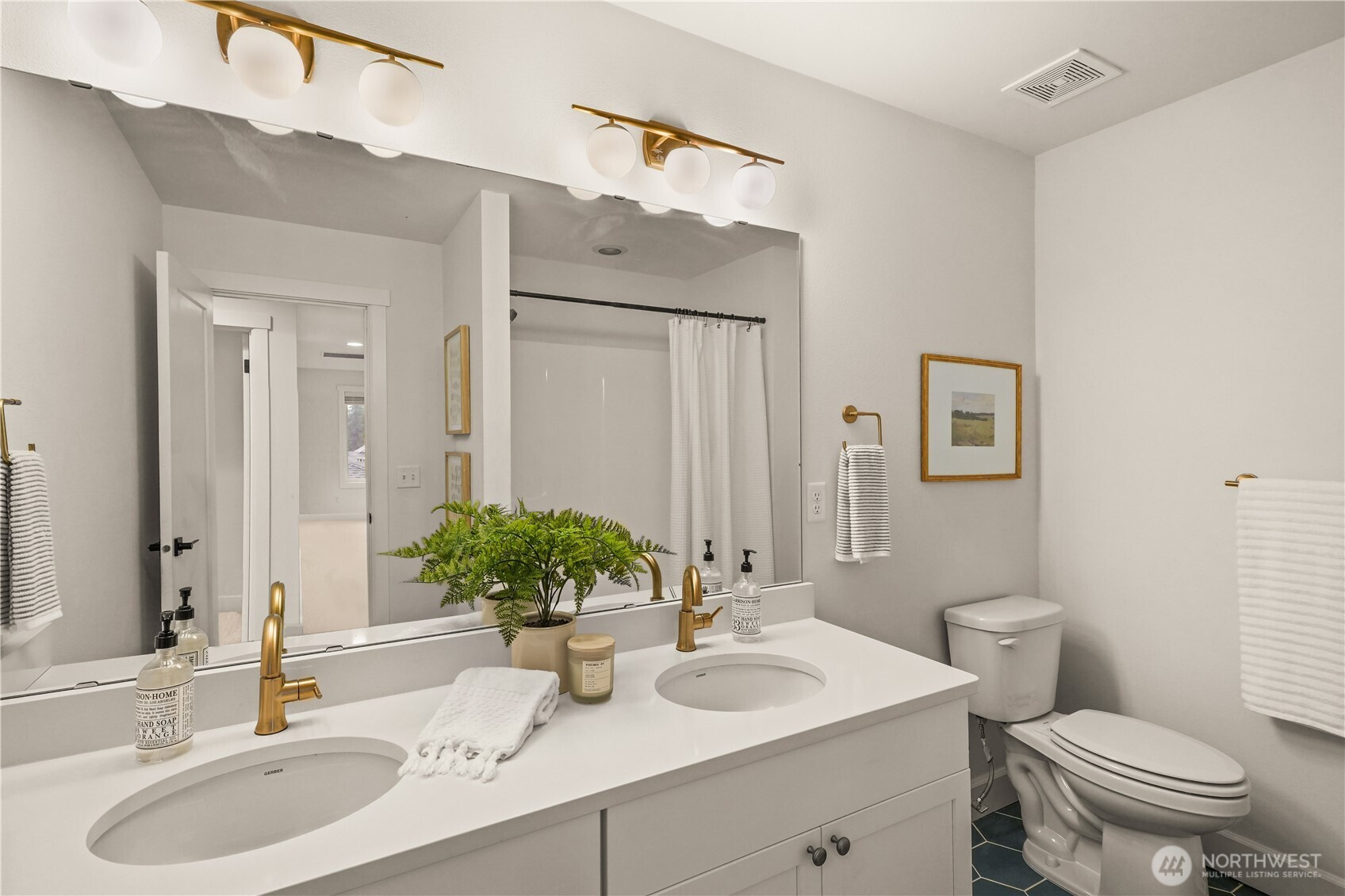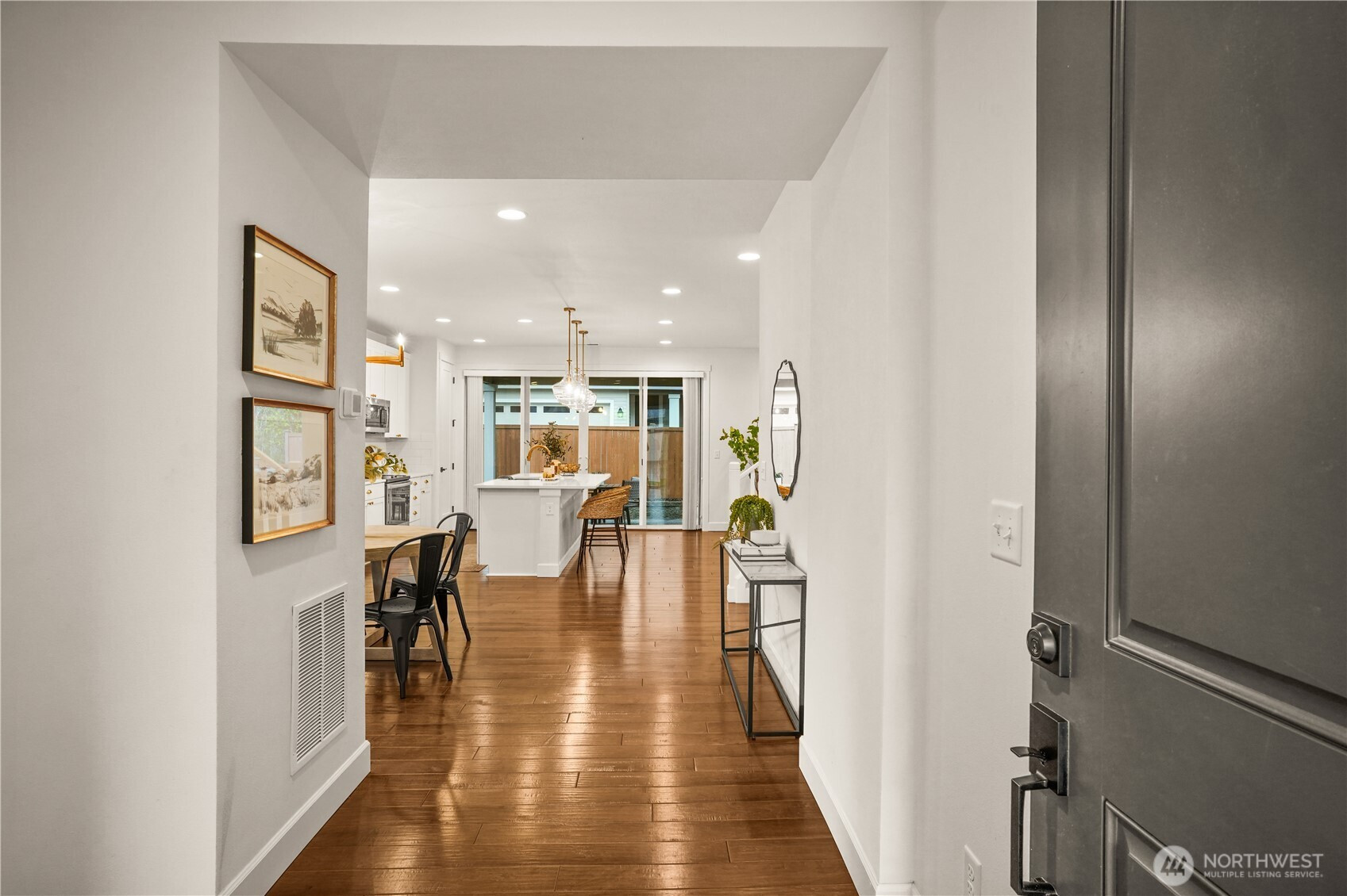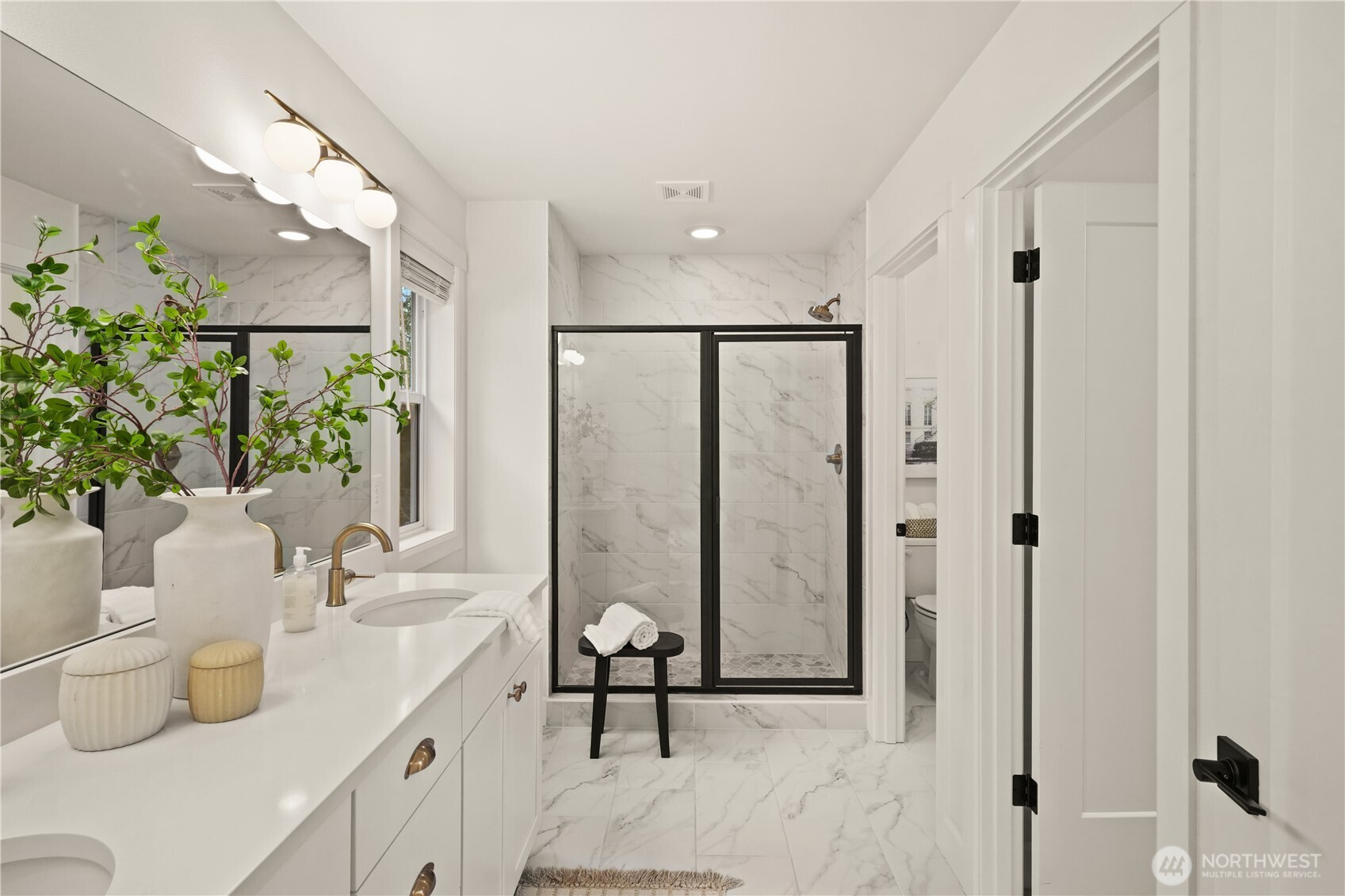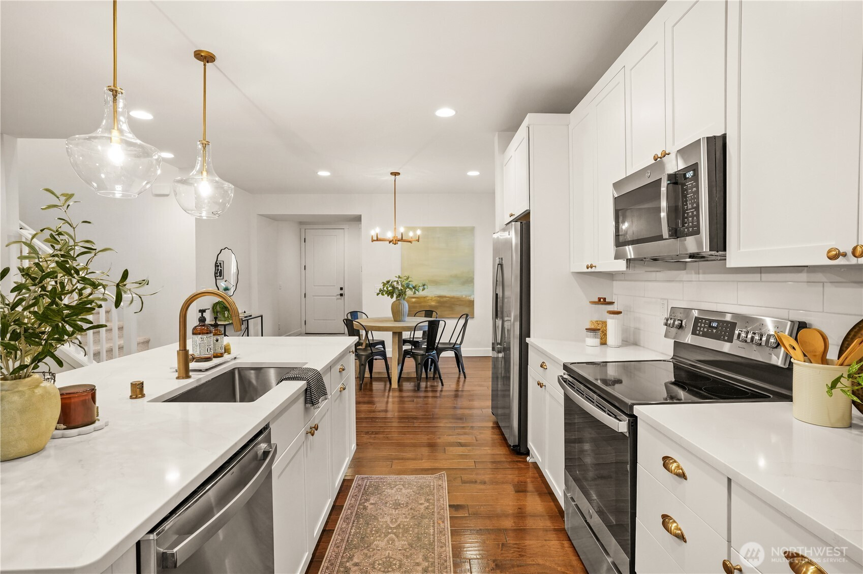 This masterfully built, nearly new home on an oversized corner lot is sure to impress. Enjoy spacious living with modern design and high-end finishes. The main floor offers a versatile bedroom for guests or office use, a full bath with a walk-in shower, and a well-appointed kitchen with SS appliances, quartz countertops, a large island, and double sliders to the covered patio. The open layout seamlessly connects the dining area, kitchen, and living room—ideal for entertaining. Upstairs features two additional bedrooms with a shared bath, a primary suite with luxe ensuite and large walk-in closet, a spacious tiled laundry room, and a generous family room or flex space. Don’t miss the 3-car garage with ample space for vehicles and storage.