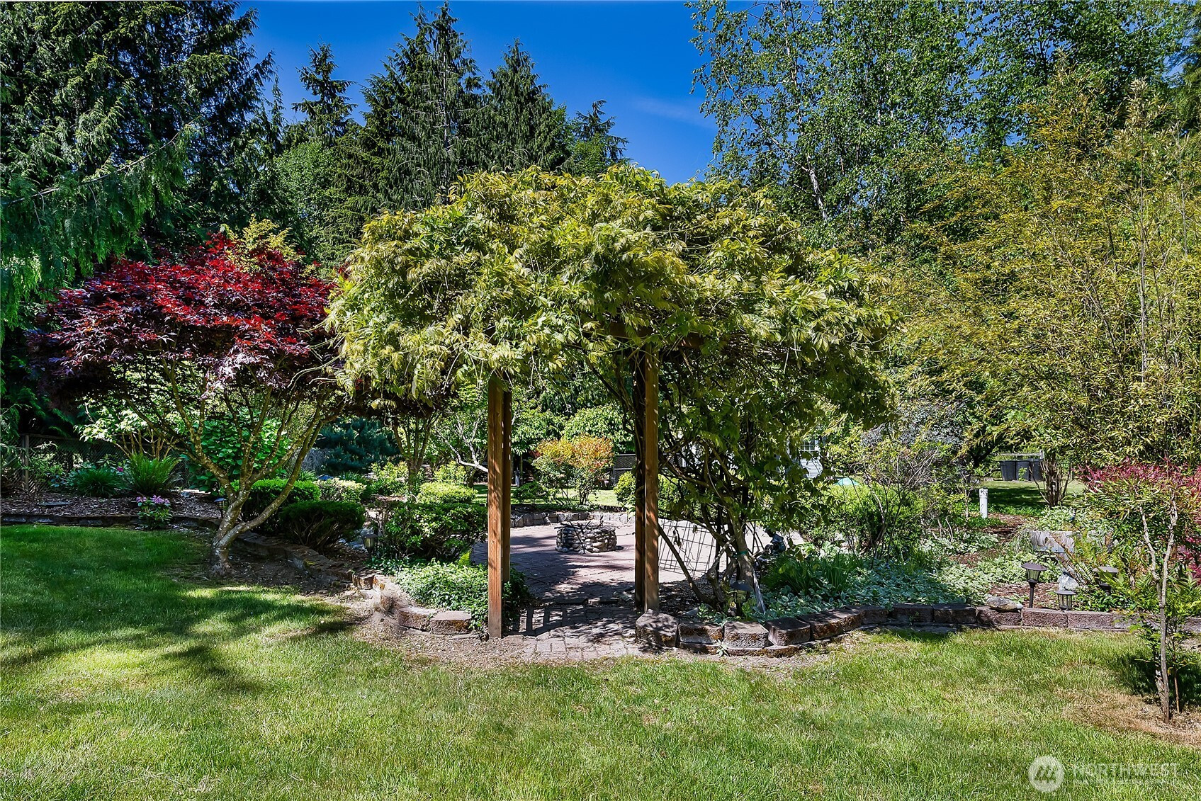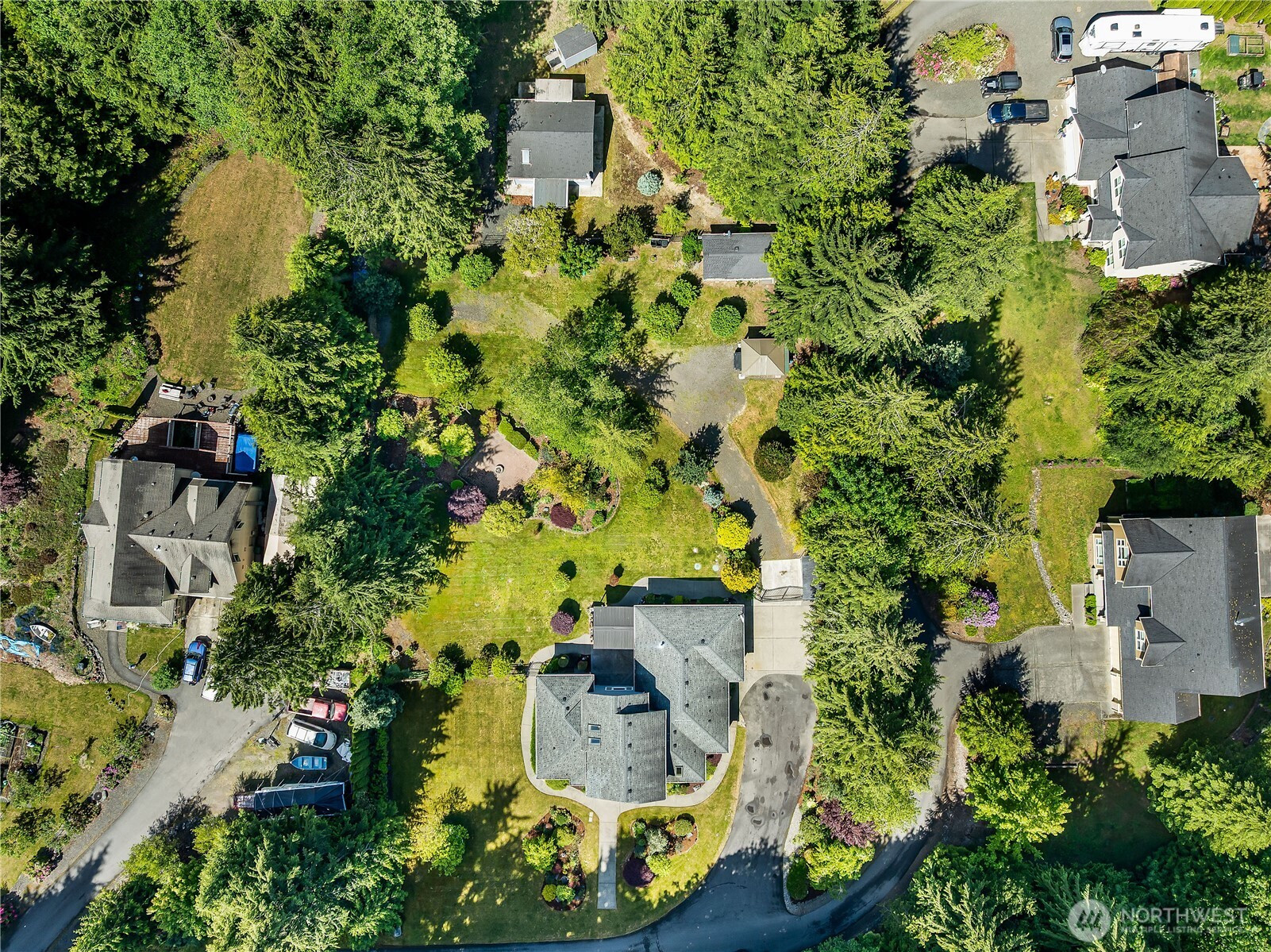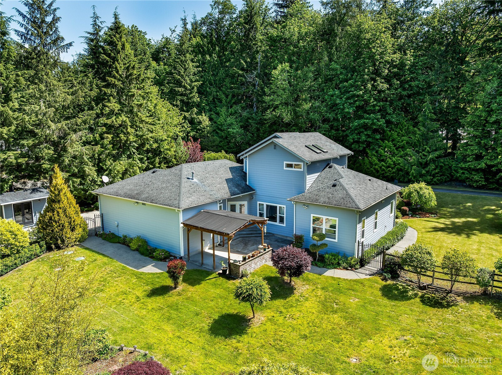 Discover the finest in Pacific Northwest living at the end of a peaceful cul de sac opening to a private retreat across nearly two and a half acres. This fully updated estate offers a sophisticated blend of luxury and flexibility featuring a refined main residence and a detached guesthouse. The interior is designed with care featuring crisp paint, rich wood and custom tile flooring plus granite countertops throughout the thoughtful layout. For the hobbyist or professional a finished and heated studio provides a versatile escape for a home gym art studio or quiet executive office. Beyond the main house the guesthouse stands as a turnkey opportunity for multigenerational living or a high end rental featuring its own secluded yard private patios independent air conditioning and a new septic system. The grounds are a nature lover's paradise filled with mature fruit trees and garden paths that wind through the lush landscape. Entertainers will delight in the magnificent backyard which features a custom tiled fire pit and a picturesque gazebo offering the perfect backdrop for summer gatherings or evenings under the stars. Positioned just minutes from downtown Silverdale major military bases and ferries this property offers a secluded forest haven with unmatched access to local amenities. This is a rare chance to own a versatile park like compound that captures the timeless spirit of the Sound and provides the space you need to grow and thrive in a truly beautiful and unique setting