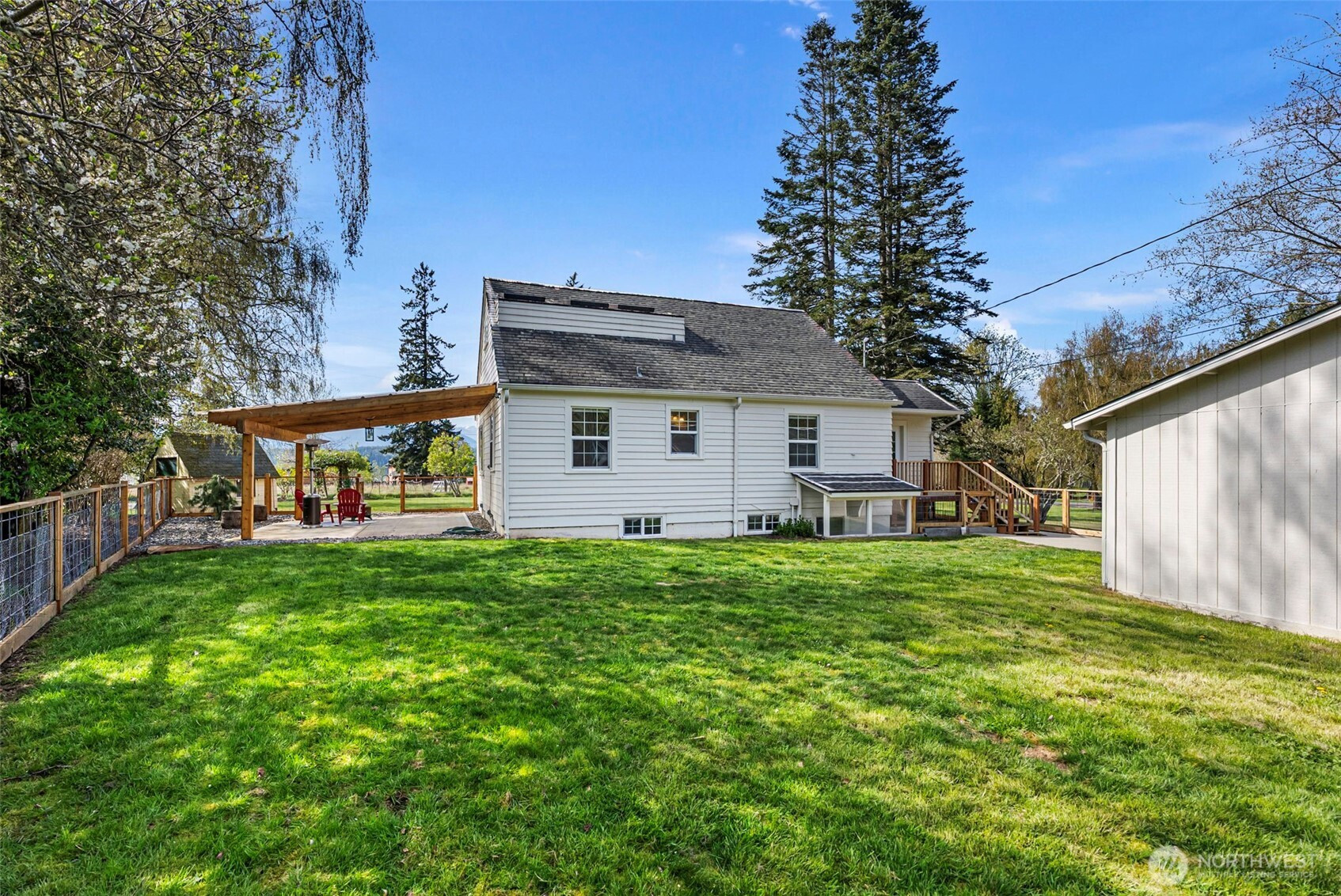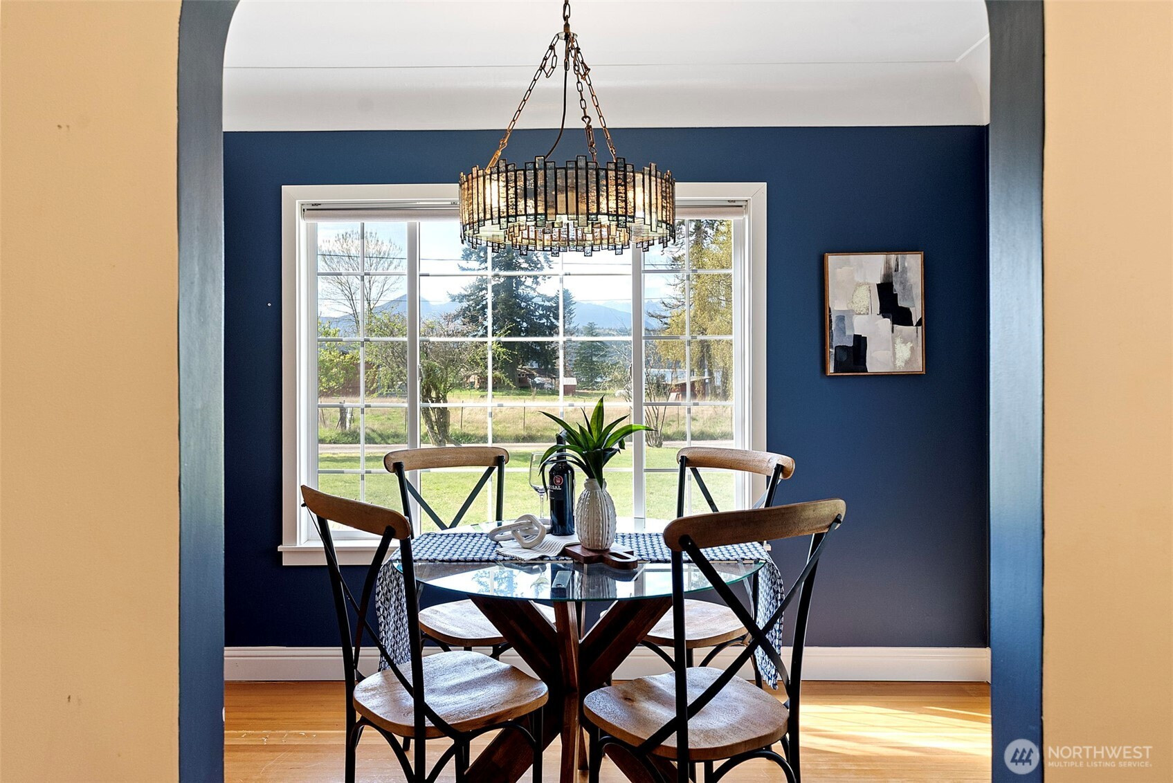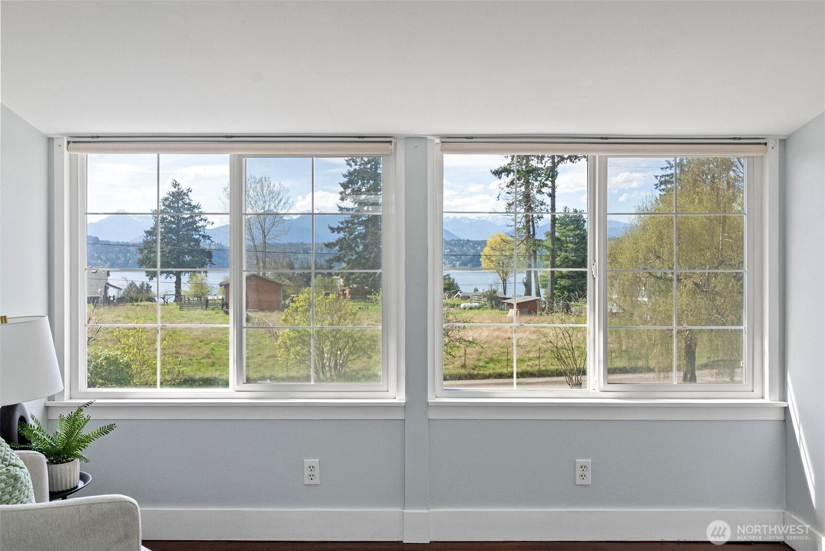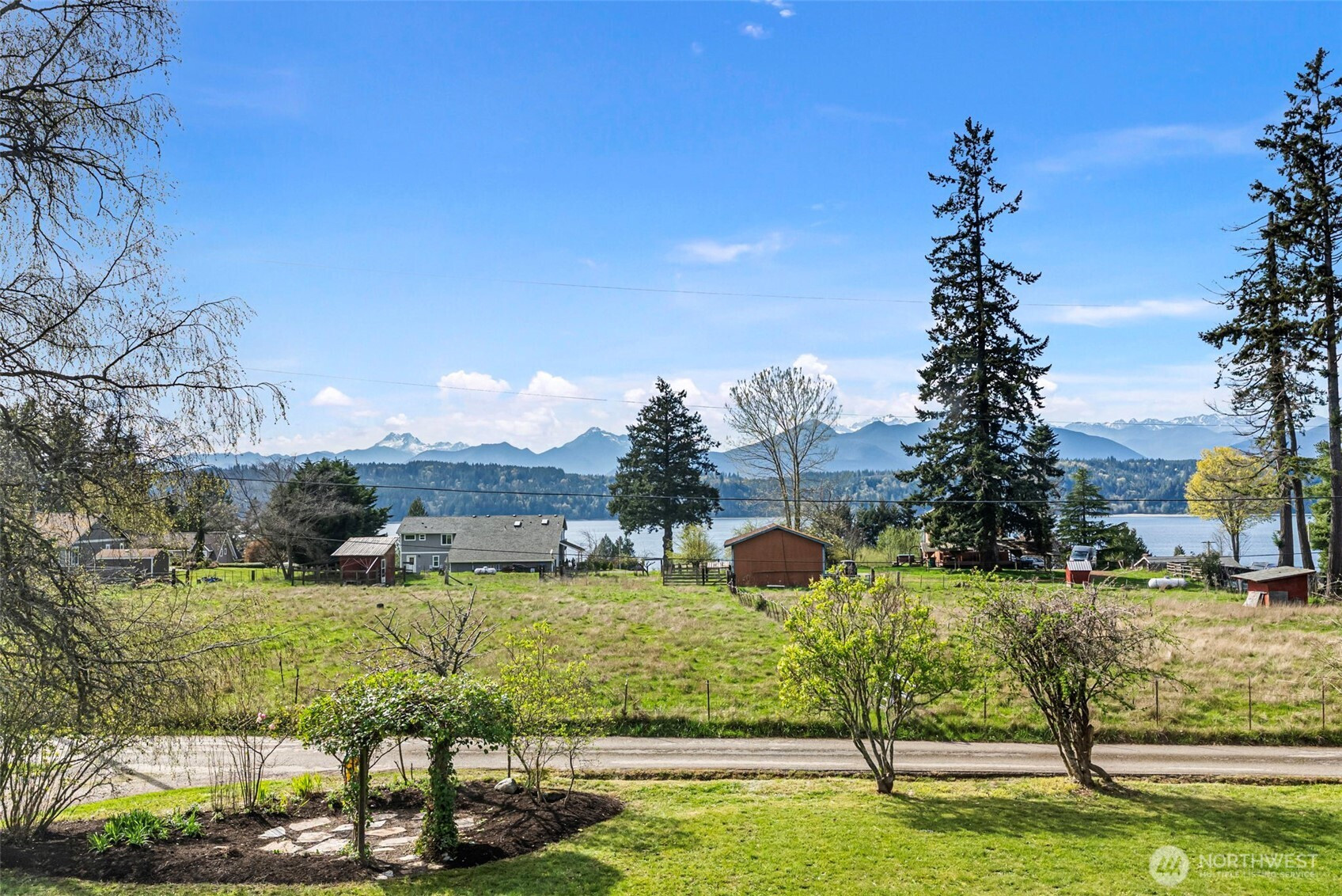 Charming, fully updated farmhouse set on just shy of two acres with sweeping Hood Canal and mountain views. This 3-bedroom, 1.75-bath home blends classic character with refined, high-end finishes throughout. The gourmet kitchen features custom cabinetry, Bertazzoni appliances, and quartz countertops, opening to warm living spaces with beautifully restored fir floors. Thoughtful updates continue with a redesigned mudroom/laundry, fresh interior paint, wainscoting, and curated lighting. Upstairs, the spacious primary suite is filled with natural light, featuring skylights and serene water and mountain views. An additional bonus room—previously a nursery—offers flexible space ideal for a home office, playroom, or creative retreat. Major system upgrades include updated electrical with EV charger (Tesla compatible), new heat pump with mini-split, and extensive plumbing improvements. Outdoor living is equally impressive with newly rebuilt cedar porches and decks, a concrete patio with pergola, and a fully fenced cedar yard offering privacy and space to roam. The property also includes an RV hookup and enhanced drainage and site improvements. A rare combination of acreage, quality craftsmanship, incredible location with privacy and captivating views..this property offers a peaceful setting without compromising on comfort or style!