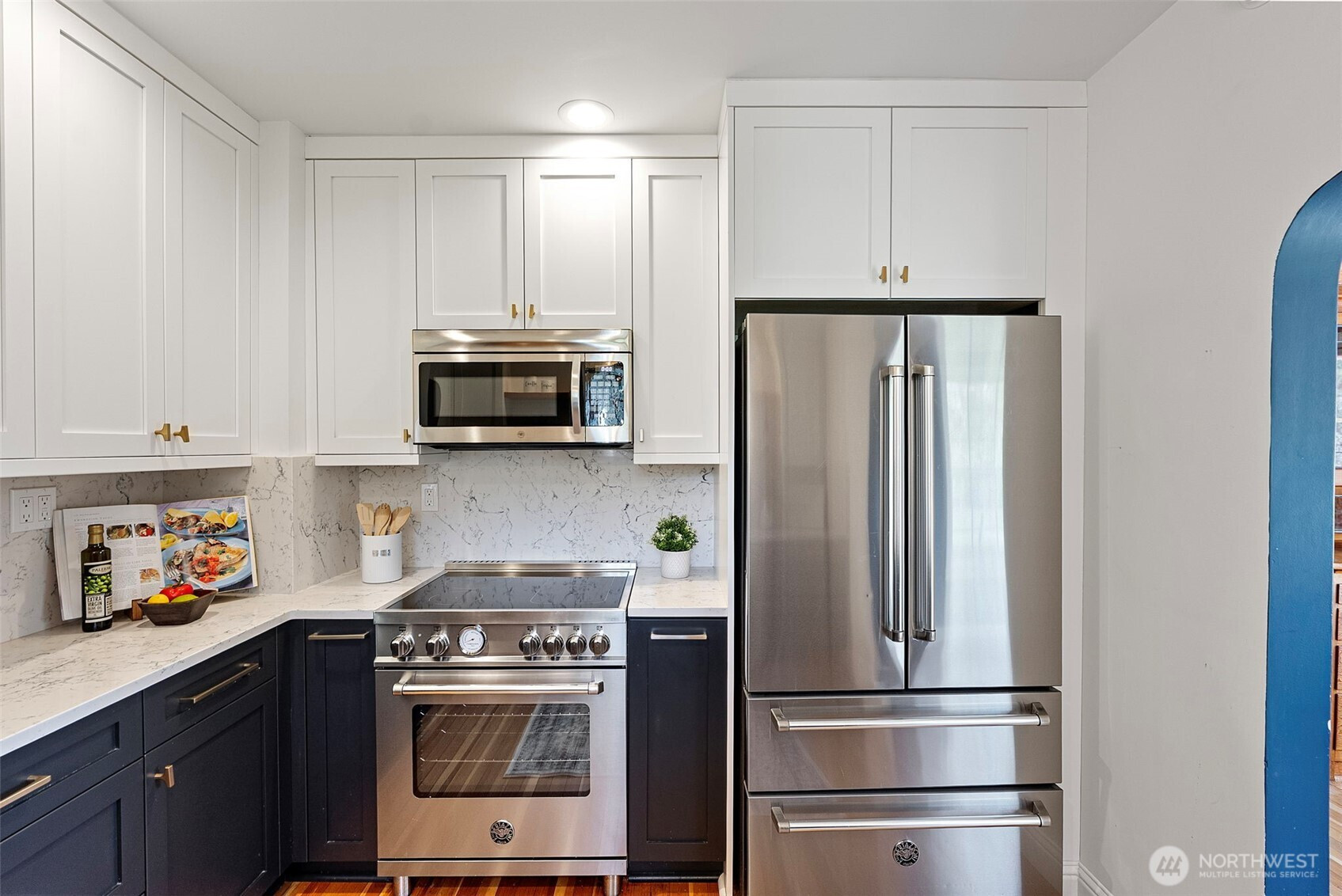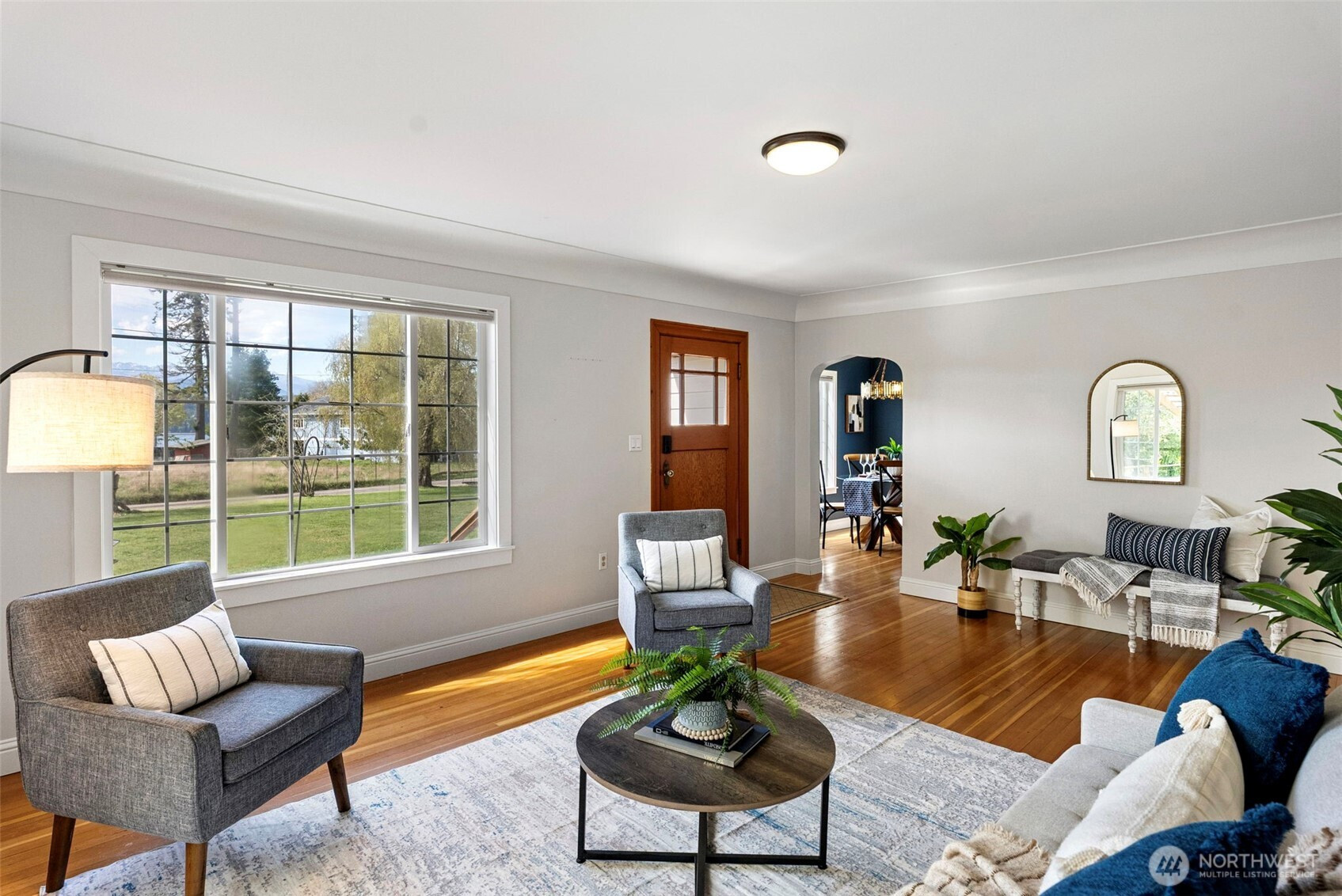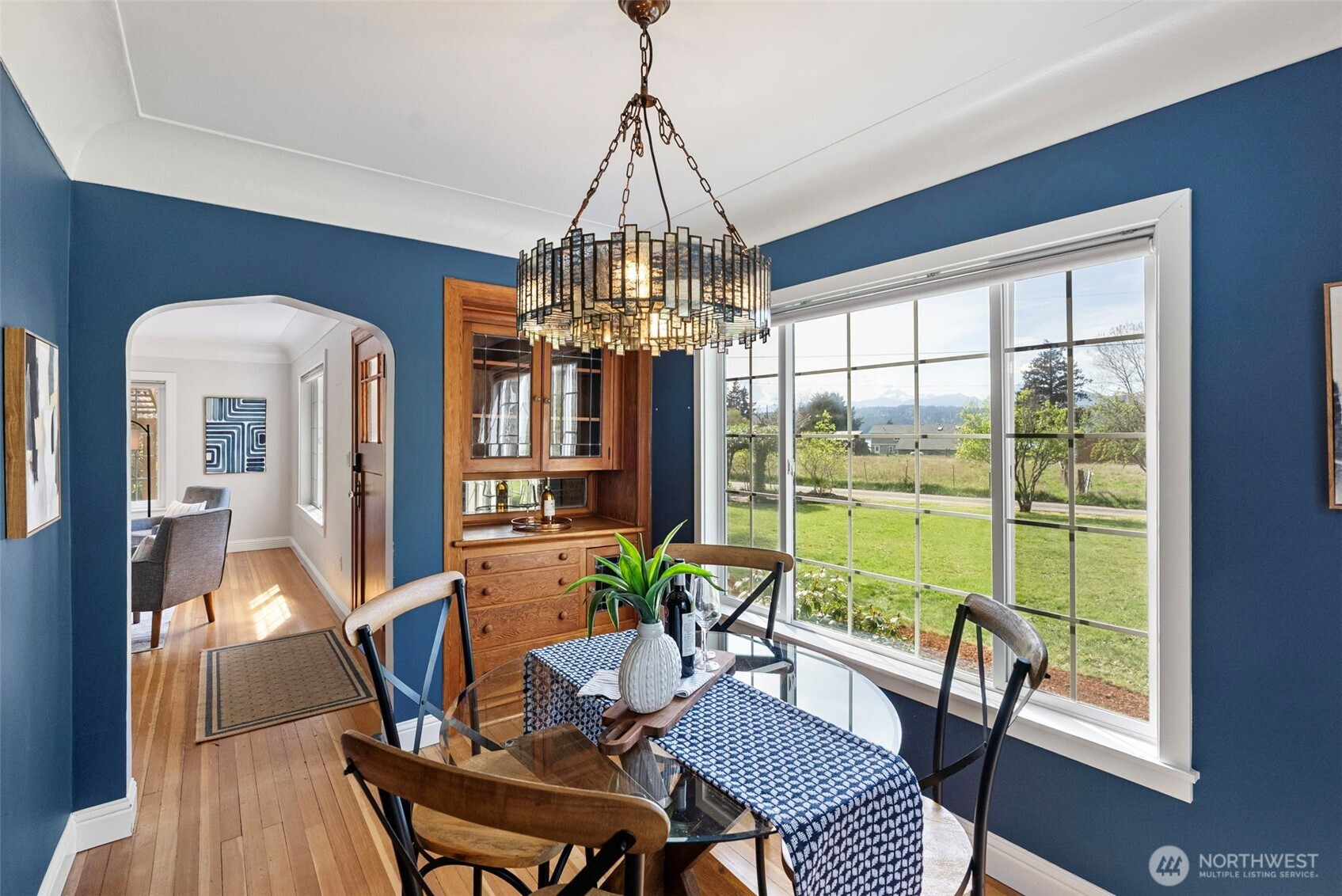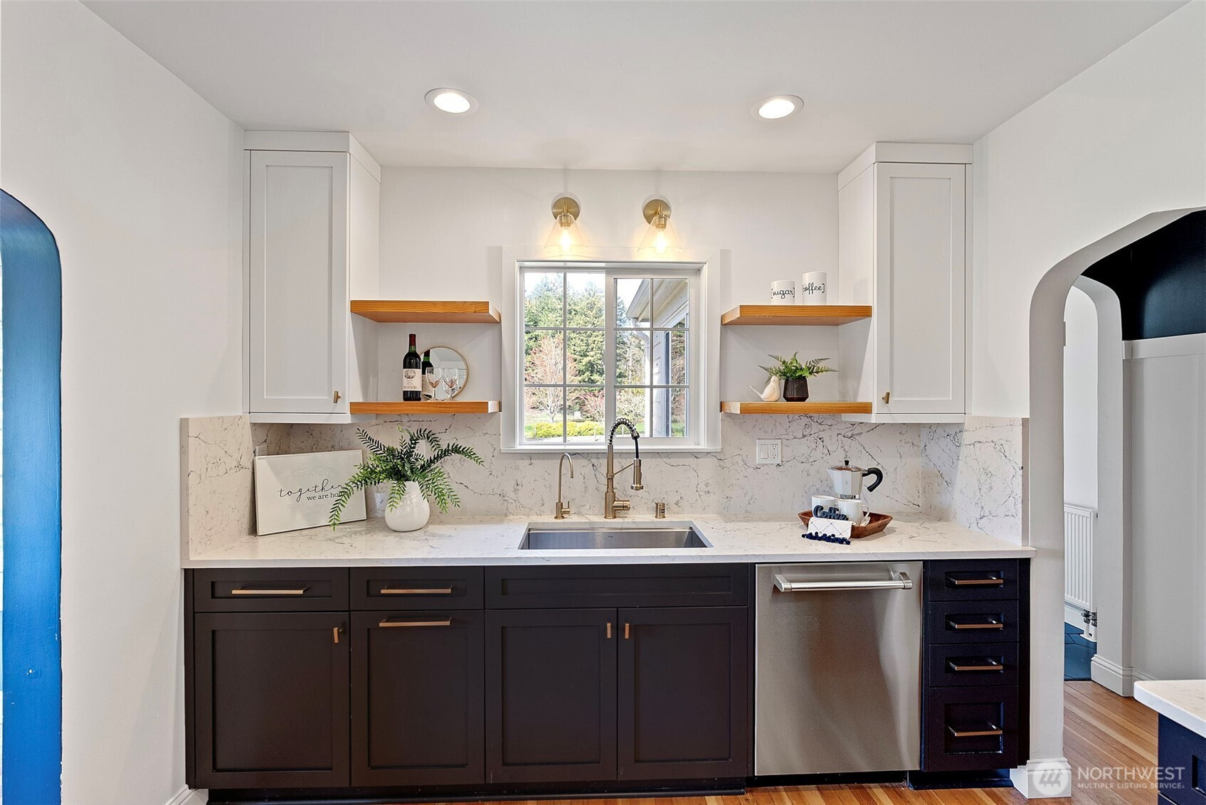 Charming, fully updated farmhouse set on just shy of two acres with sweeping Hood Canal and mountain views. This 3-bedroom, 1.75-bath home blends classic character with refined, high-end finishes throughout. The gourmet kitchen features custom cabinetry, Bertazzoni appliances, and quartz countertops, opening to warm living spaces with beautifully restored fir floors. Thoughtful updates continue with a redesigned mudroom/laundry, fresh interior paint, wainscoting, and curated lighting. Upstairs, the spacious primary suite is filled with natural light, featuring skylights and serene water and mountain views. An additional bonus room—previously a nursery—offers flexible space ideal for a home office, playroom, or creative retreat. Major system upgrades include updated electrical with EV charger (Tesla compatible), new heat pump with mini-split, and extensive plumbing improvements. Outdoor living is equally impressive with newly rebuilt cedar porches and decks, a concrete patio with pergola, and a fully fenced cedar yard offering privacy and space to roam. The property also includes an RV hookup and enhanced drainage and site improvements. A rare combination of acreage, quality craftsmanship, incredible location with privacy and captivating views..this property offers a peaceful setting without compromising on comfort or style!