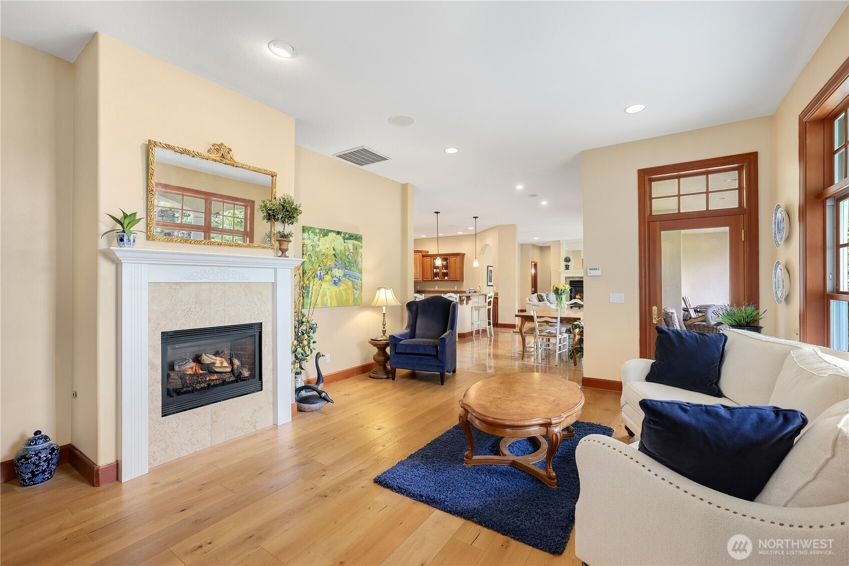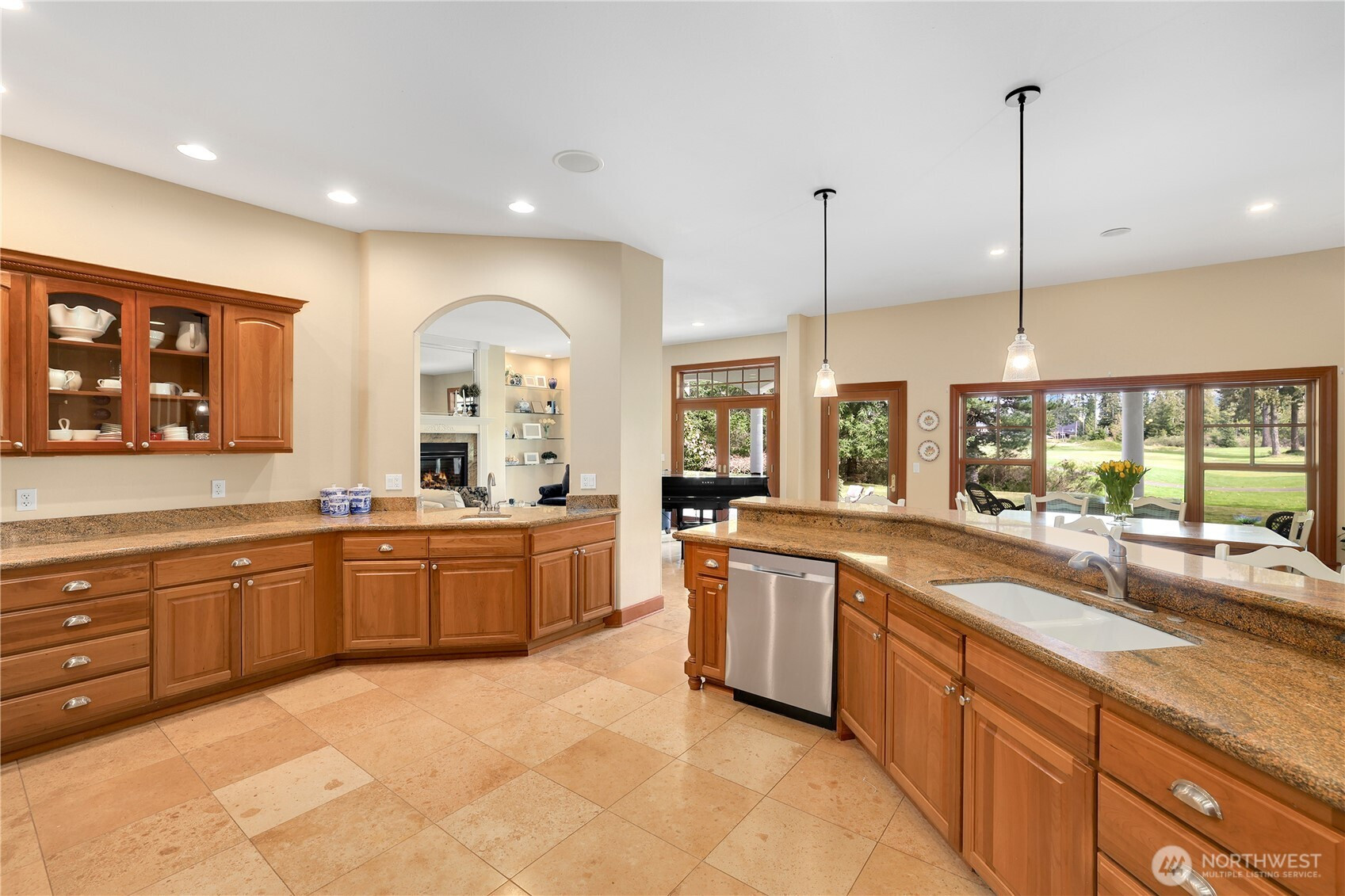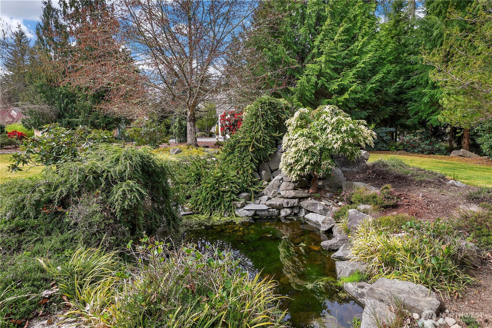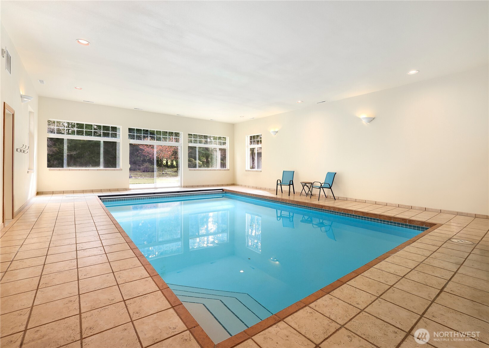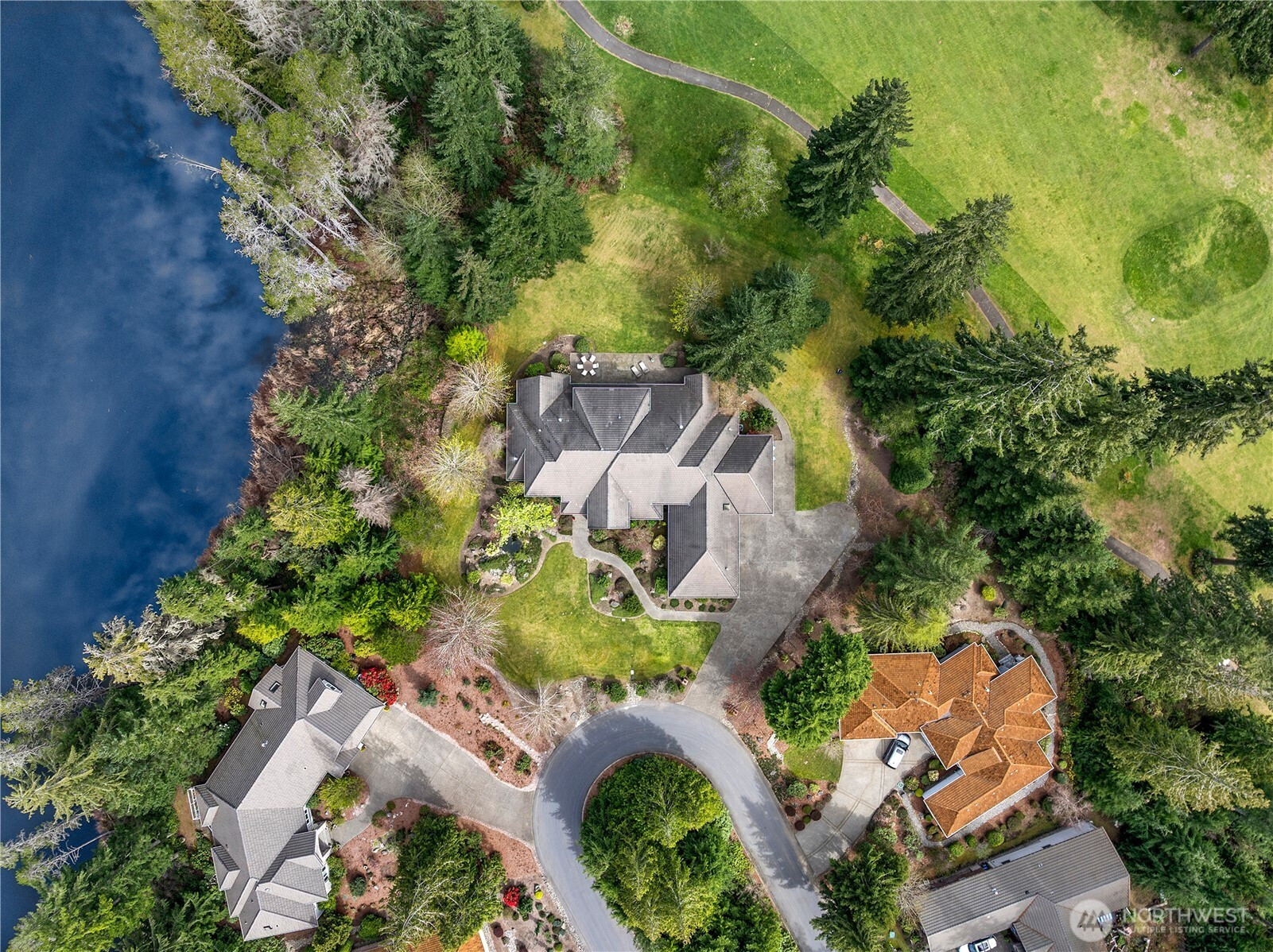 Experience a breath of fresh air in the highly sought-after McCormick Woods community, a premier destination set along the serene shores of North Lake. Nestled on a sprawling near-acre lot overlooking the manicured 9th hole, this immaculate, meticulously maintained estate enjoys a stunning and private setting. The home showcases exceptional craftsmanship and high-end materials throughout, including rich dark cherry hardwoods, imported Italian porcelain tile, rugged ledge stone, granite fireplaces, and finely crafted woodwork. Expansive windows wrap the home, capturing breathtaking views and filling each space with natural light while perfectly framing the lush, park-like grounds where deer often roam. Designed for refined living, the main level features a luxurious primary suite and an elegant formal library. The gourmet kitchen is a chef’s dream, complete with a premium gas range and Sub-Zero refrigerator. Entertainment shines in the dedicated home theater with immersive surround sound. A standout feature is the impressive 28x18 indoor pool with retractable cover, creating a year-round private retreat for relaxation or exercise. Residents enjoy access to a top-rated golf course, clubhouse, tennis courts, and scenic trails.