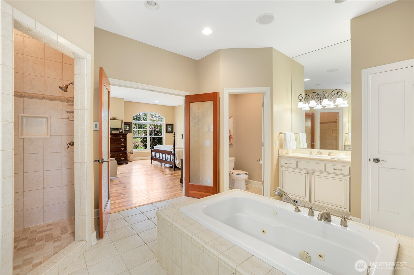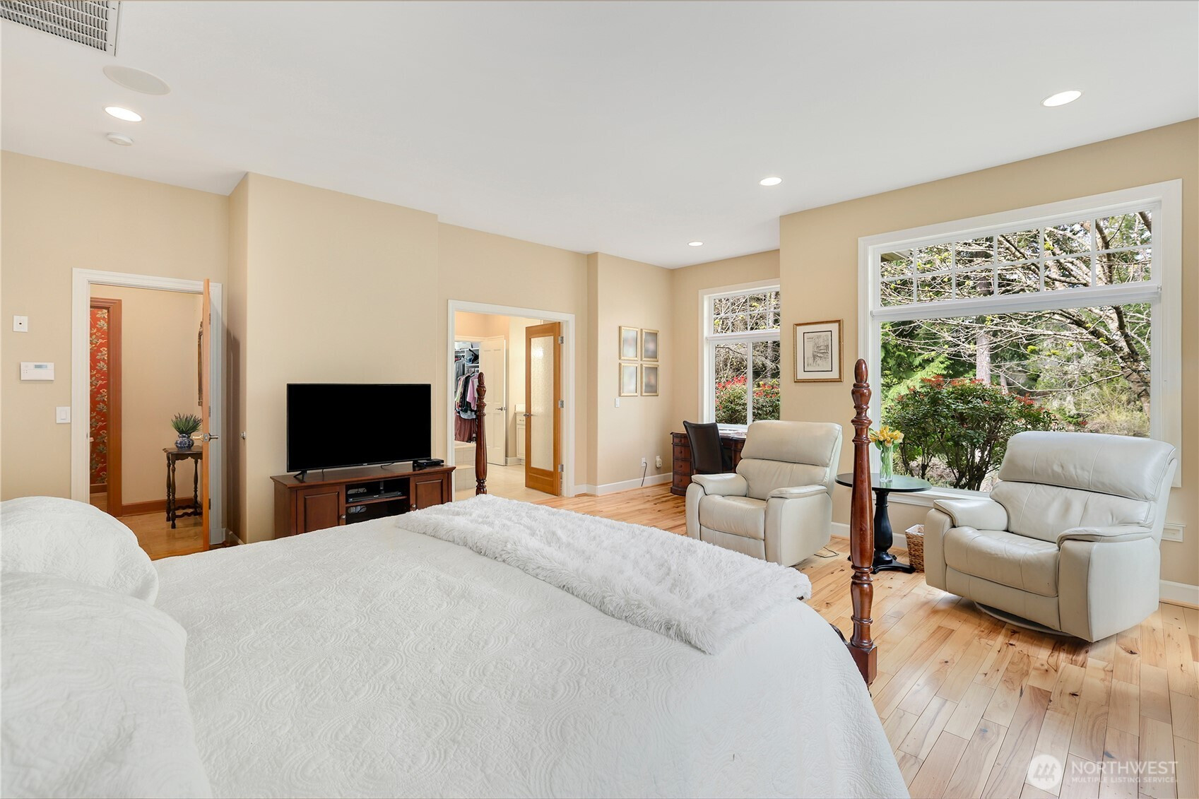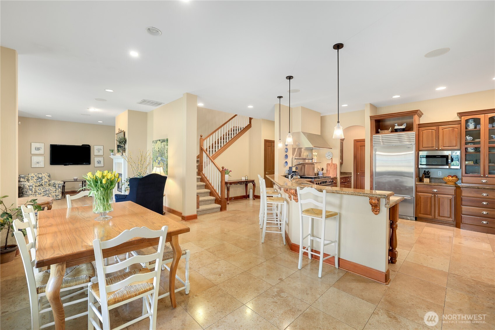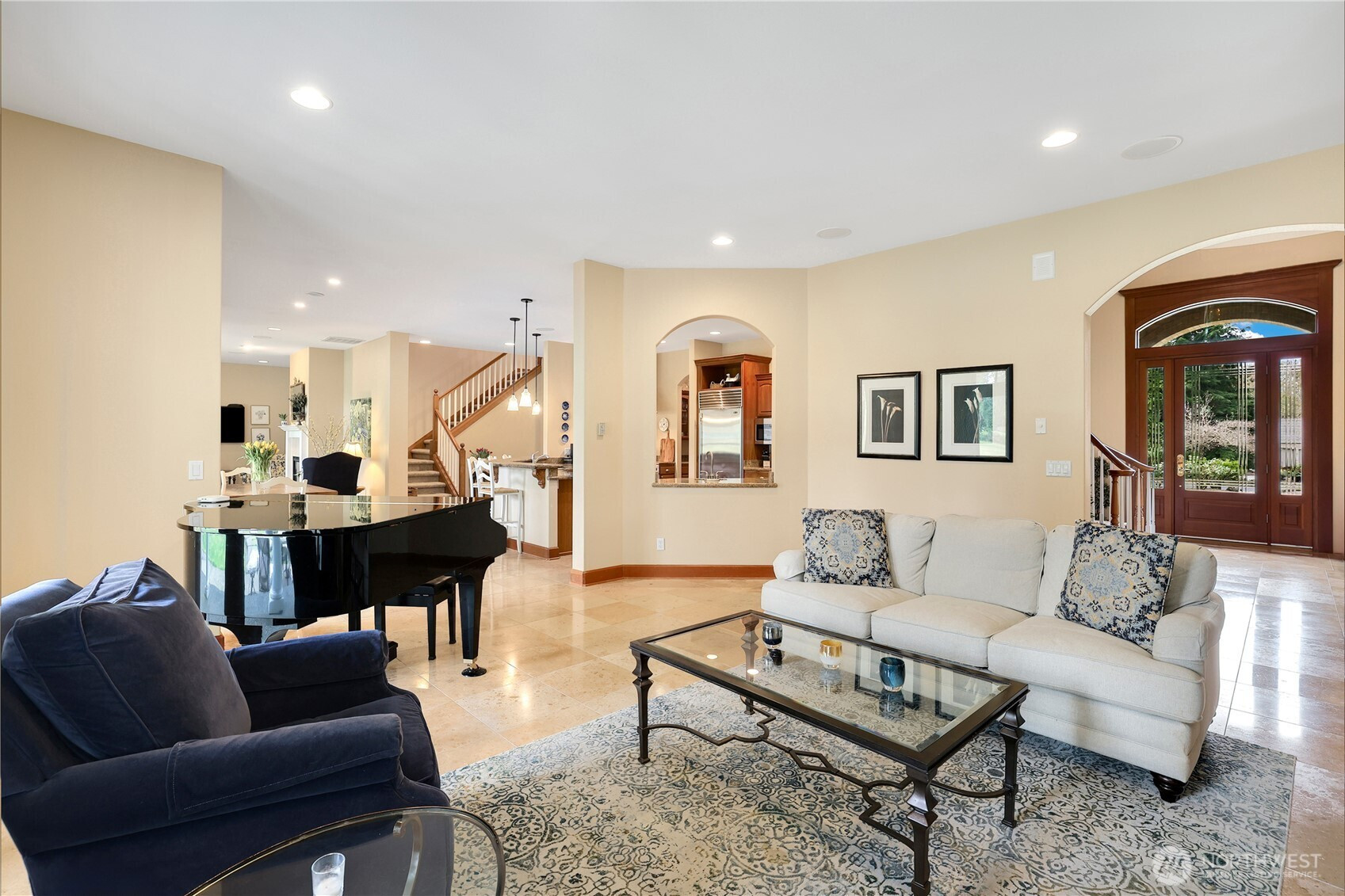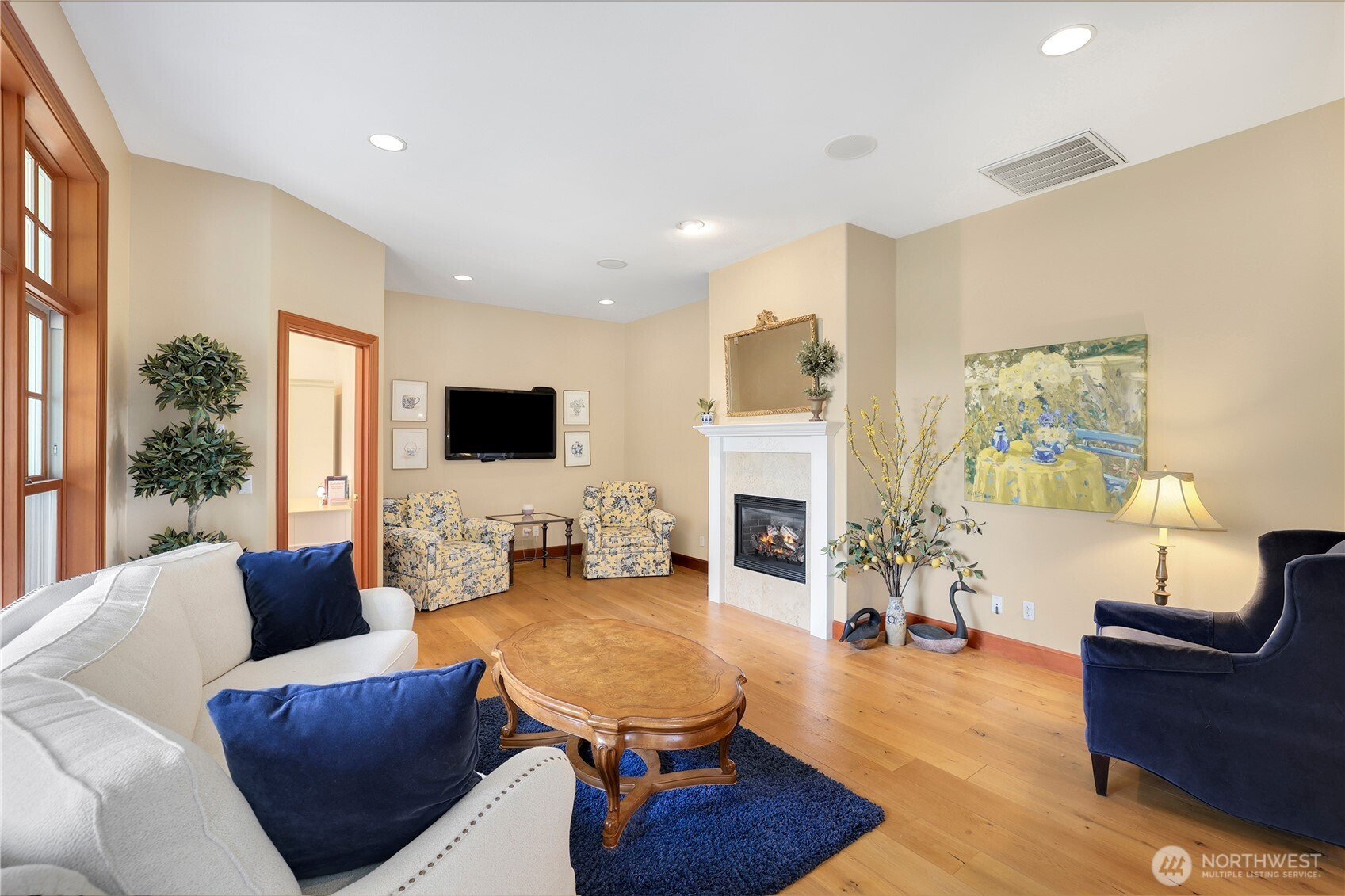 Experience a breath of fresh air in the highly sought-after McCormick Woods community, a premier destination set along the serene shores of North Lake. Nestled on a sprawling near-acre lot overlooking the manicured 9th hole, this immaculate, meticulously maintained estate enjoys a stunning and private setting. The home showcases exceptional craftsmanship and high-end materials throughout, including rich dark cherry hardwoods, imported Italian porcelain tile, rugged ledge stone, granite fireplaces, and finely crafted woodwork. Expansive windows wrap the home, capturing breathtaking views and filling each space with natural light while perfectly framing the lush, park-like grounds where deer often roam. Designed for refined living, the main level features a luxurious primary suite and an elegant formal library. The gourmet kitchen is a chef’s dream, complete with a premium gas range and Sub-Zero refrigerator. Entertainment shines in the dedicated home theater with immersive surround sound. A standout feature is the impressive 28x18 indoor pool with retractable cover, creating a year-round private retreat for relaxation or exercise. Residents enjoy access to a top-rated golf course, clubhouse, tennis courts, and scenic trails.
