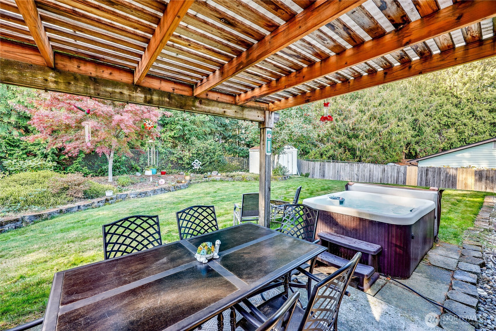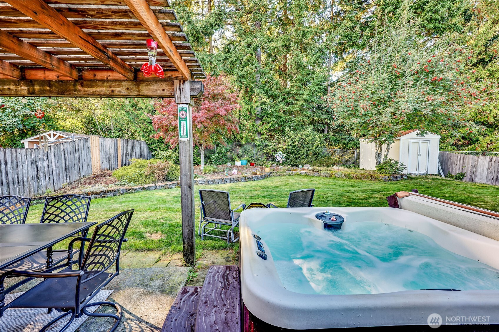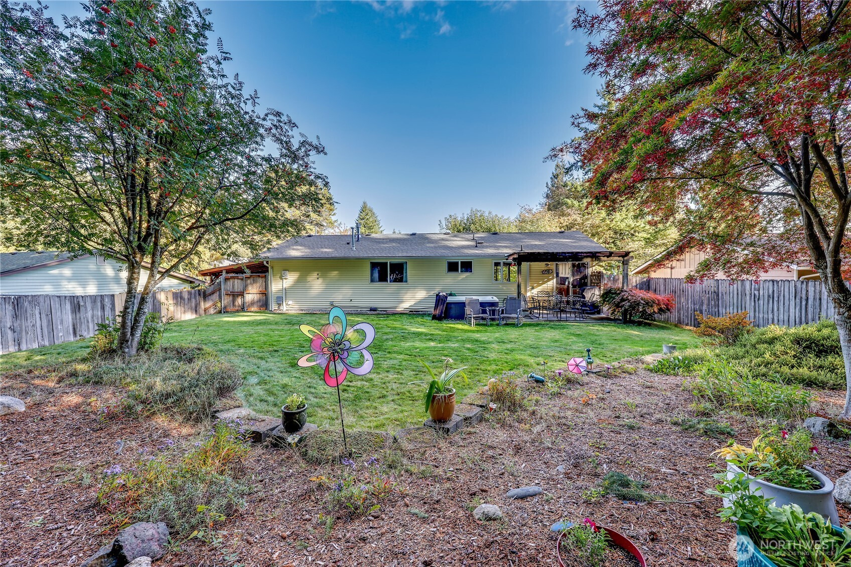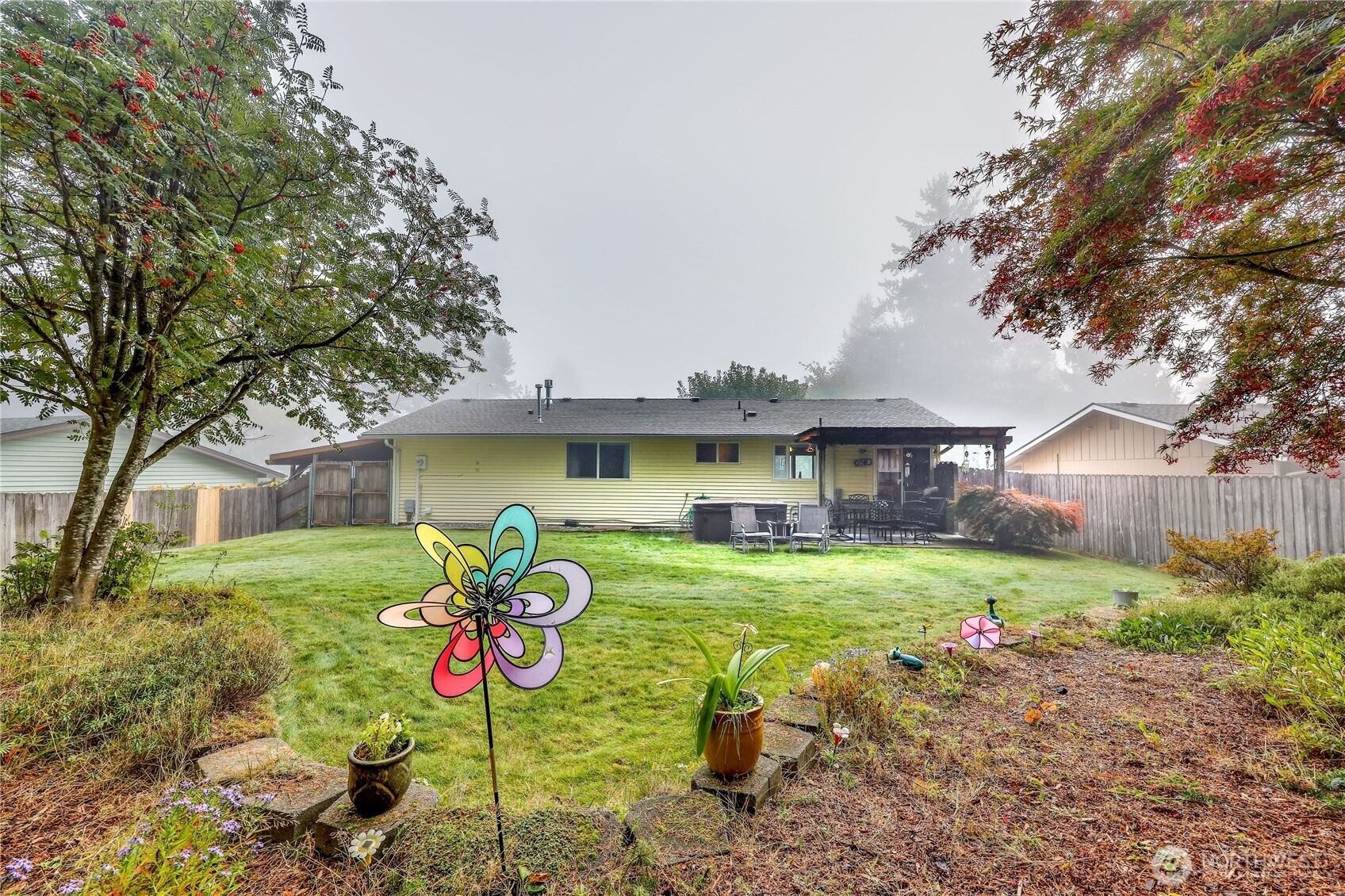 Best backyard award! This one level home has an amazing backyard...fenced, level, private, covered patio, hot tub - a true extension of living & entertaining space! Just as impressive are the updates inside including newer kitchen cabinets, granite countertops, stainless appliances & a moveable butcher block island. The primary features a 3/4 bath & bedroom 3 is versatile as a bedroom or den. Newer minisplits are economical & provide A/C too! Easy care vinyl siding, 2024 hot water tank & a carport round out this turnkey gem! Don't wait on this one!