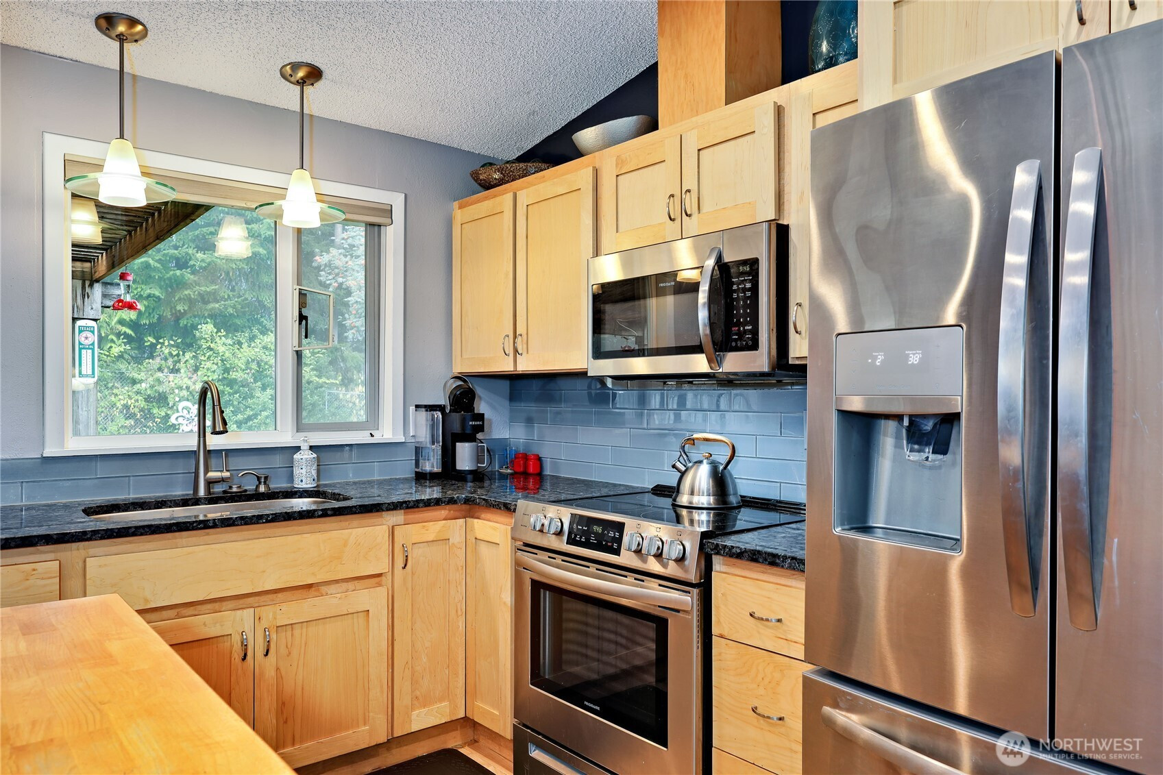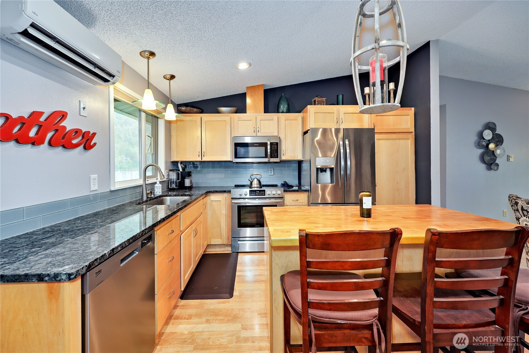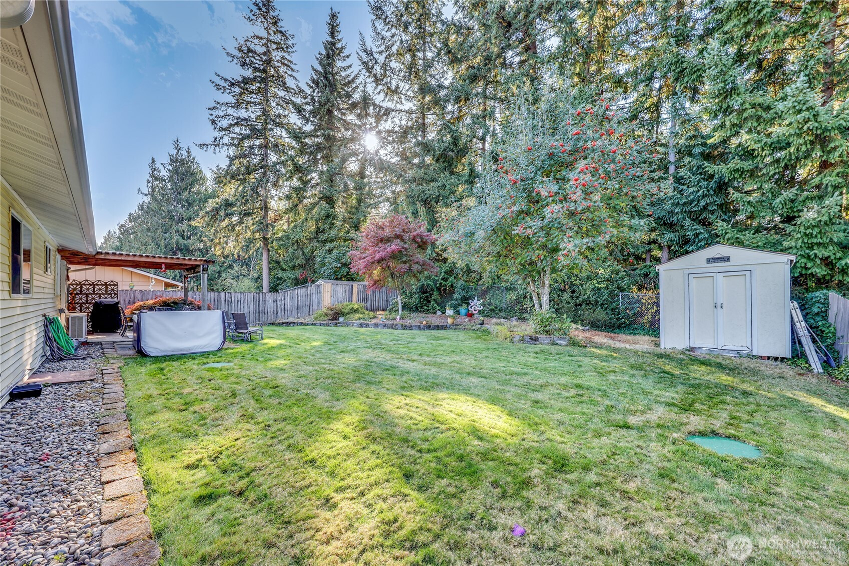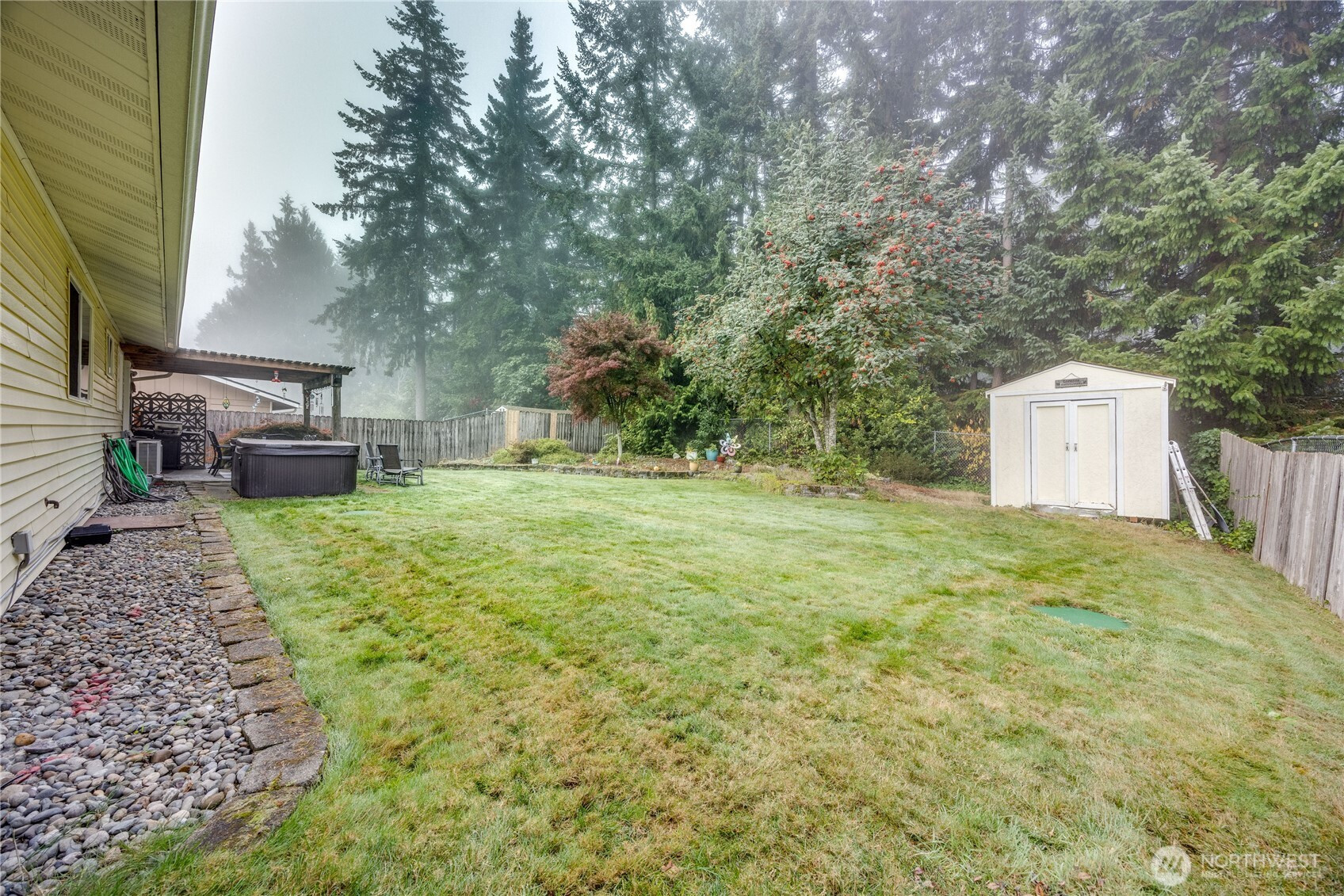 Best backyard award! This one level home has an amazing backyard...fenced, level, private, covered patio, hot tub - a true extension of living & entertaining space! Just as impressive are the updates inside including newer kitchen cabinets, granite countertops, stainless appliances & a moveable butcher block island. The primary features a 3/4 bath & bedroom 3 is versatile as a bedroom or den. Newer minisplits are economical & provide A/C too! Easy care vinyl siding, 2024 hot water tank & a carport round out this turnkey gem! Don't wait on this one!
