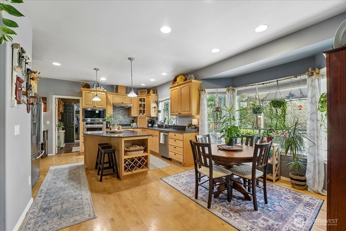 As you approach Seabeck the landscape widens into sweeping waterfront vistas along the majestic Hood Canal with the Olympic Mts in the distance, Welcome Home. Seabeck Heights is a large 1ac+ lot community and is a pinnacle of peace, quiet and tranquility. The home’s long driveway has plenty of room for both vehicles and an RV. Walking up the traditional covered front porch you’ll find plenty of room for rocking chairs or a swing. The home has a Grand two-story foyer with lots of windows for plenty of natural light throughout the home. The hardwood flooring leads to the spacious kitchen and Island with stainless appliances, granite countertops, built-in oven and separate gas stove top. On either side of the entry, you have the parlor leading thru French doors to living, and on the other side is the formal dining with coffer ceiling conveniently leading to back of kitchen. Open stairwell and upper mezzanine to double door Primary bedroom w/vaulted ceiling and off suite bath w/soaking tube, separate shower and walk-in-closet. Both guest bedrooms are on the sides of the mezzanine, and the guest bath boasts a bigger skylight. Off kitchen mud room with laundry leads to the Large 3-car garage with rear door to backyard. Cute potting station leading to newer trex-deck, with railing, and covered pergola. Well defined fire pit entertaining area. Newer AC/Heat pump. Wired for a generator. Mins to Seabeck Marina. 15 mins to Bangor and downtown Silverdale. Central Kitsap schools.