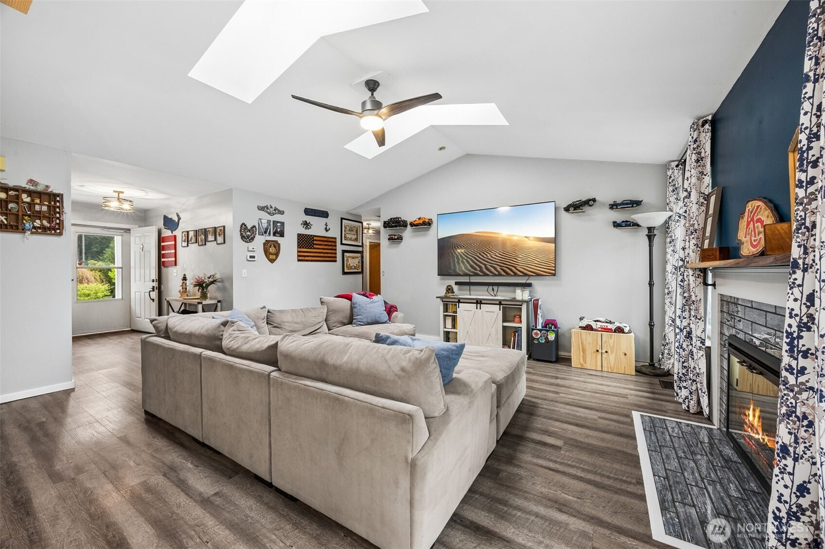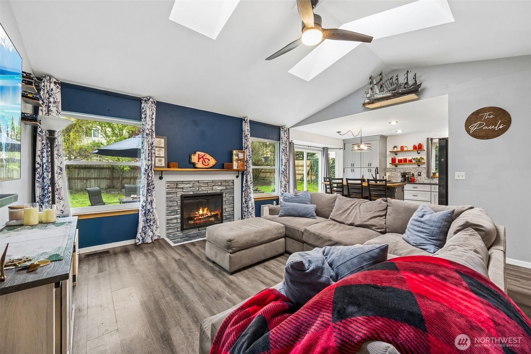 Lovely 3-bedroom, 2-bathroom rambler is set on a 0.29-acre lot in Bremerton. Featuring vaulted ceilings with skylights, formal living and dining rooms, and a cozy family room with a fireplace. The open kitchen includes a pantry, an island with a breakfast bar, a dining area, and access to the backyard. The primary bedroom has an ensuite bathroom and a walk-in closet, along with two additional bedrooms and a full bathroom. Enjoy the fenced yard and a 2-car garage. Centrally located with easy access to Highway 303, bases, restaurants, shopping, parks, and more!