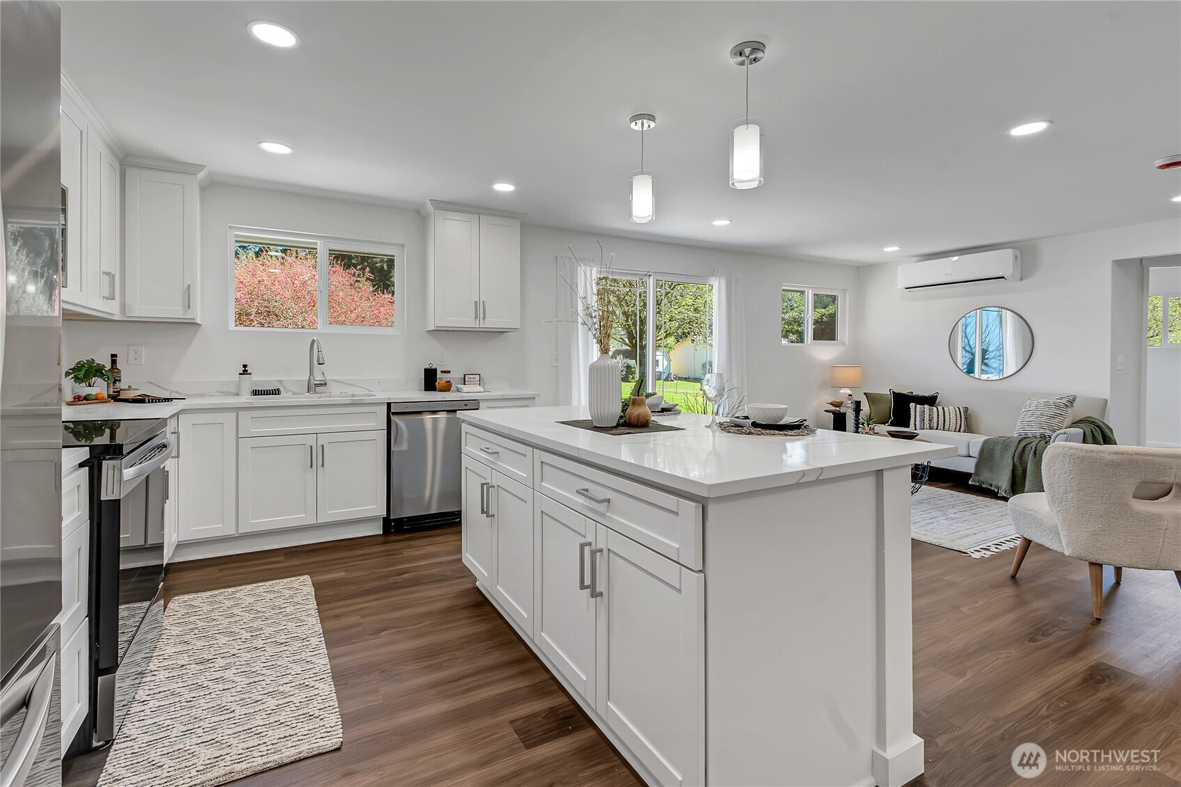 Wonderful Turn-key home with a large shop! This completely remodeled 2 bed 1.75 bath with an optional 3rd bedroom offers open concept living with well appointed finishes. The kitchen with eating space, laundry room/pantry, living room, primary bedroom w/bath, and additional bedroom are on the main floor with a den/bedroom, office and bonus living room on the lower level. New septic, pex plumbing, new heat pump, new roof and the list continues! Spacious basement storage room with indoor/outdoor access. Large 30x30 shop with power lift doors! Plenty of space for RV parking. All well positioned on a 3/4 ac. Quick drive to Port Orchards shopping and dining and schools. 4 minutes to hwy 16 and 15 minutes to Bremerton.