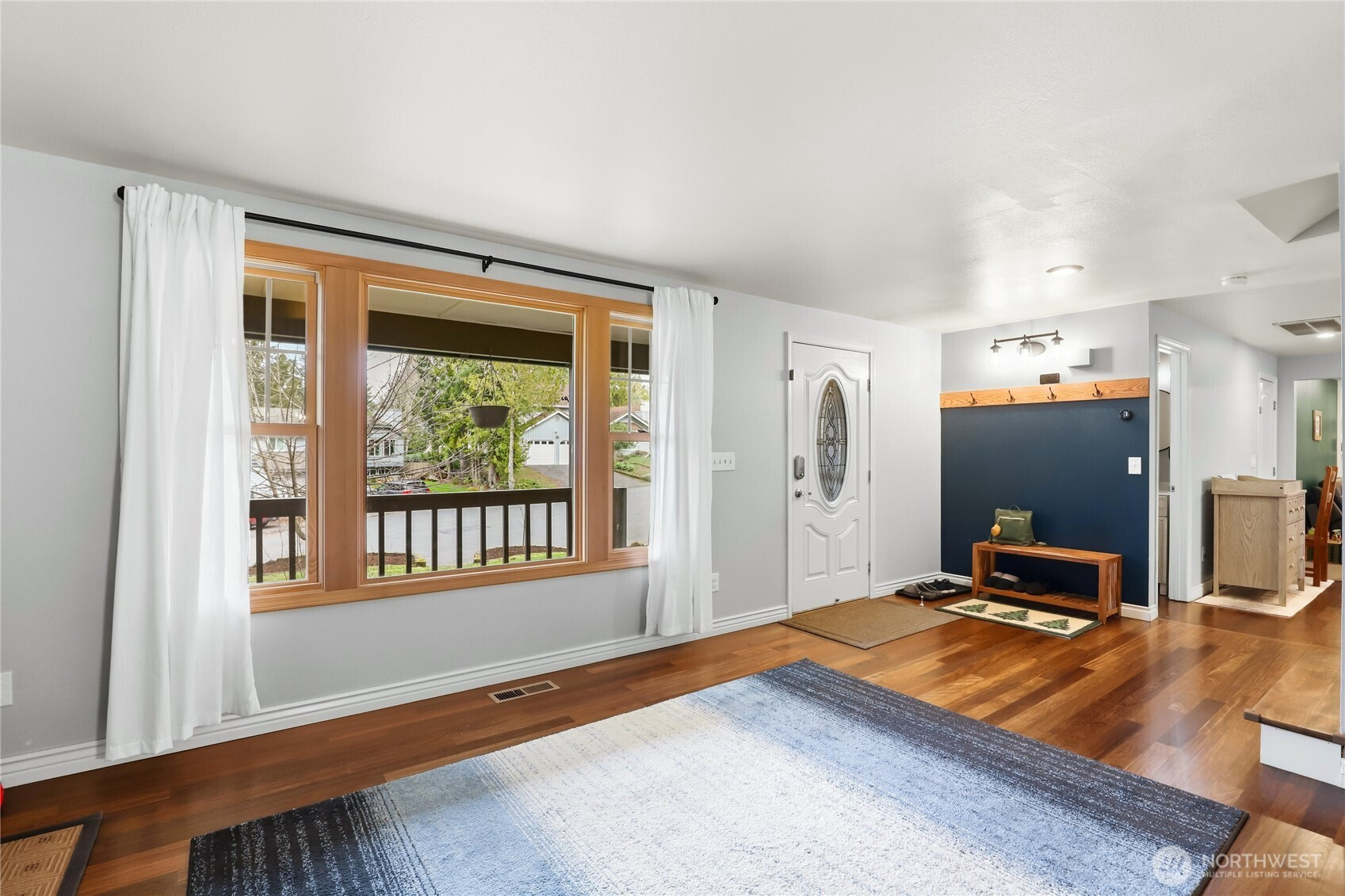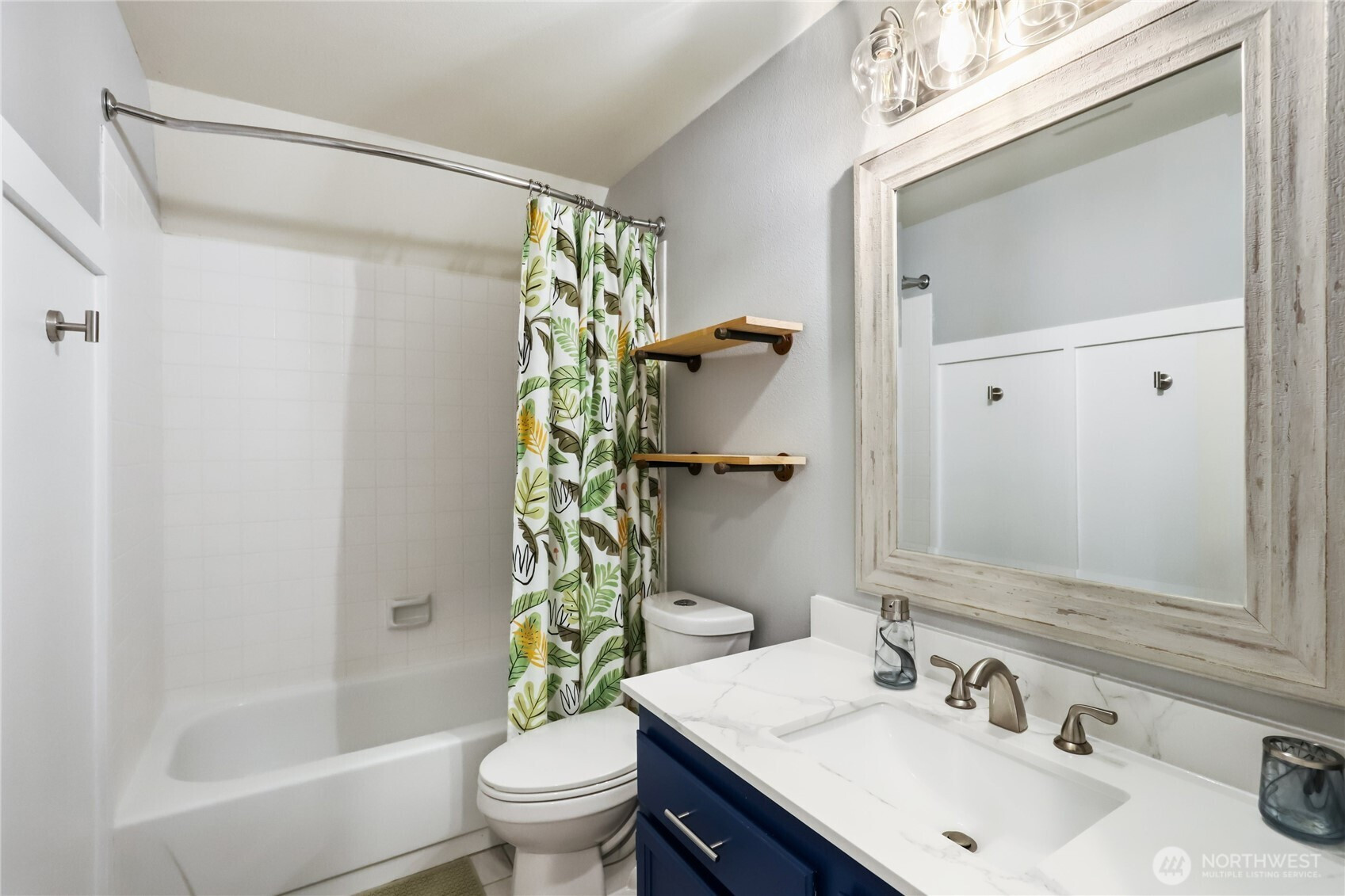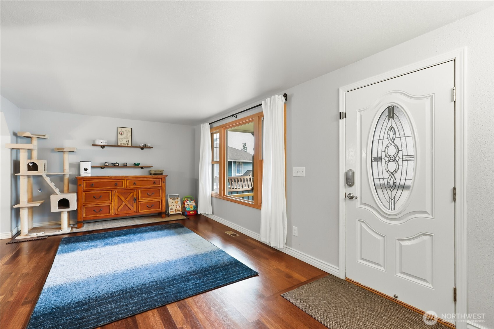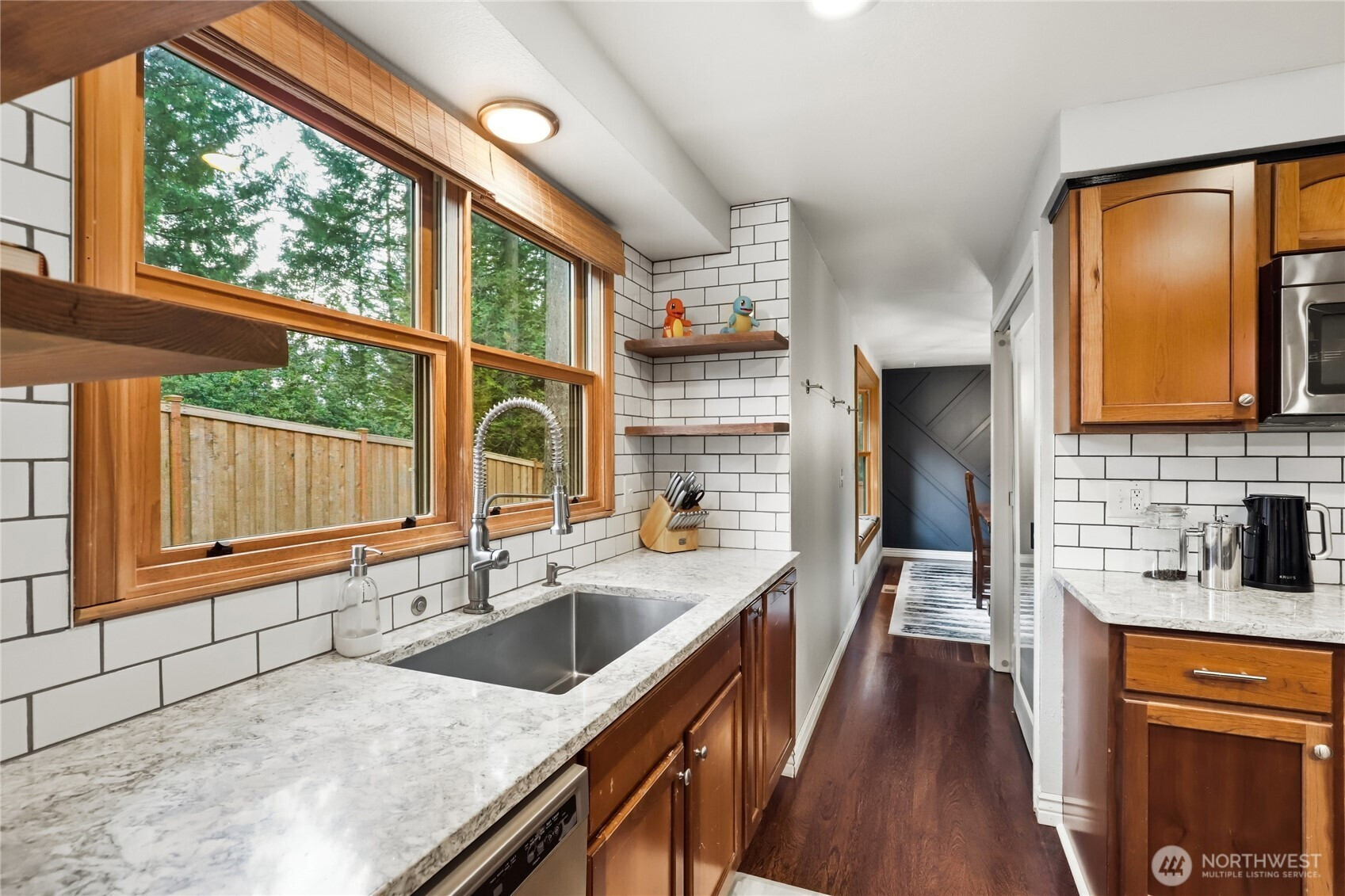 Welcome to this charming home nestled on a quiet culdesac in Central Kitsap. Offering 4 bedrooms and 2.5 baths, this thoughtfully designed residence blends comfort and style throughout. The entire main level features beautiful hardwood floors, two inviting living areas, and an open-concept layout ideal for everyday living and entertaining. The updated kitchen shines with stainless steel appliances, quartz countertops, a center island, coffee bar, and a walk-in pantry, seamlessly connecting to the dining room and front living space. Upstairs, you’ll find three generously sized bedrooms, a full bath, a convenient utility room, and a spacious primary suite complete with a spa-inspired ensuite and walk-in closets. Off the main living area, an expansive Trex patio extends your living space outdoors—perfect for gatherings and summer barbecues. The fully fenced backyard includes a level lawn and outbuilding, providing flexibility for hobbies or storage. Ideally located near bases, ferries, shopping, and local amenities, this home offers both comfort and convenience in a prime setting.