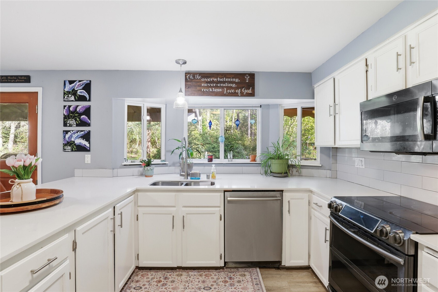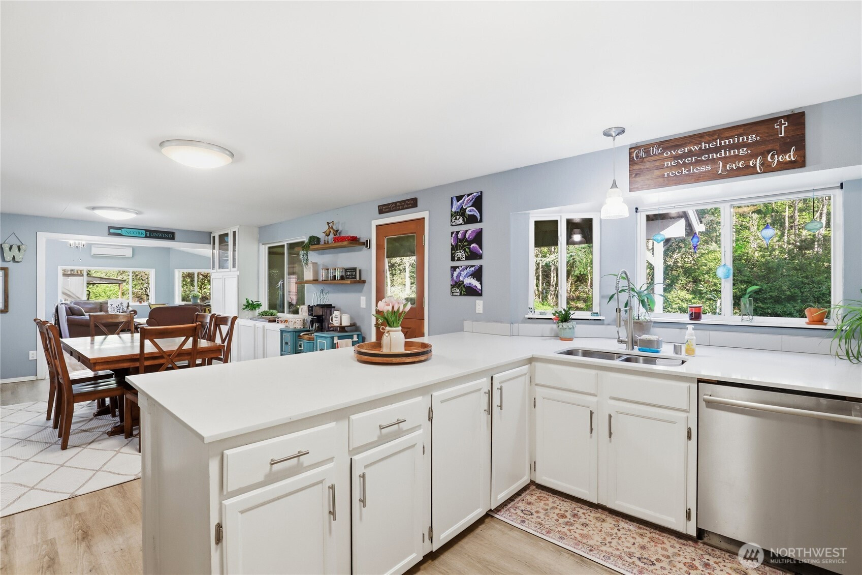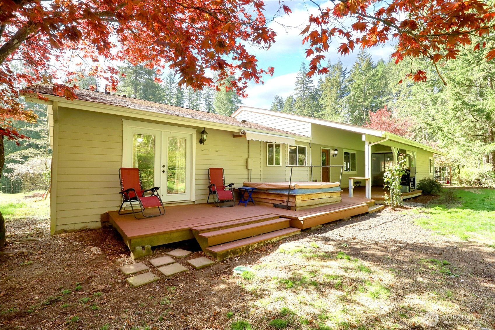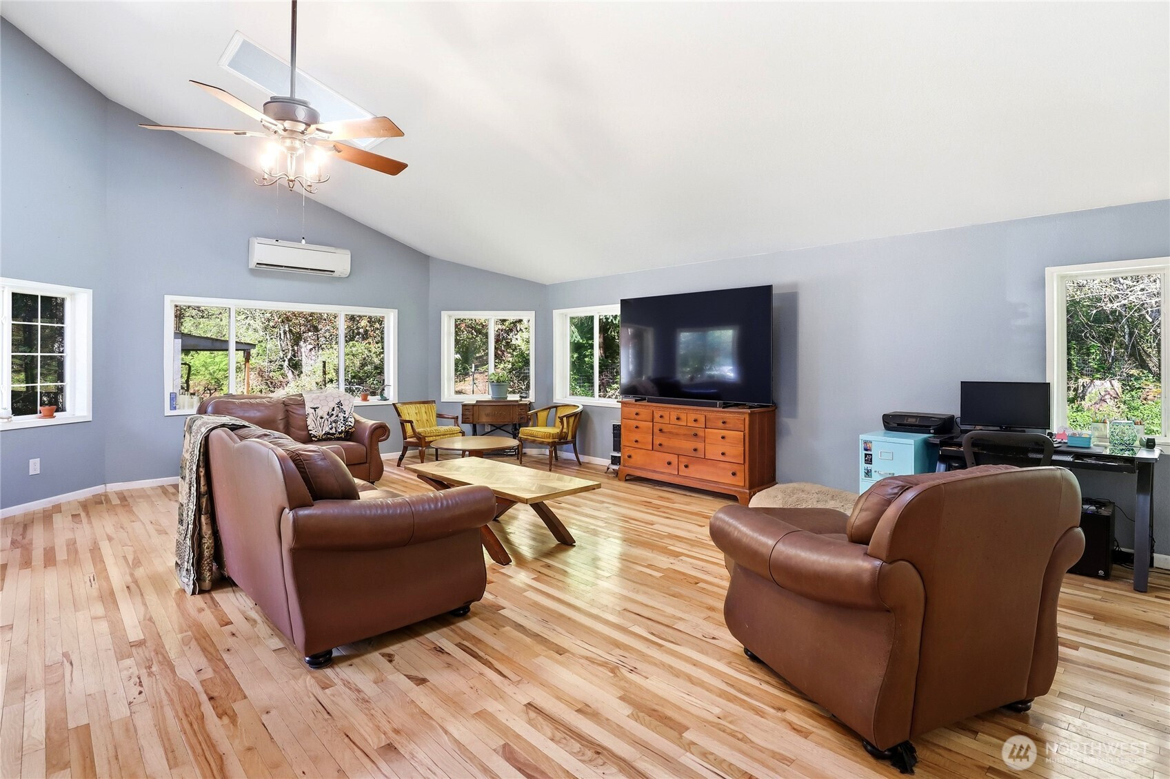 Tucked away on nearly 5 acres, this inviting Port Orchard retreat offers space to breathe and room to live boldly. This 3-bedroom + office home features a flexible layout, including a second primary bedroom with its own en-suite—perfect for multi-generational living or hosting long-term guests. Inside, hardwood floors run through the main living areas, grounding the home in warmth and timeless style. Efficient ductless heating and cooling keep things comfortable year-round, while natural light pours in to frame peaceful, territorial views. Step outside and the property unfolds like a canvas—wide open spaces for gardening, recreation, or simply enjoying the quiet rhythm of country living. A large shop stands ready for storage, hobbies, or your next big project, while an additional outbuilding with electricity and heat offers the perfect flex space for a home office, studio, or creative retreat. Versatile and full of possibility—yet still just minutes to amenities, highways, and everything Port Orchard has to offer.