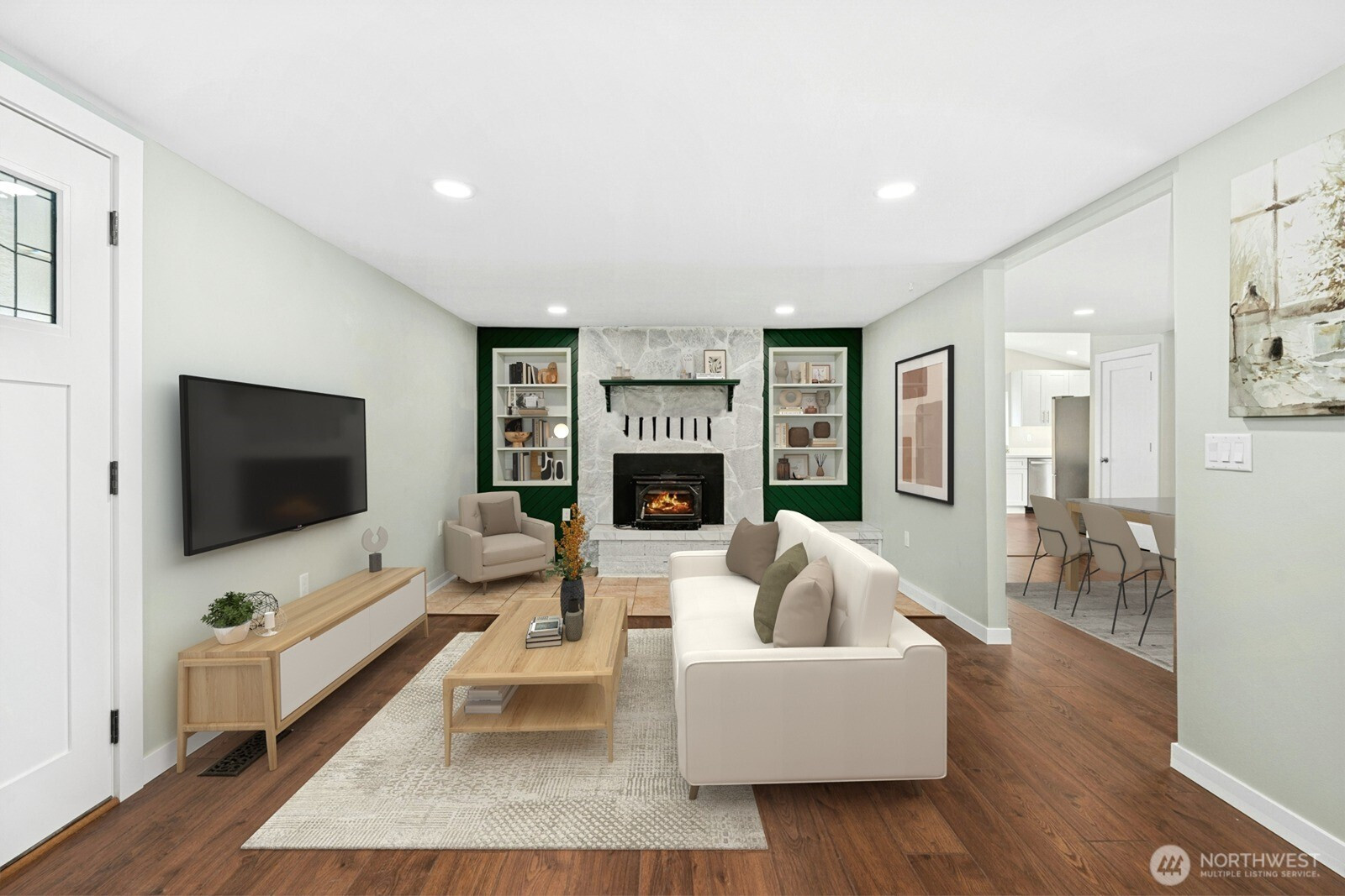 (503) 893-8874Turnkey, fully remodeled single-level home offering modern interiors, functional living, and a scenic setting. Comprehensive updates include new electrical, plumbing, insulation, lighting, flooring, and a redesigned kitchen, dining, and living space. The showcase kitchen features stainless steel appliances, quartz countertops, new cabinetry with undermount lighting, a walk-in pantry, and a garden bay window bringing in natural light. The thoughtfully designed layout provides ample storage and everyday functionality. The primary suite features a beautifully updated bath with a walk-in shower and frameless glass door, while the oversized guest bath includes a tub/shower combination. Additional highlights include a tankless water heater, energy-efficient heat pump with A/C, LED lighting, and a cozy wood-burning fireplace with custom built-ins. Enjoy outdoor living with Trex decks, a covered front porch, and a huge, flat, fully fenced backyard—ideal for entertaining, recreation, or relaxing with peaceful forest and pasture views. Attached garage with built-in shelving plus abundant parking for up to six vehicles. No HOA. Prime South Kitsap location with easy access to Hwy 16, close to Gig Harbor, Port Orchard, ferry access, schools, and shopping—making commuting simple and convenient.