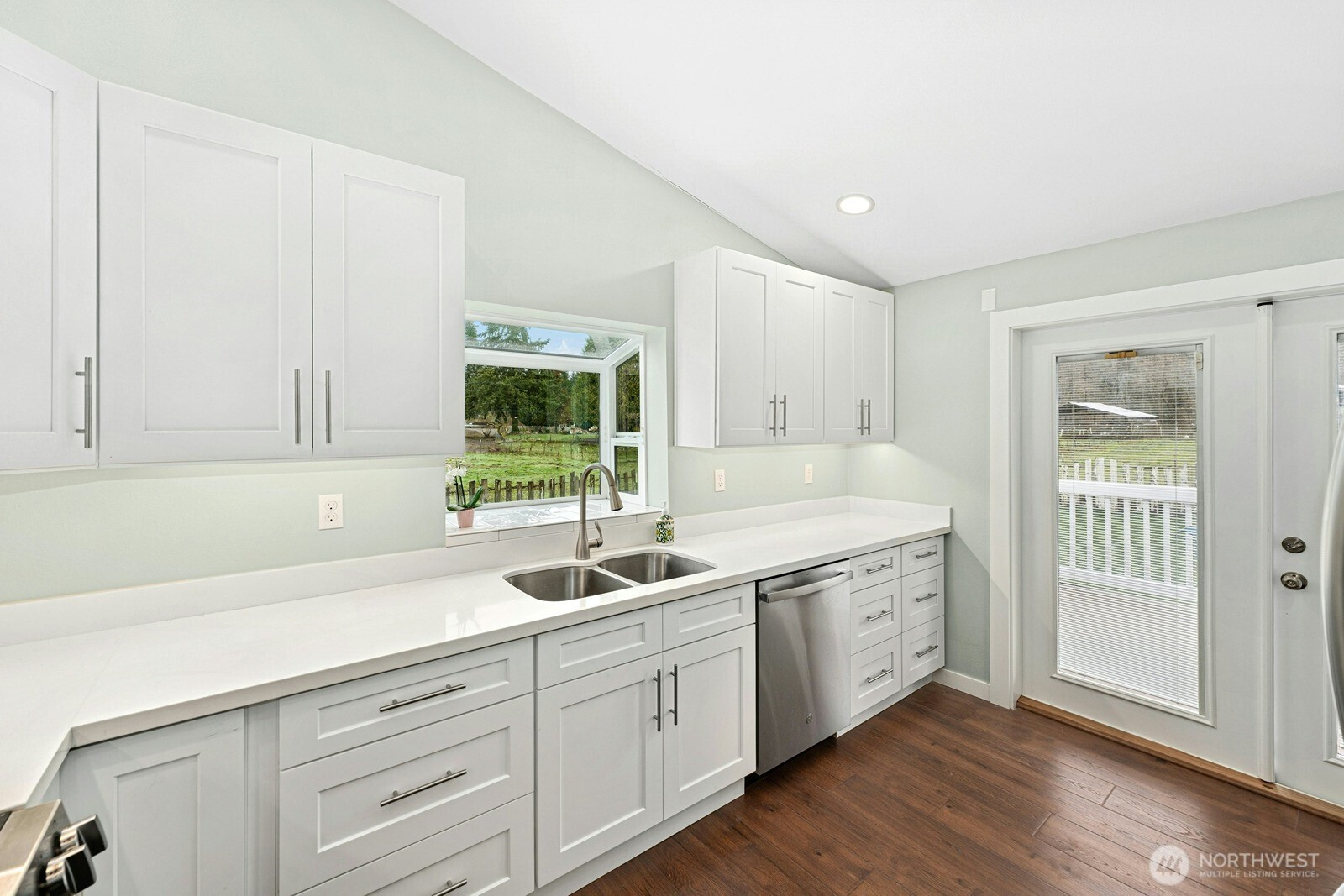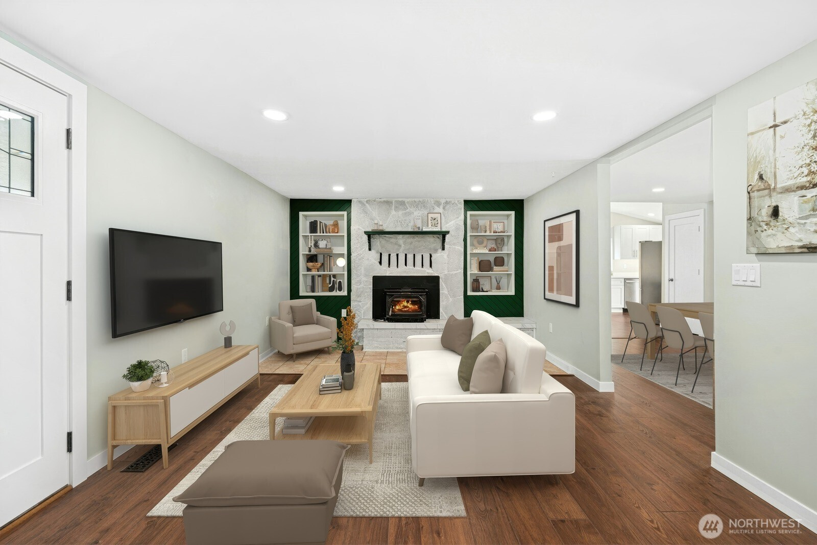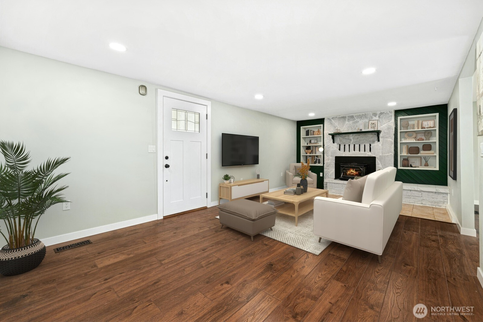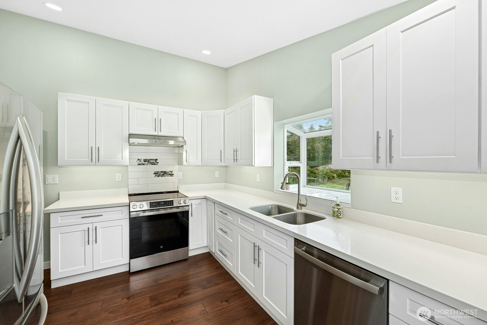(503) 893-8874Turnkey, fully updated single-level home combining modern interiors, functional living space, and a scenic setting. Updates include remodeled kitchen, all updated bathrooms, and durable LVP flooring throughout. Showcase kitchen features SS appliances, quartz counters, new cabinetry w/ undermount lighting, walk-in pantry, and a garden bay window bringing in natural light. Thoughtful layout throughout the home offers ample storage and everyday functionality. The primary suite features a beautifully updated bath w/ a walk-in shower and frameless glass door, while the oversized guest bath is complete w/ a tub/shower combination. Additional interior features include LED lighting, tankless water heater, and a cozy wood-burning fireplace framed by custom built-in bookshelves, adding warmth and character to the living space. Spacious laundry room w/ barn door and dedicated utility sink, ideal for everyday convenience. Outside, enjoy Trex decks for entertaining, a covered front porch, and an attached single-car garage w/ built-in shelving. Property offers abundant parking for approx six cars. The huge, flat, fully fenced backyard is a standout—ideal for gatherings, outdoor living, recreation, gardening, or simply enjoying the peaceful forest and pasture views. Sought-after South Kitsap location w/ easy freeway access, conveniently close to Gig Harbor, Port Orchard, and the ferry, plus schools, shopping, for easy commuting.