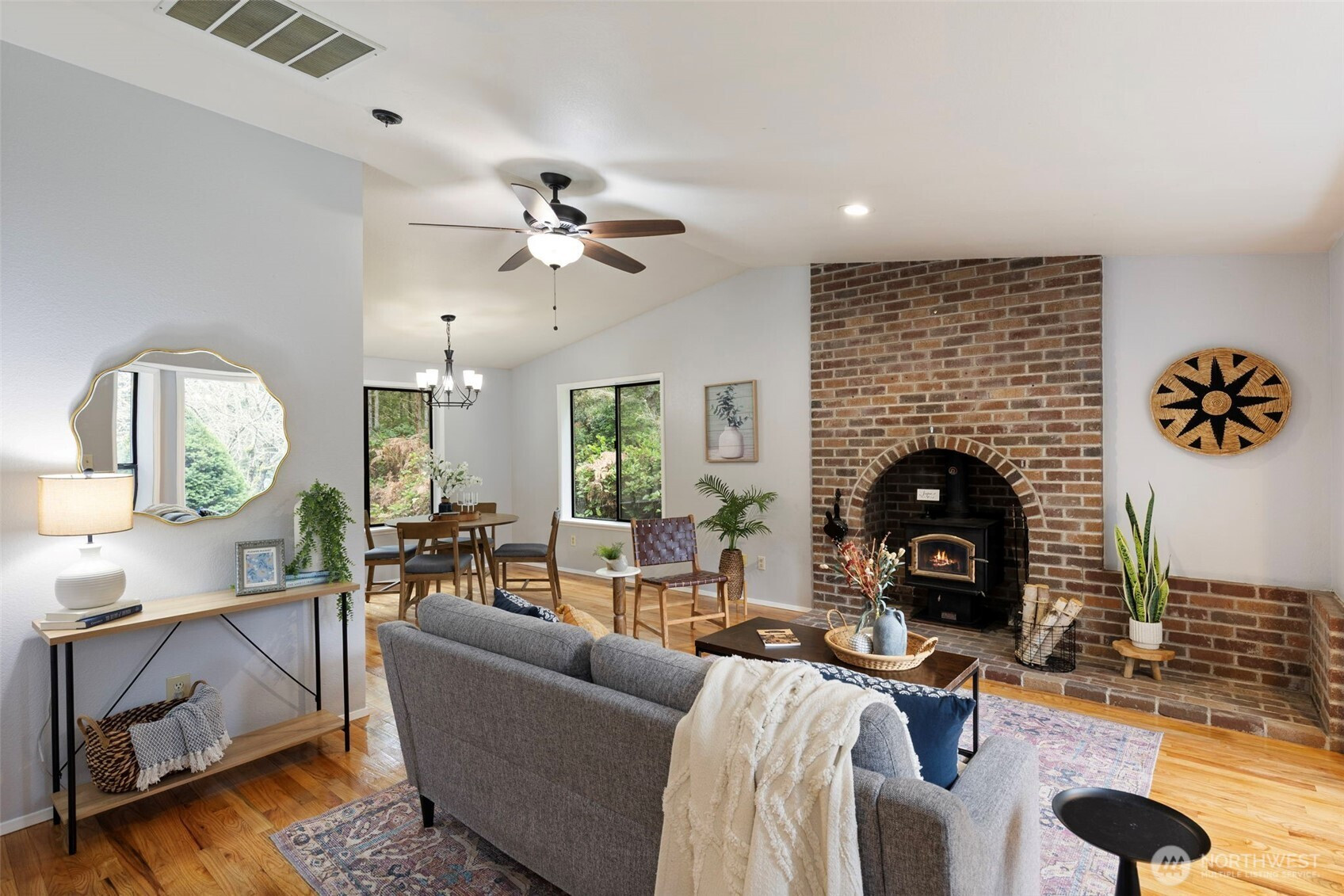 Bath Off Primary, Ceiling Fan(s), Dbl Pane/Storm Window, Dining Room, Fireplace, Vaulted Ceilings, W