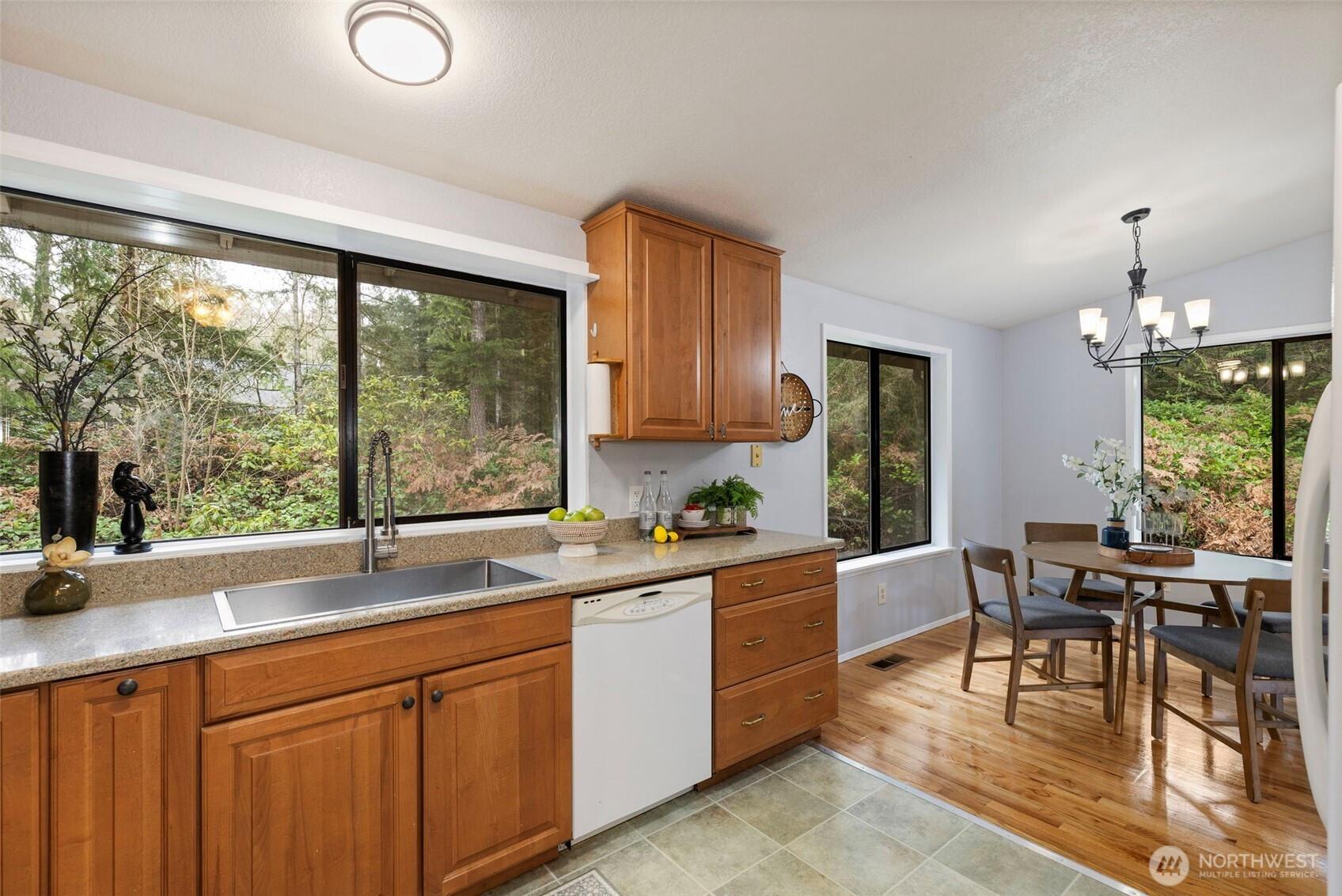 Well-maintained 3-bedroom, 2.25-bath multi-level home offering two separate living spaces and a functional layout. Features include fresh paint throughout, hardwood floors, a classic kitchen with maple cabinetry and Silestone countertops, and efficient heating and cooling heat pump. Durable concrete tile roof construction adds long-term value. Situated on a spacious, fully fenced corner lot with room for outdoor enjoyment. Conveniently located near Highway 3 with easy access to shopping and schools within the North Kitsap School District.