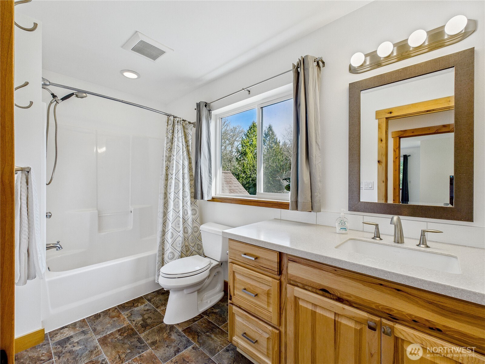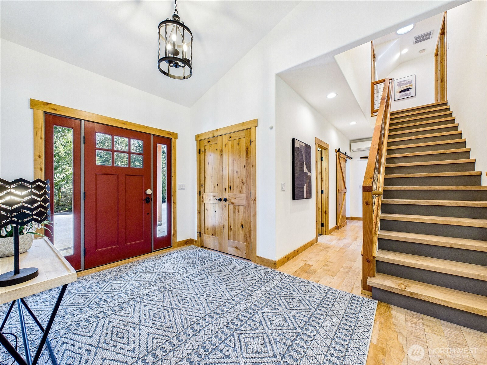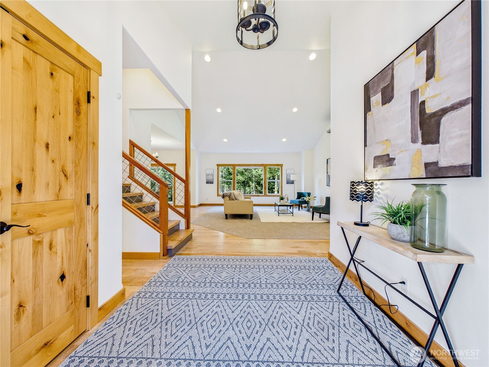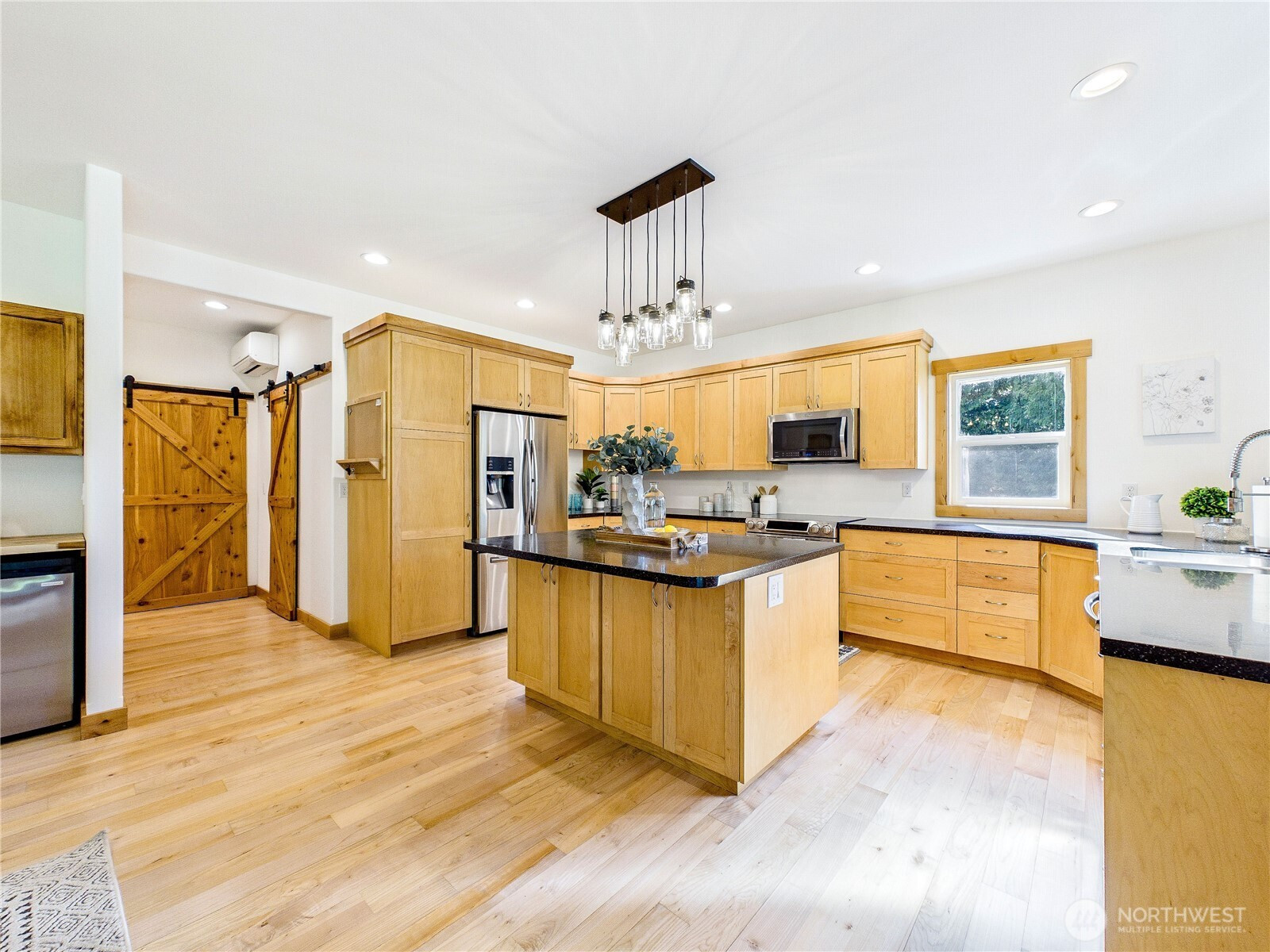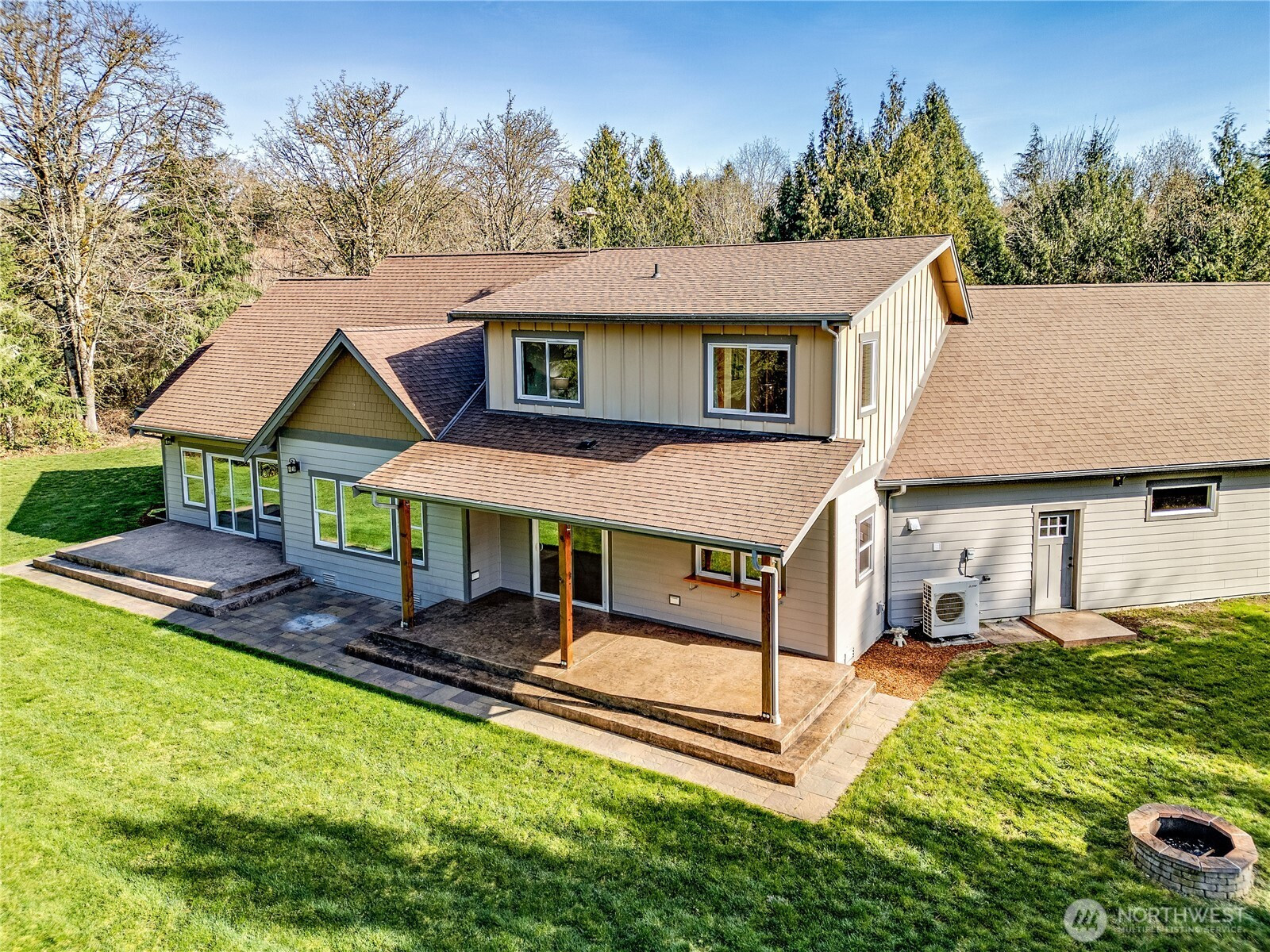 Private, peaceful, and beautifully crafted, this custom Kingston estate sits on more than 5 acres just minutes from the Kingston Ferry for an easy Seattle commute. Built with quality in mind, the home features solid-core doors, central vacuum, durable finishes, and craftsmanship rarely found in typical construction. Inside, soaring ceilings and expansive windows fill the open-concept living spaces with natural light, while hardwood floors, Corian counters, a spacious kitchen designed for gathering, and brand new carpet create a warm interior suited for everyday living and entertaining. The main-level primary suite offers comfortable main-floor living with a well-appointed bath and a large walk-in closet. The acreage provides a private natural setting with a mix of usable space and gentle terrain, including a drop in the backyard that adds separation and a wooded feel. A 3-car attached garage and an impressive 40' x 56' shop with covered RV parking provide exceptional space for vehicles, equipment, hobbies, and storage. A rare combination of privacy, quality construction, and convenience just minutes down a fully paved driveway and road to the ferry and downtown Kingston.
