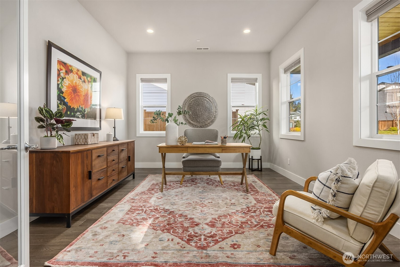 Nestled in the coveted Winslow Grove neighborhood, this beautifully crafted residence blends timeless sophistication with everyday comfort. Designed with both entertaining and daily life in mind, the main floor showcases elegant finishes, intentional architectural details, and an inviting open-concept flow. At its heart, a gourmet kitchen connects seamlessly to spacious living and dining areas, creating the perfect setting for gatherings large or small. A main-level guest suite, private home office, and expansive covered patio, enhance the home’s versatility. Upstairs, the luxurious primary suite offers a peaceful escape, featuring a spa-like bath and a luxurious walk-in closet. Additional bedrooms—including a private ensuite—along with a generous bonus room provide flexible space for gathering, a studio, or remote work, all thoughtfully positioned to ensure comfort and privacy. Outdoors, the covered patio offers a tranquil retreat with ample room to unwind—whether enjoying a quiet morning coffee or delighting in the sunset and open space beyond. Located just steps from Rotary and Owens Parks and nearby Strawberry Waterfront Park with kayak launching and outdoor recreation. Meanwhile, the shops, restaurants, schools, and ferry terminal of Winslow are minutes away. This is elevated Bainbridge Island living—graceful, functional, and designed to feel like home from the moment you arrive. . Fully fenced and landscaped, with bonus common area/open space beyond fence.