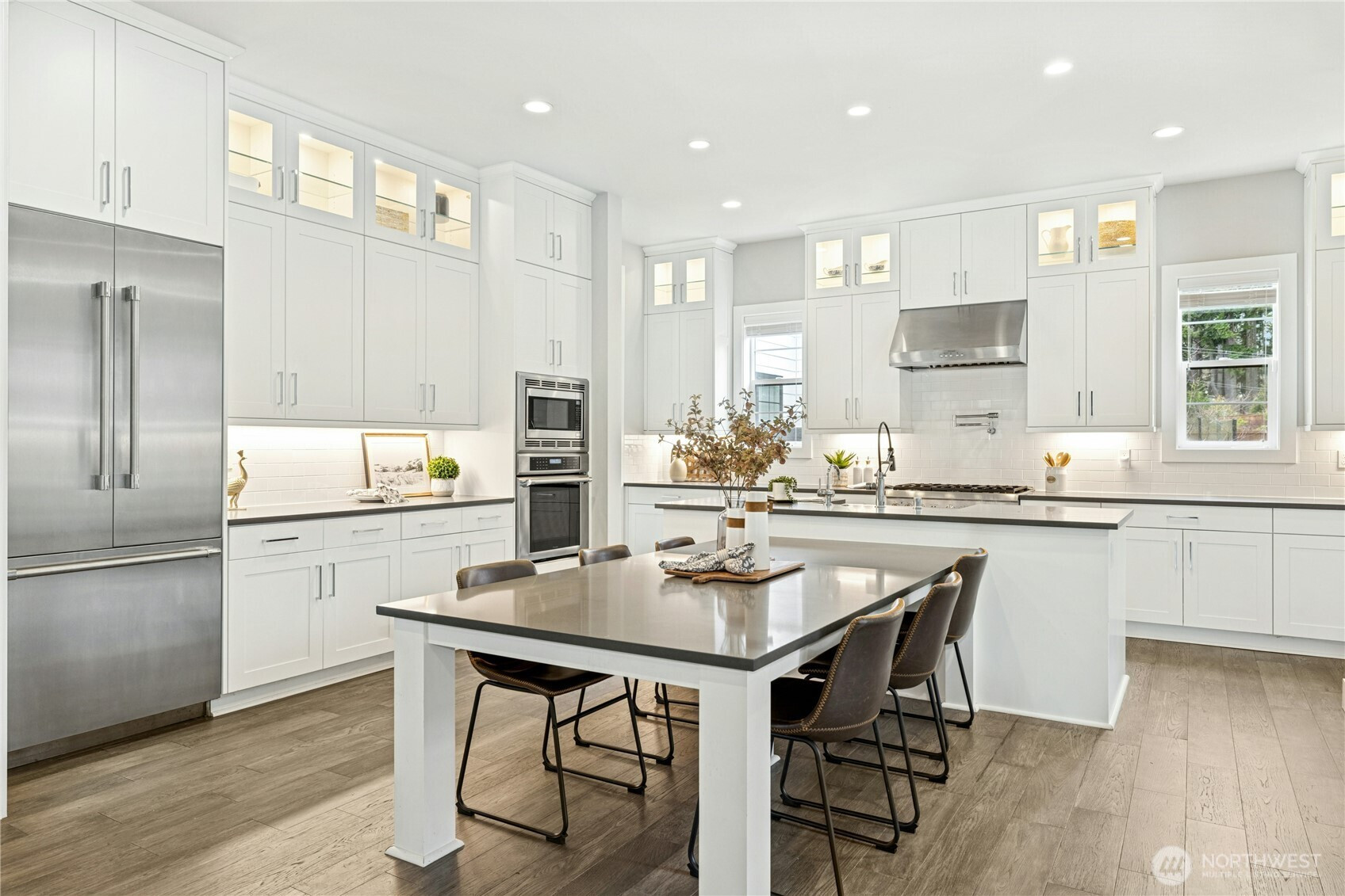Located in the desirable Winslow Grove neighborhood just moments from downtown Winslow, this refined modern farmhouse presents a seamless blend of elevated design & everyday comfort. Light-filled interiors & carefully curated finishes define the open-concept main level, where the chef’s kitchen is thoughtfully appointed w/ Thermador appliances, expansive island seating, walk-in pantry, adjacent sitting area, & dedicated mudroom. Oversized sliding glass doors create effortless indoor-outdoor flow to multiple patios & a private, professionally landscaped backyard ideal for entertaining or quiet relaxation. A main-level guest suite w/ private en suite bath adds flexibility or multi-generational living. Upstairs, the primary suite is a serene retreat w/ abundant natural light, generous proportions, & a spa-inspired bath featuring a freestanding soaking tub, dual vanities, glass-enclosed walk-in shower, & custom-organized closet. Two additional bedrooms, a versatile loft perfect for media/workspace & a well-appointed laundry w/ utility sink complete the upper level. Additional highlights include rich hardwood flooring, abundant storage & EV charger in attached two-car garage. Across the street, Rotary Park/Owen’s Playground offers exceptional outdoor space for recreation, easy access to local schools & the ferry enhances daily convenience. Ideally situated near shops/dining, this home delivers refined island living w/ contemporary style & exceptional functionality.