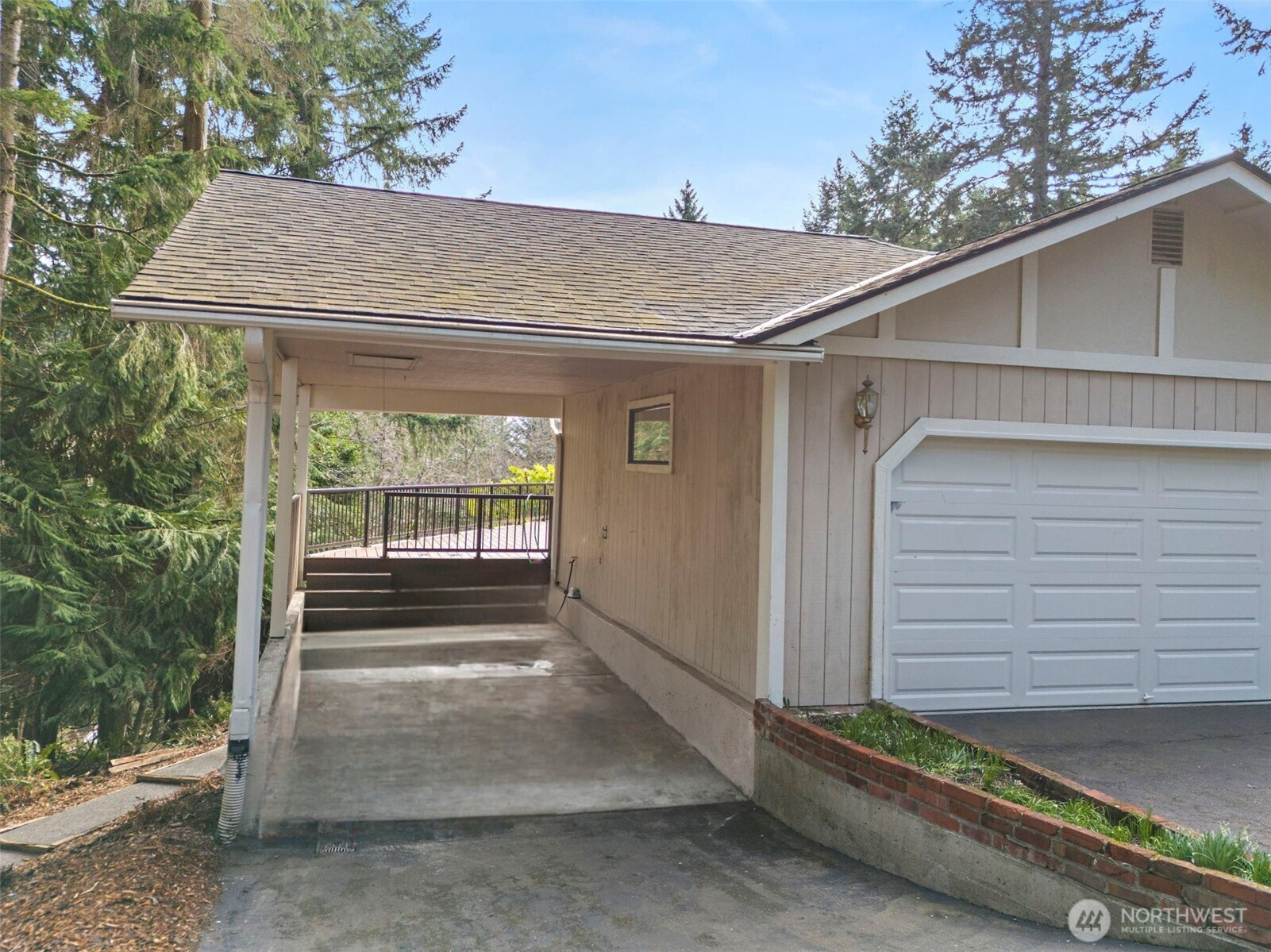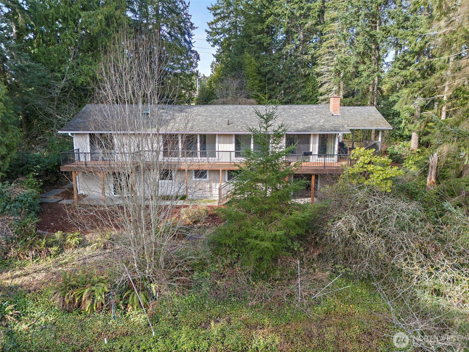 I love this house. You’ll probably love it, too, if you appreciate what you read here… In its heyday, I’ll bet it was considered top notch – the bees knees, if you will. Some materials & finishes used when this house was built are clearly better than average. And it didn’t end there. Over time, some improvements were made, also above average. Let’s start on the main level. Enter the front door into a welcoming foyer. Turn left into the kitchen, which offers ample counter space & stainless appliances along w/ a cozy dinette. From the kitchen, enter the family room w/ an ambient & functional fireplace, which flows to a formal dining room and continues to the formal living room. All three rooms embrace generous sizes and capture tranquil views, also enjoyed from a new deck. The primary BR allows a big bed & big furniture, and includes a big cedar lined closet. The bath has a walk-in shower. The 2 other BRs on this floor aren’t small. One is set up nicely as an office at this time. And there’s something very cool about the hall bath. The laundry room gains access to a ½ bath, the garage and stairs down. A 2nd kitchen, separate outside entrance and sizable living spaces suggest an in-law suite on this level. And wait’ll you see all the versatile storage space offered. The gate also encloses a private lot w/ lush vegetation and a 2nd detached garage. The locale of this gem? Ideal! A short drive to the popular Olalla Bay Market, Highway 16 or the Southworth Ferry.