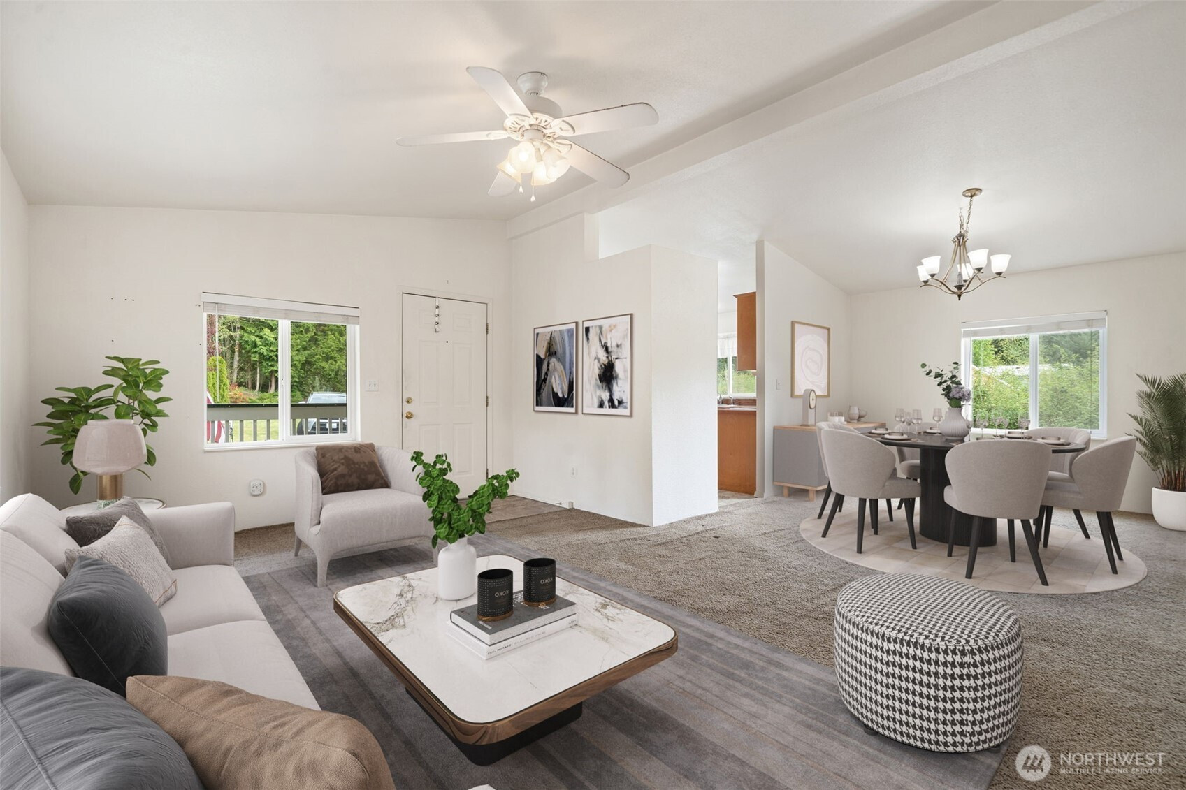 Welcome to Silverdale Estates, a well established, highly sought after 55+ gated community offering comfort, convenience, and an active lifestyle. This spacious 3 BD/1.75 BA home features a versatile layout designed for both everyday living and entertaining.Enjoy a bright living room filled with natural light from abundant windows, flowing seamlessly into an open dining area that creates a spacious, inviting layout. The kitchen is well equipped with ample cabinetry, newer appliances, and a cozy eat in area making it both functional and welcoming.The primary bedroom serves as a relaxing retreat with a walk-in closet and private bath. Two additional bedrooms offer flexibility for guests, hobbies, or a home office.Step outside and enjoy peaceful surroundings from the covered front porch, stone patio, and backyard firepit, perfect for relaxing or entertaining year round. A covered carport and spacious storage shed add extra convenience and functionality.Residents of Silverdale Estates enjoy fantastic amenities, including a clubhouse, indoor pool, hot tub, sauna, and walking trails. Ideally located just minutes from Silverdale and Bremerton shopping, dining, and medical services, this home offers the perfect blend of lifestyle and location.This one of akind property won’t last long!