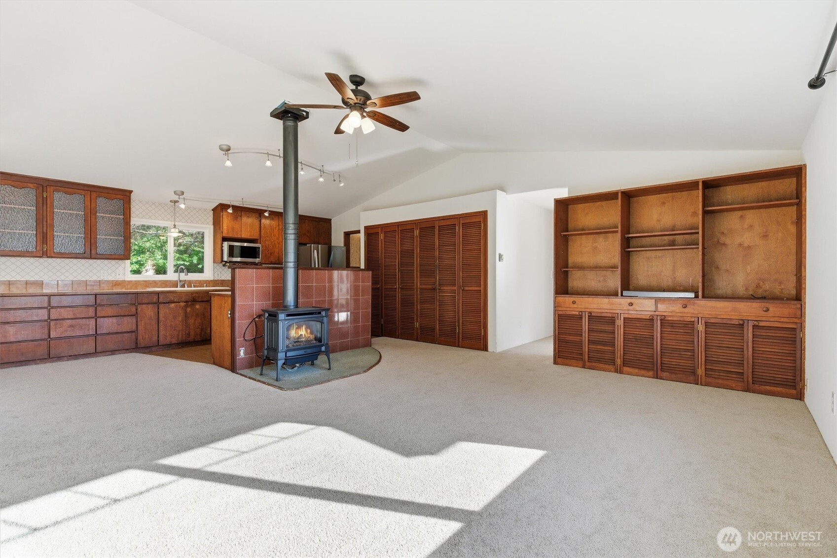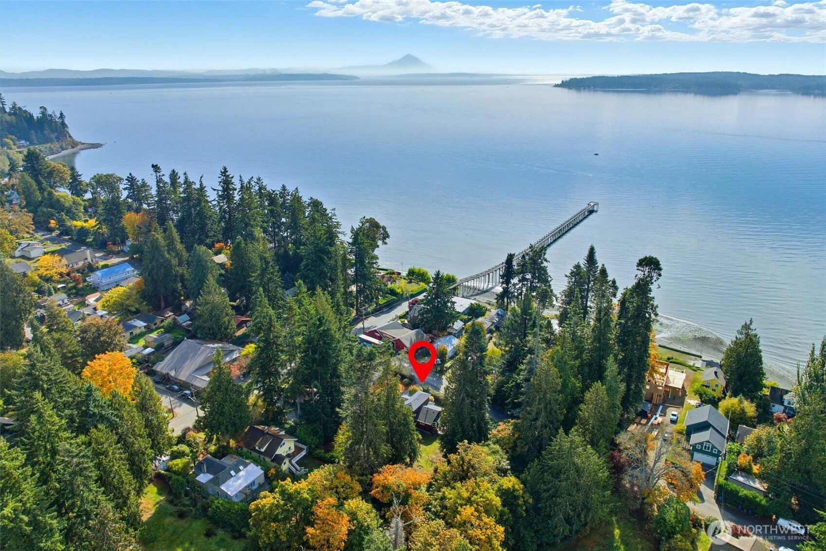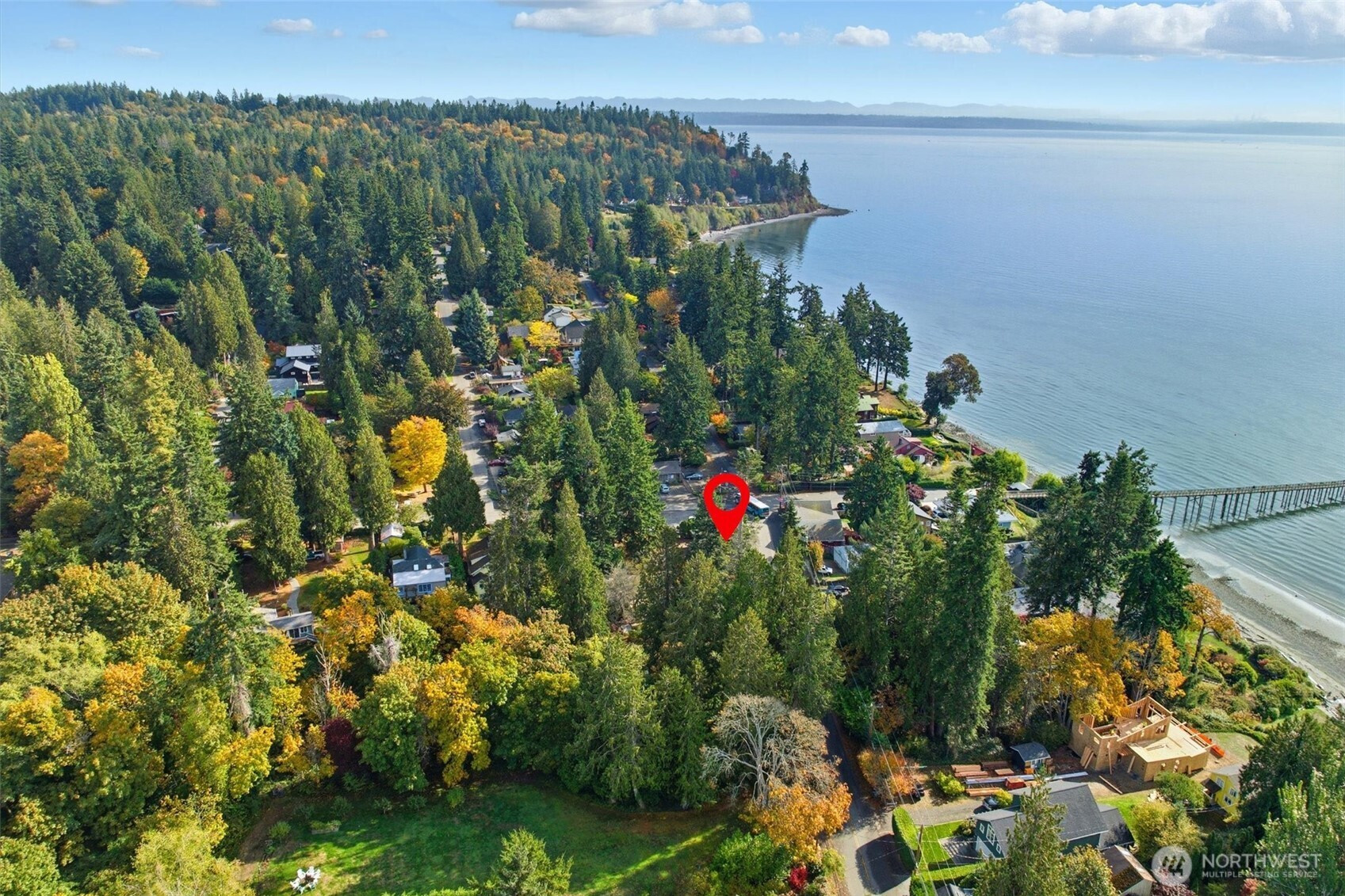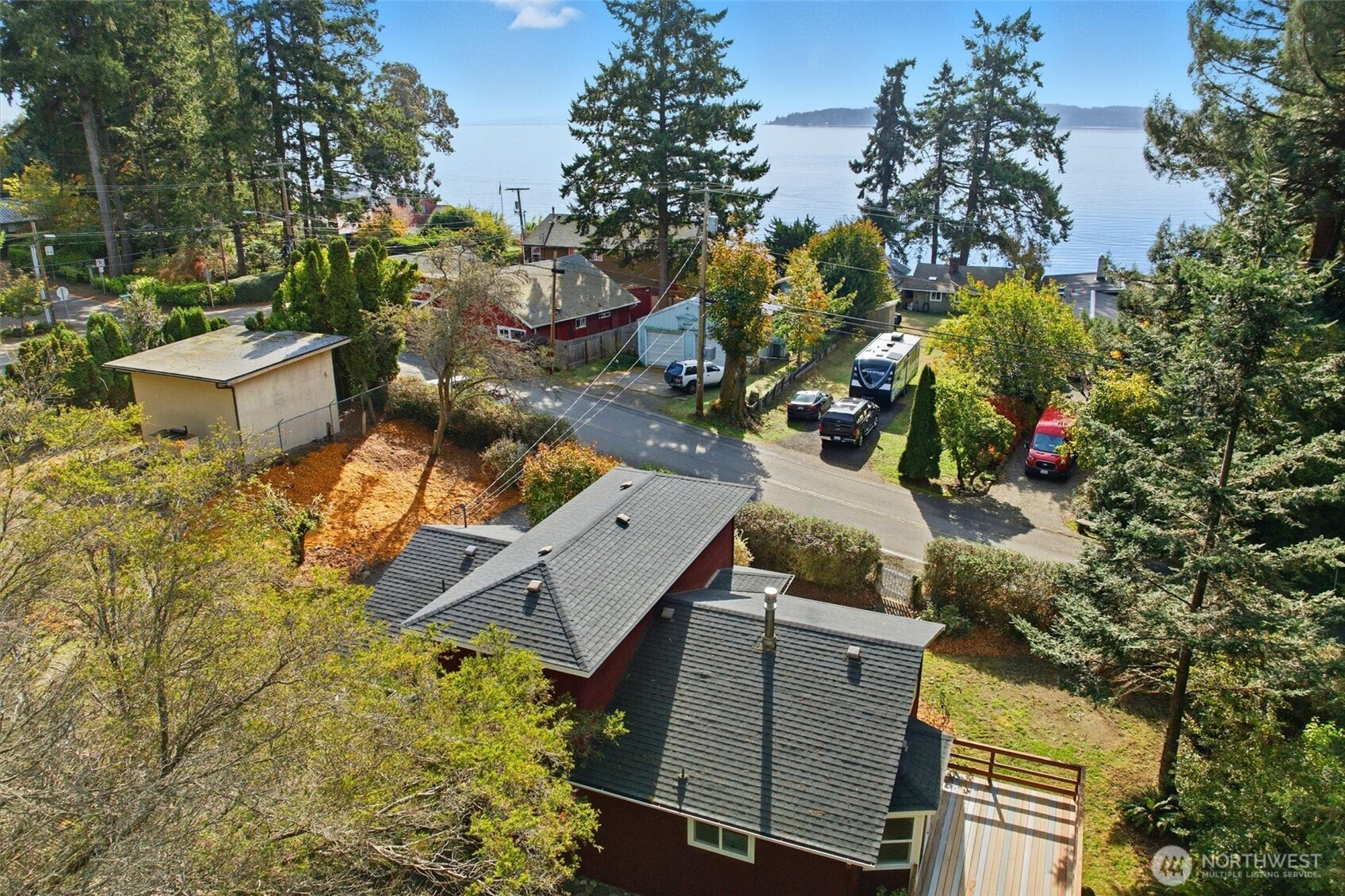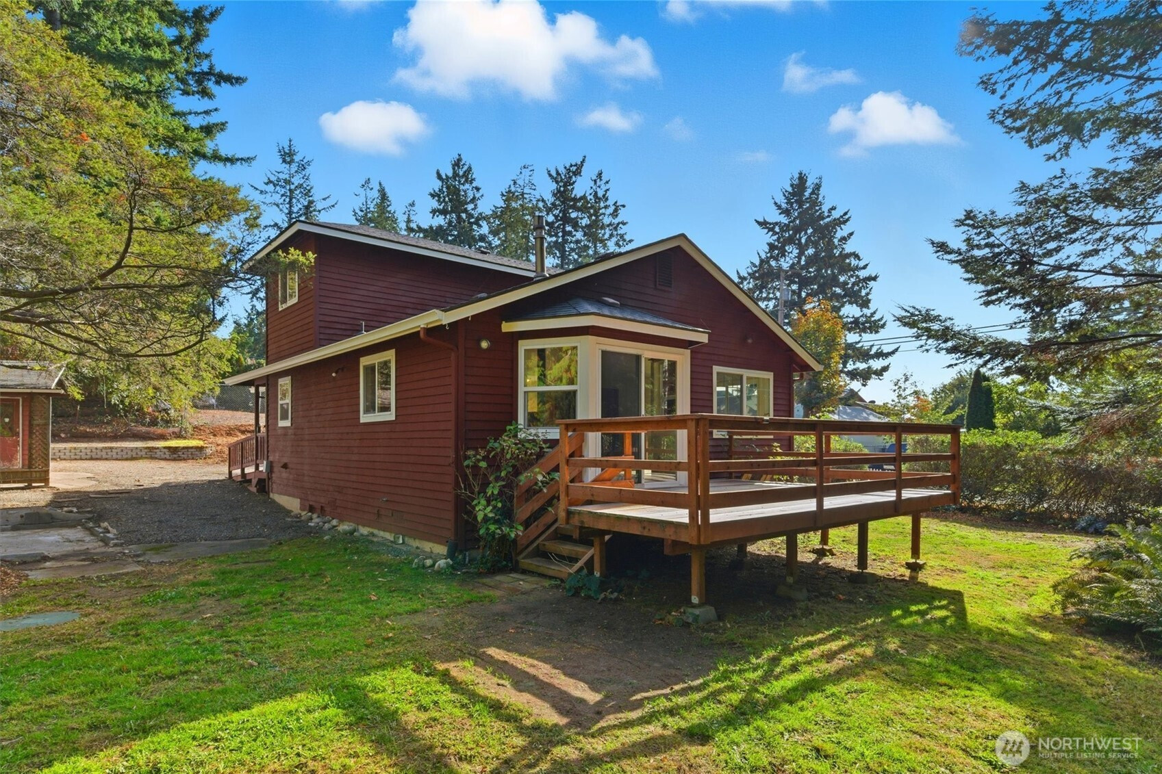 Rare opportunity to own a home in the heart of Indianola! Just steps from the Indianola Store, the dock and private beach. Featuring 2 bedrooms, 2 baths, 1,518 sq. ft. on .45 acres with partial water views. New carpet, fresh paint, and a newer roof. Open design connects the kitchen, dining area, and living room with a Lopi propane stove. A sunroom off the main entry welcomes natural light. Laundry/mudroom. Upstairs bonus room or oversized closet off of upstairs bedroom. Additional features include a two-car garage, carport, storage room behind the garage, and a tool shed, giving you plenty of space for projects and toys. Large private yard with loads of parking, fruit trees, and a stream running across the westside of property.