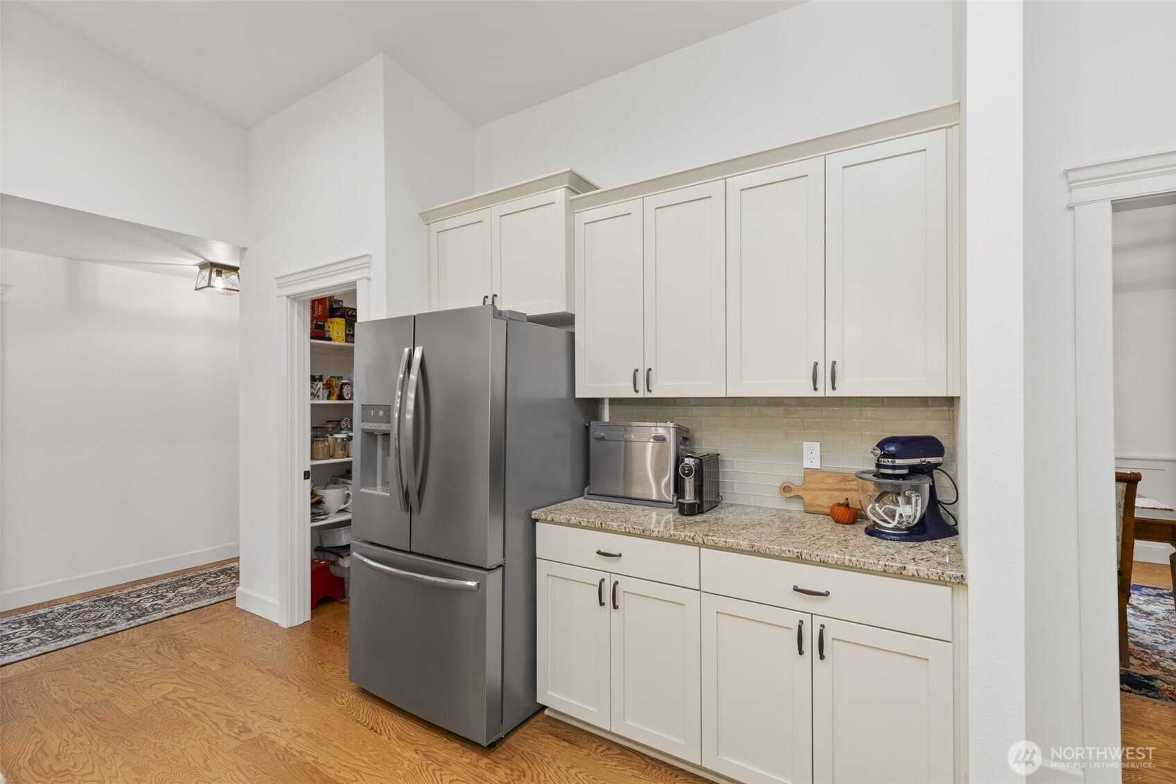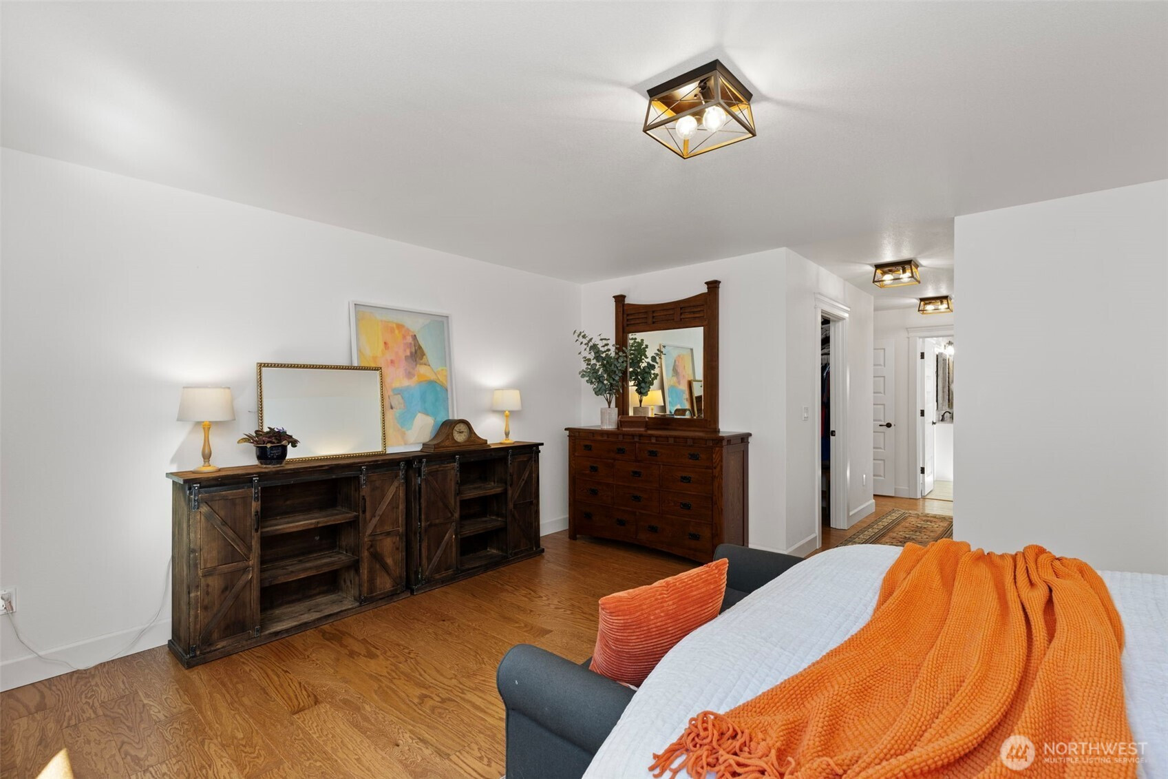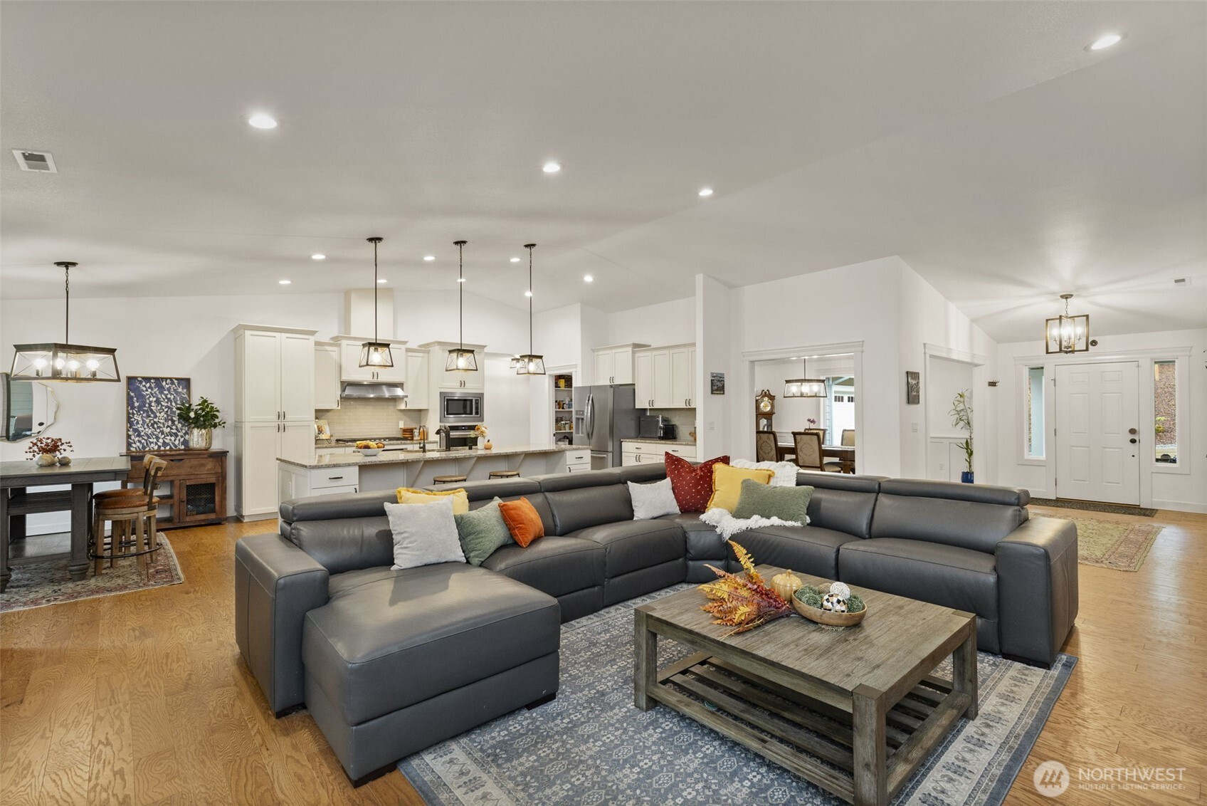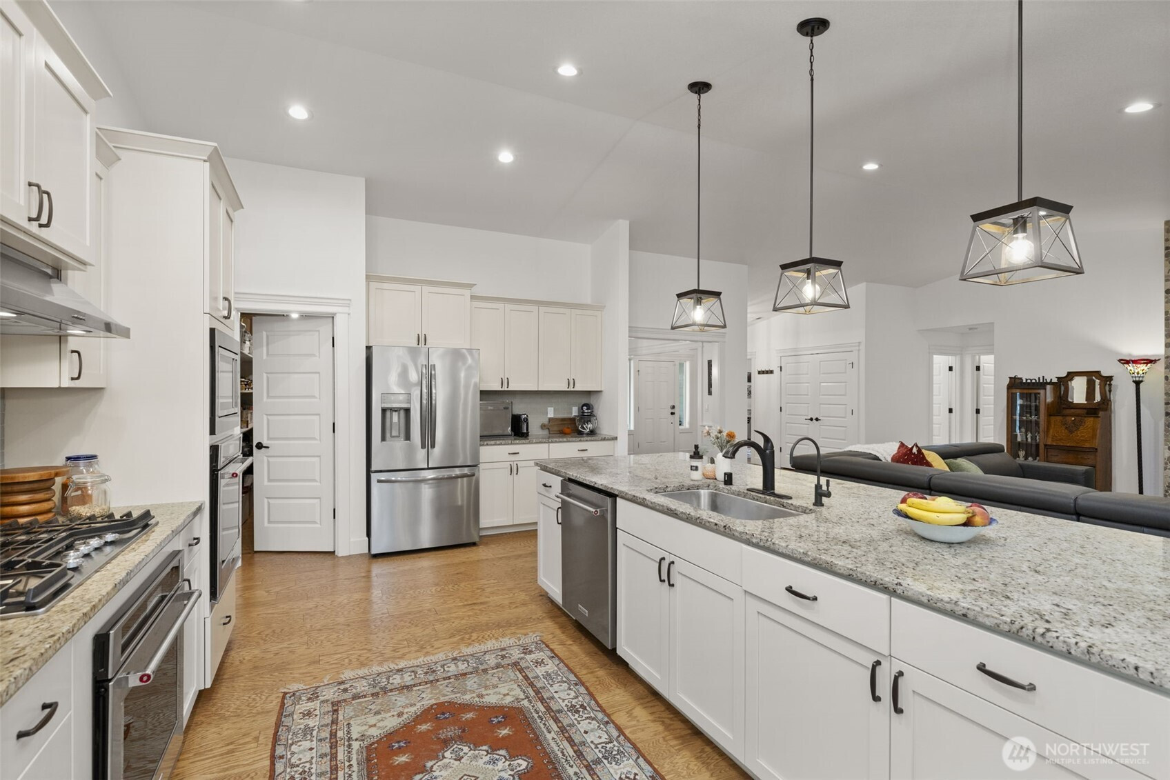 Built in 2021, this rare modern home offers peaceful country living on 5 private acres, while remaining close to everyday conveniences. The interior is completely single level with no steps inside - just two steps at entry - featuring wide halls, an open floor plan, and warm honey-oak flooring throughout. The expansive living area is anchored by a striking rock-faced gas fireplace, creating a welcoming and cozy atmosphere. The modern kitchen is finished in neutral tones and designed for both daily living and entertaining. A spacious primary suite provides a quiet retreat. Despite the tranquil setting, the home is fully equipped for modern life and remote work with gigabit fiber internet, Starlink backup, a whole-house automatic standby generator, and a premium water filtration system. Additional features include a two-car garage, extra parking, and space for future RV parking, plus 1,800+ SF of full height storage space complete this home. Enjoy fruit trees, berries, and heritage redwoods, all just minutes from the Kingston ferry, Safeway, beaches, trails, and easy access to Edmonds and Seattle.