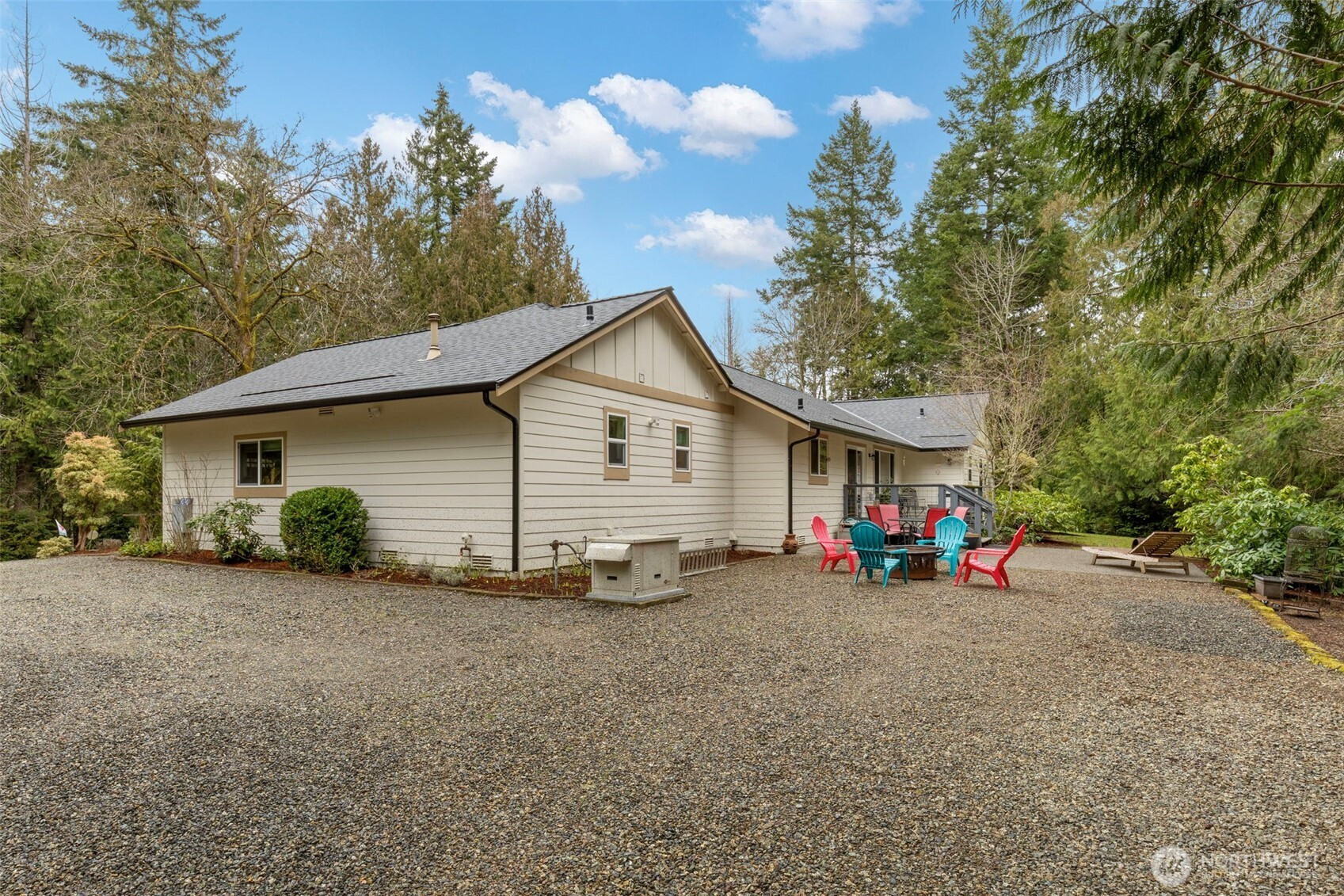 Your own private retreat awaits in Seabeck's desirable Miami Beach. One level living w/ all the bells and whistles! Escape on your own peaceful 3.6 acre lot dappled w/ the ideal blend of sunny lawn and shade under a canopy of evergreens. New roof, cement siding and quality construction ensure worry free living. Inside, you'll find a open concept design that lives large and offers versatility to suit your needs. Living room, family room, formal dining room, plus 3 beds and an office. Gleaming hickory flooring is complemented w/ tile and plush carpeting. Wood wrapped windows, oversized rooms, and oodles of storage throughout. Whip up delicious memories in the kitchen, featuring solid granite counters, tile backsplash, stainless appliances, and walk in pantry. Primary suite is it's own retreat, w/ walk in closet, and private bath w/ double vanity, walk in shower, and toasty heated floors. Entertain a crowd or find solace on the large Trex deck, while you watch deer nibble in the woods. Oversized circular drive offers plenty of parking and room for all your toys, including RV/boat parking. For added peace of mind, the home is equipped w/ a security system and an auto-start generator. Walking distance to the iconic Scenic Beach Park, where you'll witness bald eagles soaring over the mountaintops. Minutes from the local boat launch, popular trails, lakes, and well known local shops. Under 20 minutes to Silverdale, and only 15 minutes from Highway 3, yet a world away from it all!