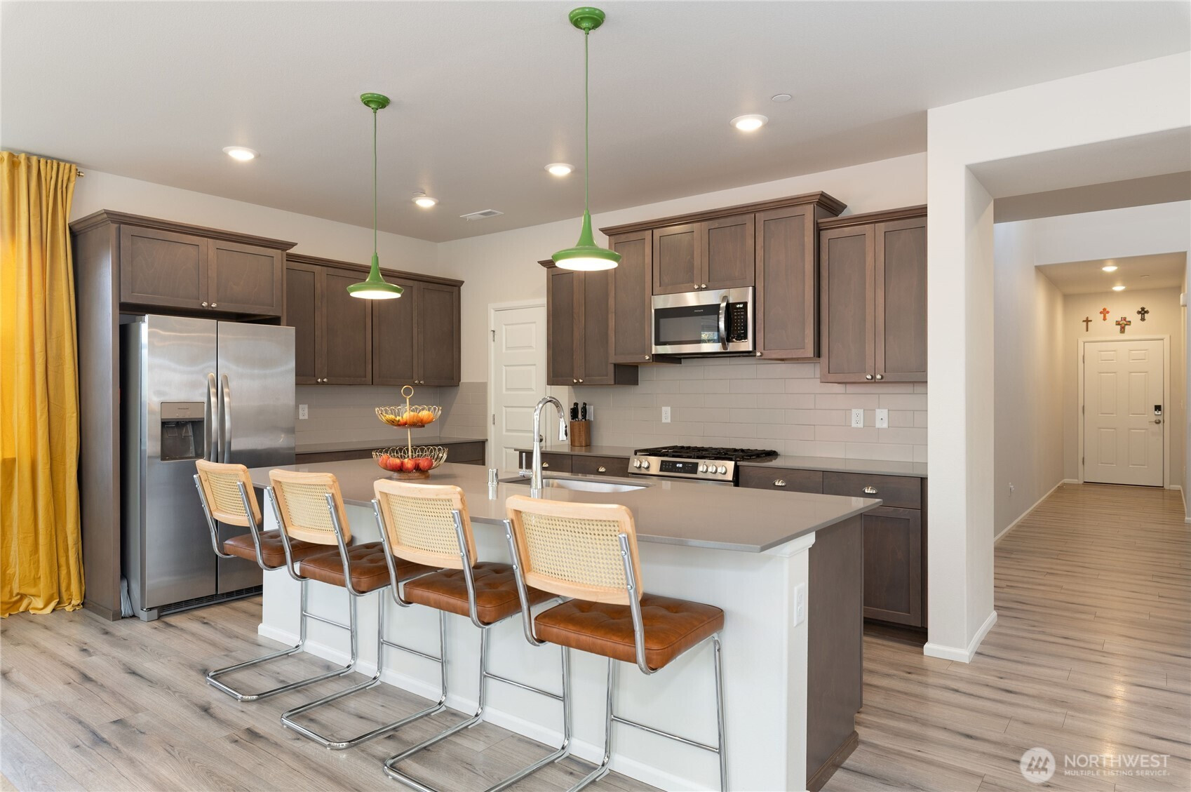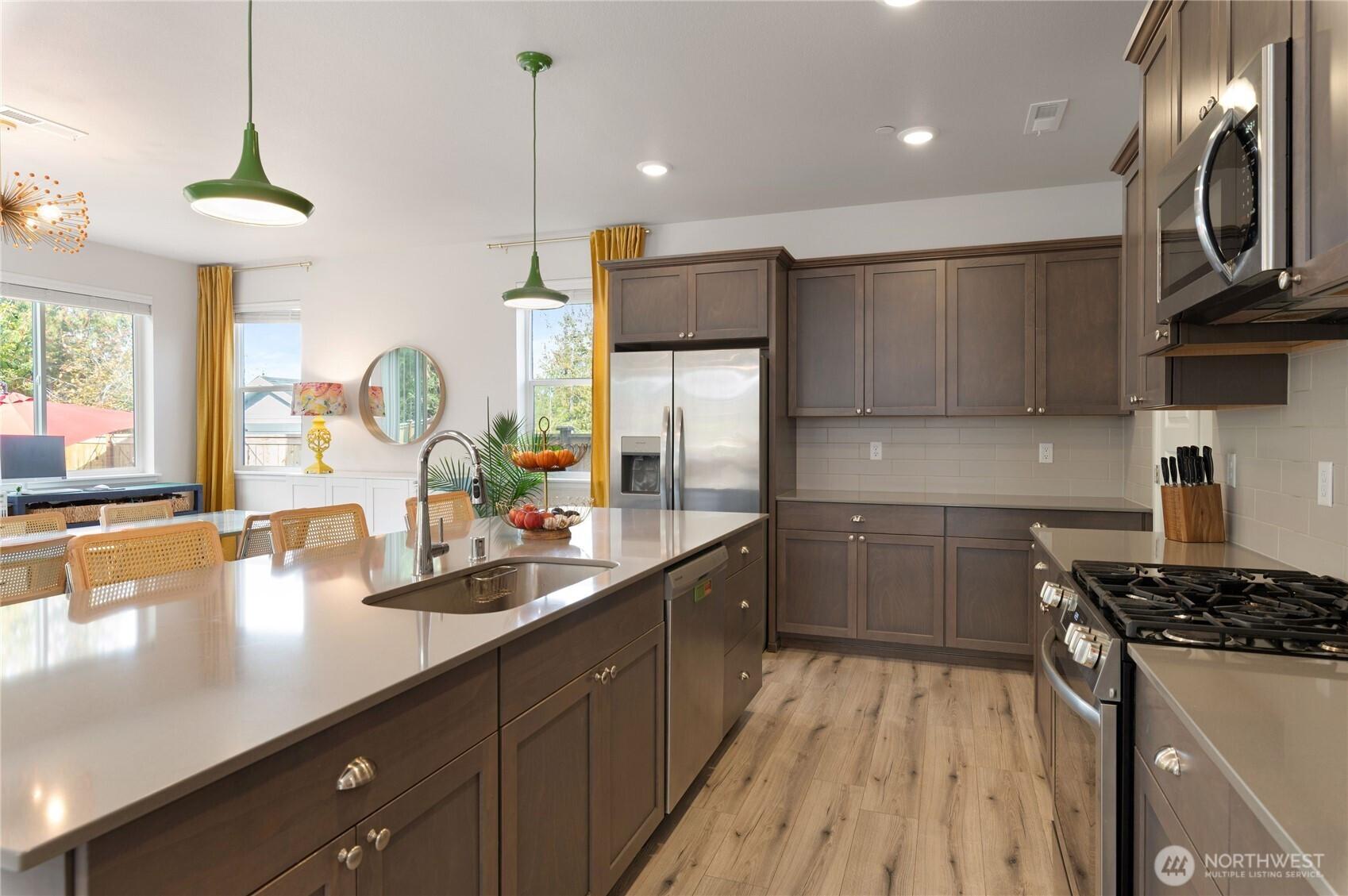 Looking for multi-generational living? The Lennar Bainbridge plan at Soundview Estates West is a thoughtfully designed 3,248 sq ft home. The main level includes a private 1-bedroom apartment-style guest suite, a spacious light-filled great room open to the kitchen and dining area. Upstairs features a family room, two bedrooms, full bath, laundry, flex/office space, and a primary suite with a walk-in closet and 5-pc bath. The guest suite offers a separate entrance (or entry from the main home), living area, kitchenette, bedroom, 3/4 bath, & laundry, providing flexible use. Additional highlights include a 3-car garage, fenced backyard, and smart-home features. Convenient location near schools, PSNS, shopping, and the Bremerton/Seattle ferry.