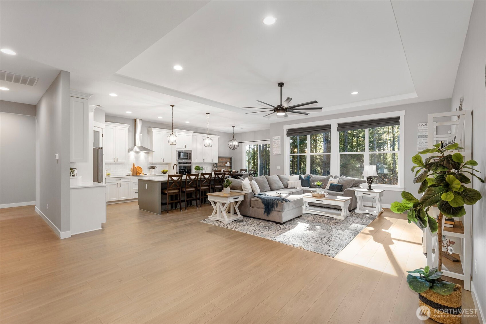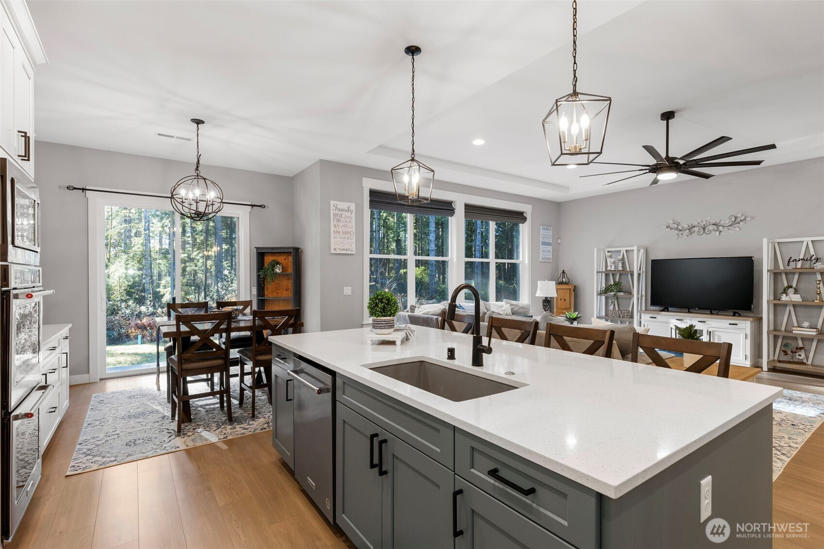 Experience modern comfort in a serene PNW setting. Built in 2022, this stunning 4bd, (includes two primary ensuites) home blends contemporary design with the natural beauty of over 2.5 acres in peaceful Port Orchard. Spacious interior featuring vaulted ceilings, abundant natural light, and quality finishes create a warm, inviting atmosphere. A kitchen made for entertaining includes a double oven, large island and stainless steele appliances. Step outside to enjoy the tranquility of towering evergreens and the soothing sounds of nature. Additional perk of RV Parking with hookups. Your own private retreat just minutes from amenities and HWY 16. Perfect for those seeking both modern living and the timeless charm of the Pacific Northwest.