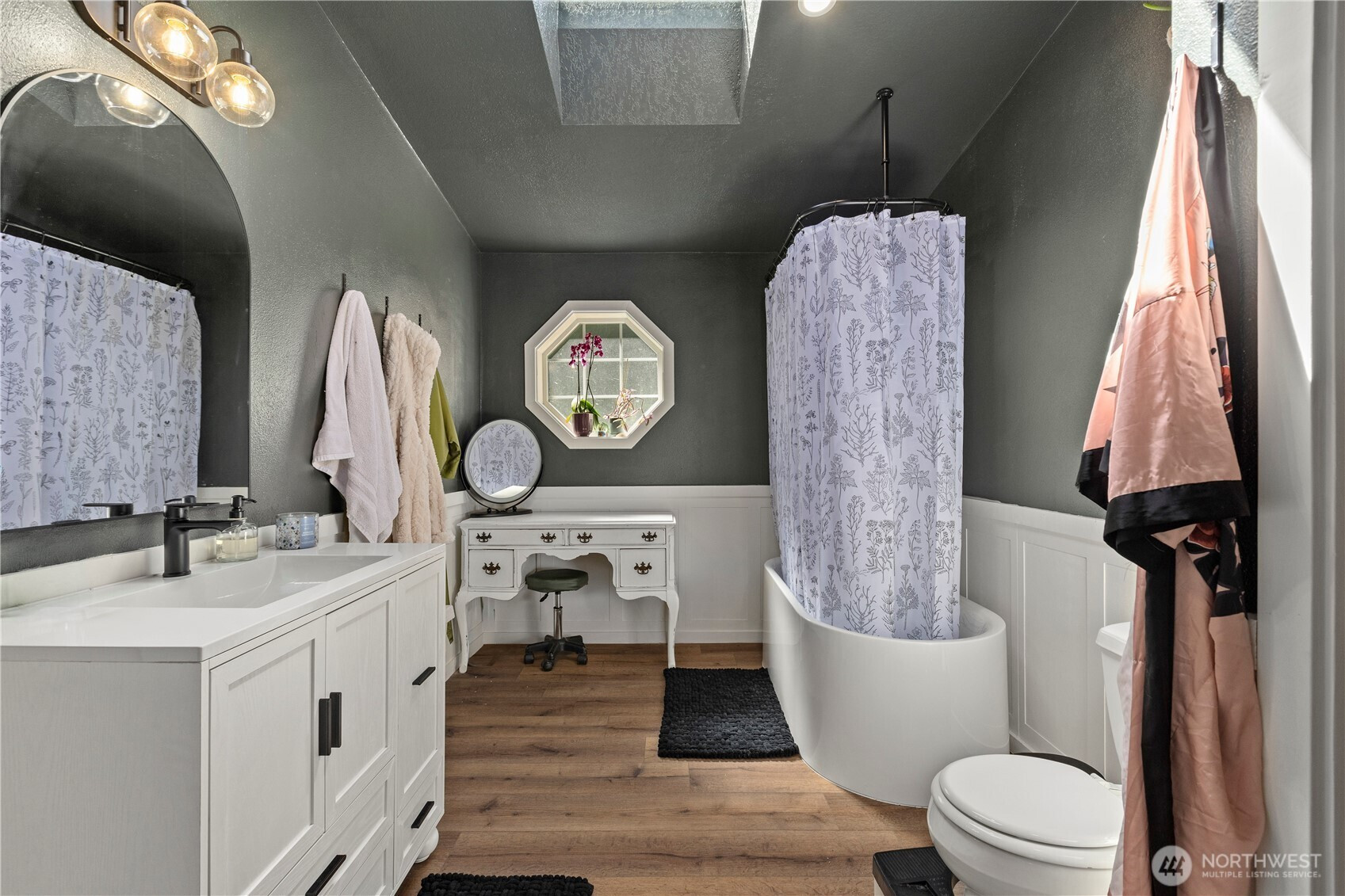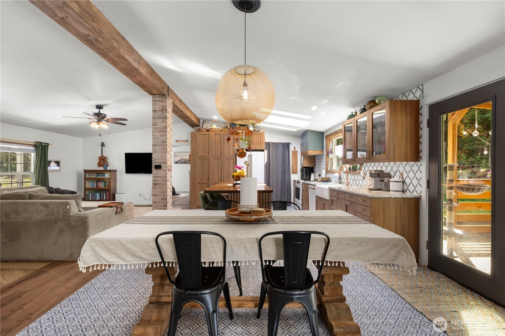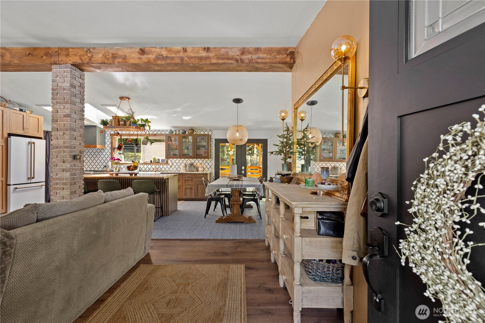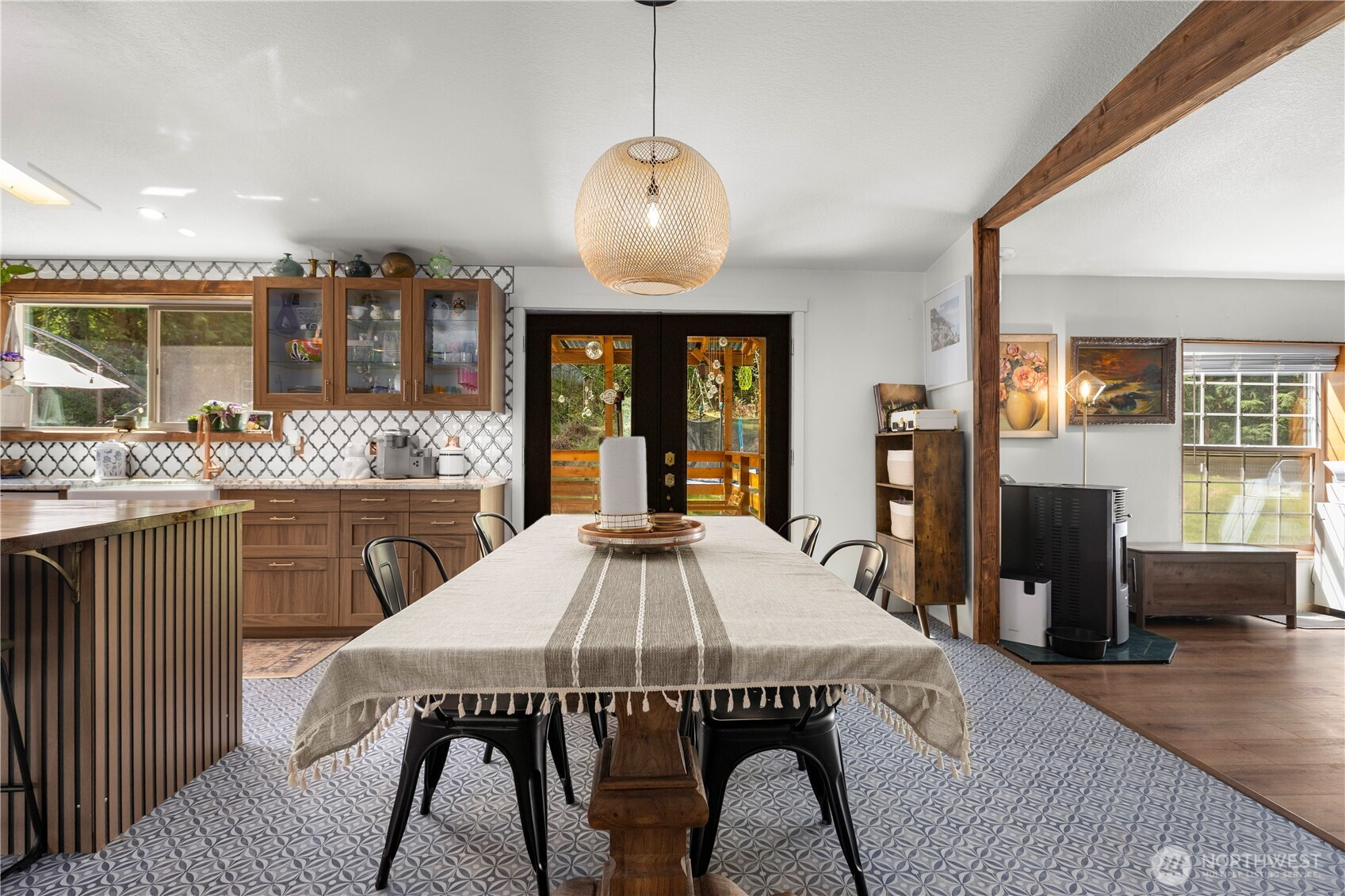 Welcome to this beautifully updated 3 bed, 2 bath rambler, offering the perfect blend of comfort and style on a sprawling 1.25 acre lot. This home has been thoughtfully renovated with modern touches throughout, including a brand-new kitchen with all new appliances, new LVP flooring, and a stunning, fully remodeled bathroom with a standalone tub – perfect for unwinding after a long day. Enjoy the bright and airy living spaces, including a number of new windows allowing for plenty of natural light. The spacious primary suite features its own private bathroom and walk-in closet. The inviting den provides extra flexibility for home office space, an additional bedroom or a cozy retreat. Step outside to the expansive lot, perfect for outdoor activities, gardening, or simply enjoying the privacy. The front door opens to a large covered front deck, ideal for relaxing or entertaining. Other highlights include a pellet stove for cozy winter nights and a convenient mudroom area. 2 car detached garage & shed provide even more storage. New furnace in 2025 & new back deck. This home is move-in ready with all appliances staying, offering both comfort and functionality in a peaceful setting. Don’t miss out on this incredible opportunity in Port Orchard!