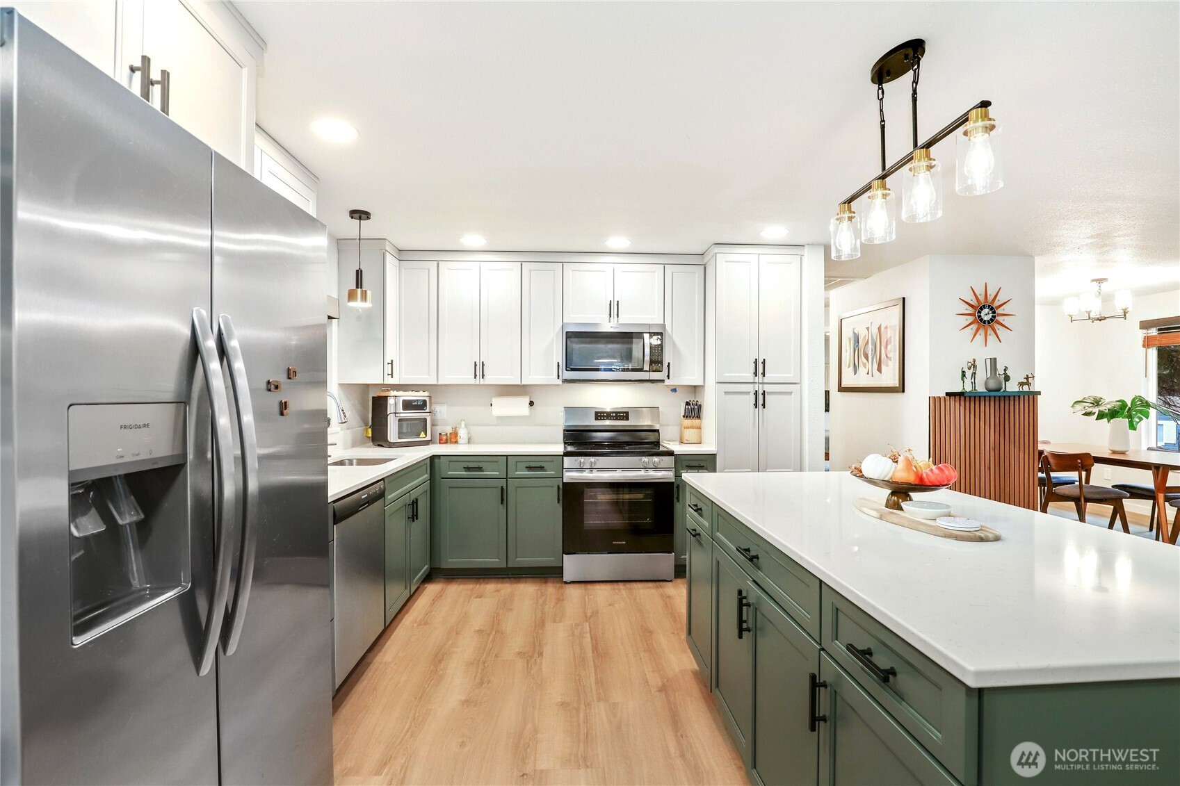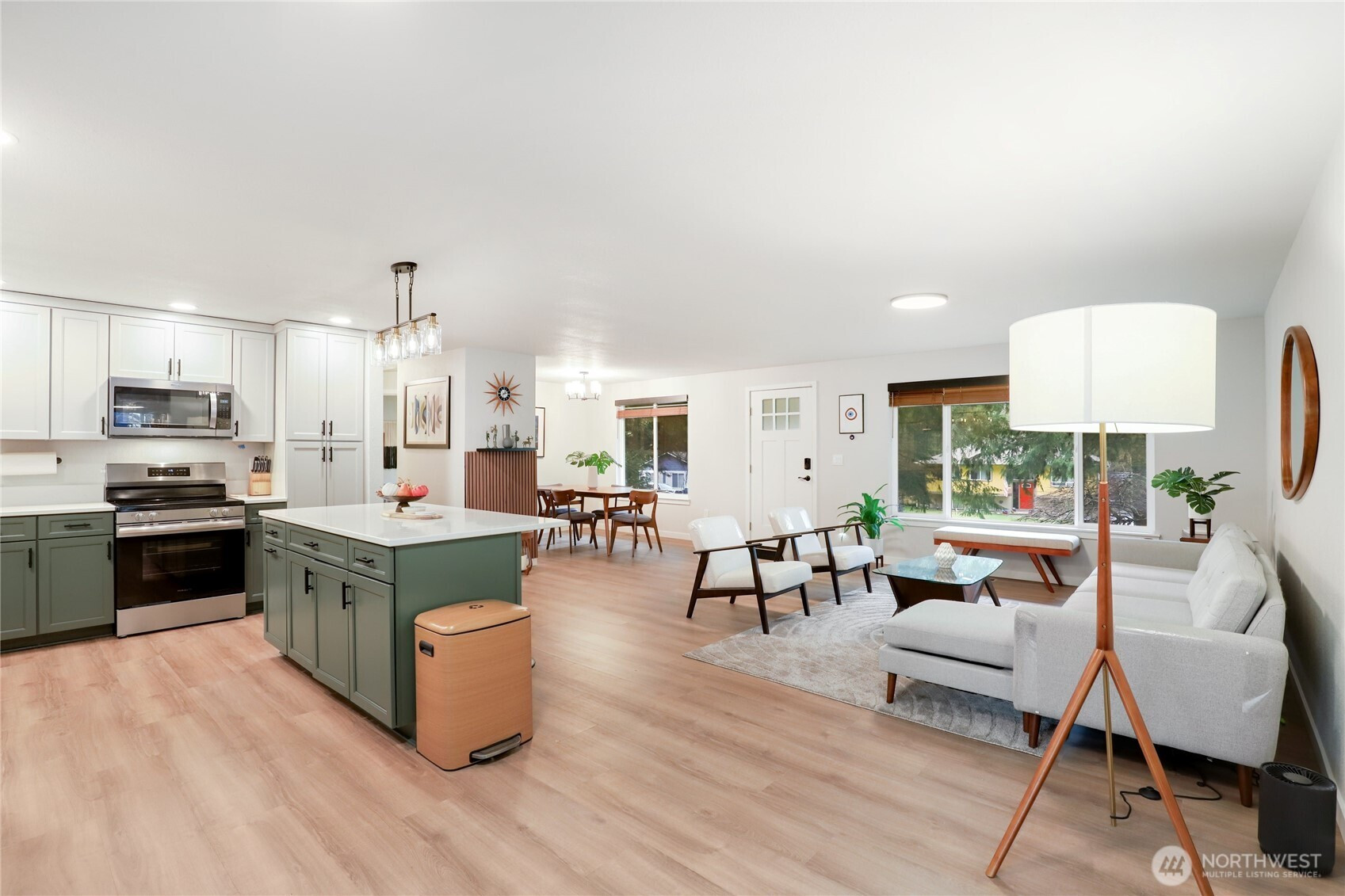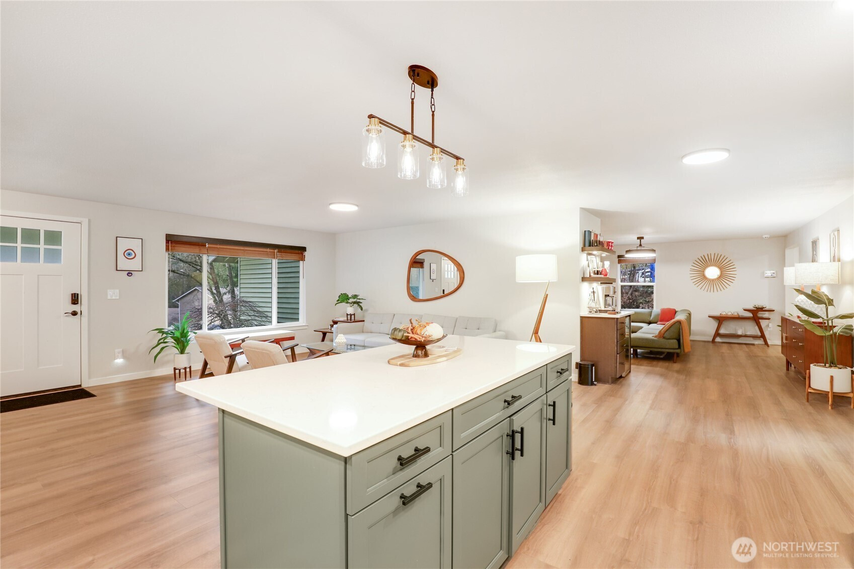 Set on a shy acre in a peaceful neighborhood, this beautifully remodeled rambler combines thoughtful design with modern comfort. Light and bright throughout, the open layout offers an easy flow between living spaces, creating an ideal setting for everyday living and entertaining. The gourmet kitchen is the centerpiece of the home, featuring upgraded appliances, modern fixtures, and a large island that provides abundant prep space, seating, and storage. Nearby, choose between the spacious great room or the cozier adjoining living area—both perfect for relaxing with a book or enjoying quiet moments. The well-designed primary suite offers a comfortable retreat with an updated bath, a dedicated water heater, and generous closet space. Two additional large bedrooms and a refreshed full bath sit on the opposite wing of the home, providing separation and functionality. Step outside to a patio surrounded by natural scenery, ideal for outdoor dining or simply unwinding. With convenient access to nearby shopping and everyday amenities, this inviting property presents a rare opportunity to enjoy space, style, and serenity. Schedule your showing today!
